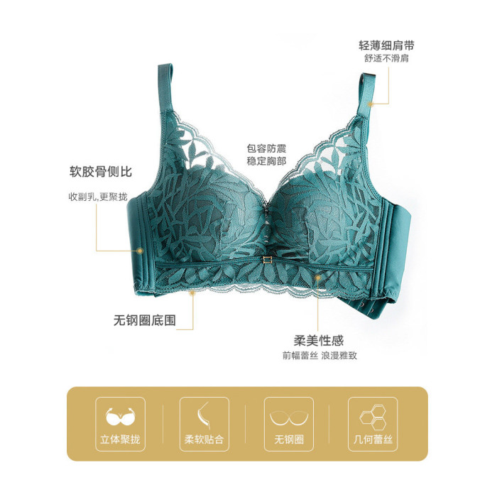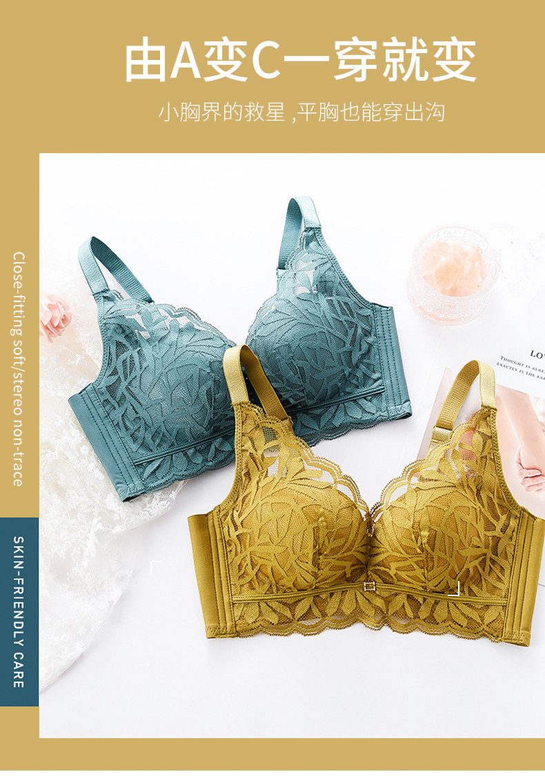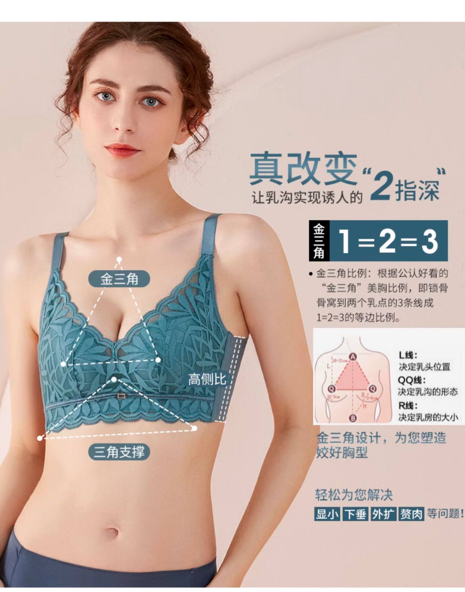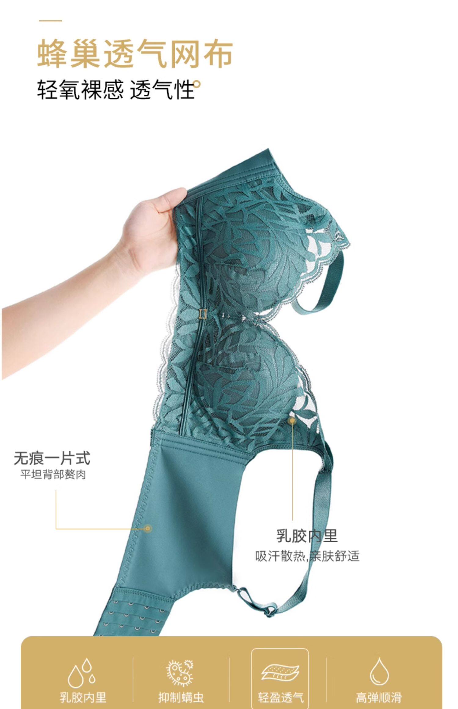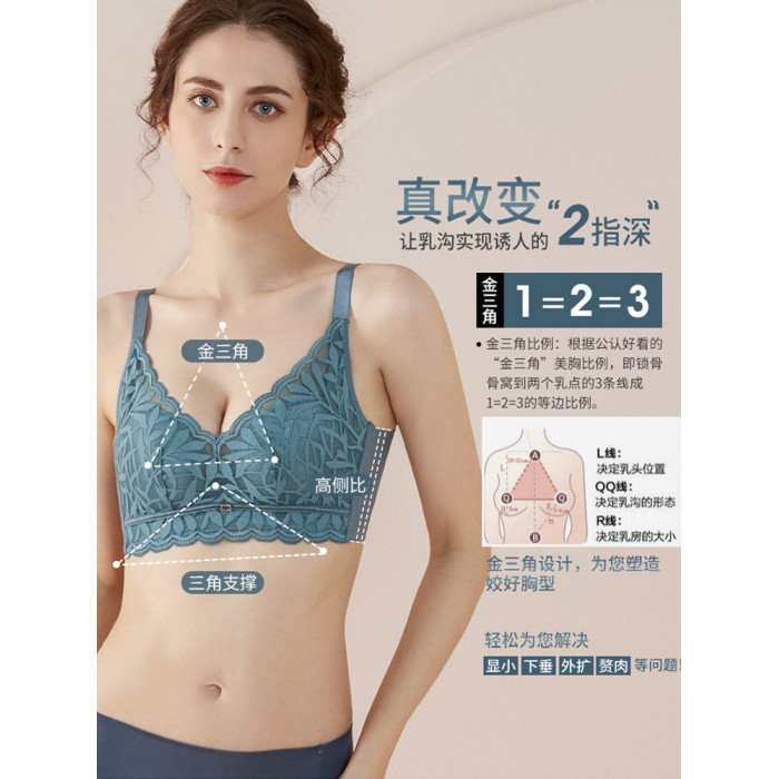 婷美新款小胸聚攏乳膠內衣女調整型收副乳防下垂蕾絲無鋼圈文胸