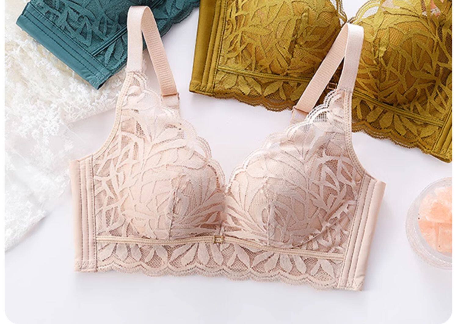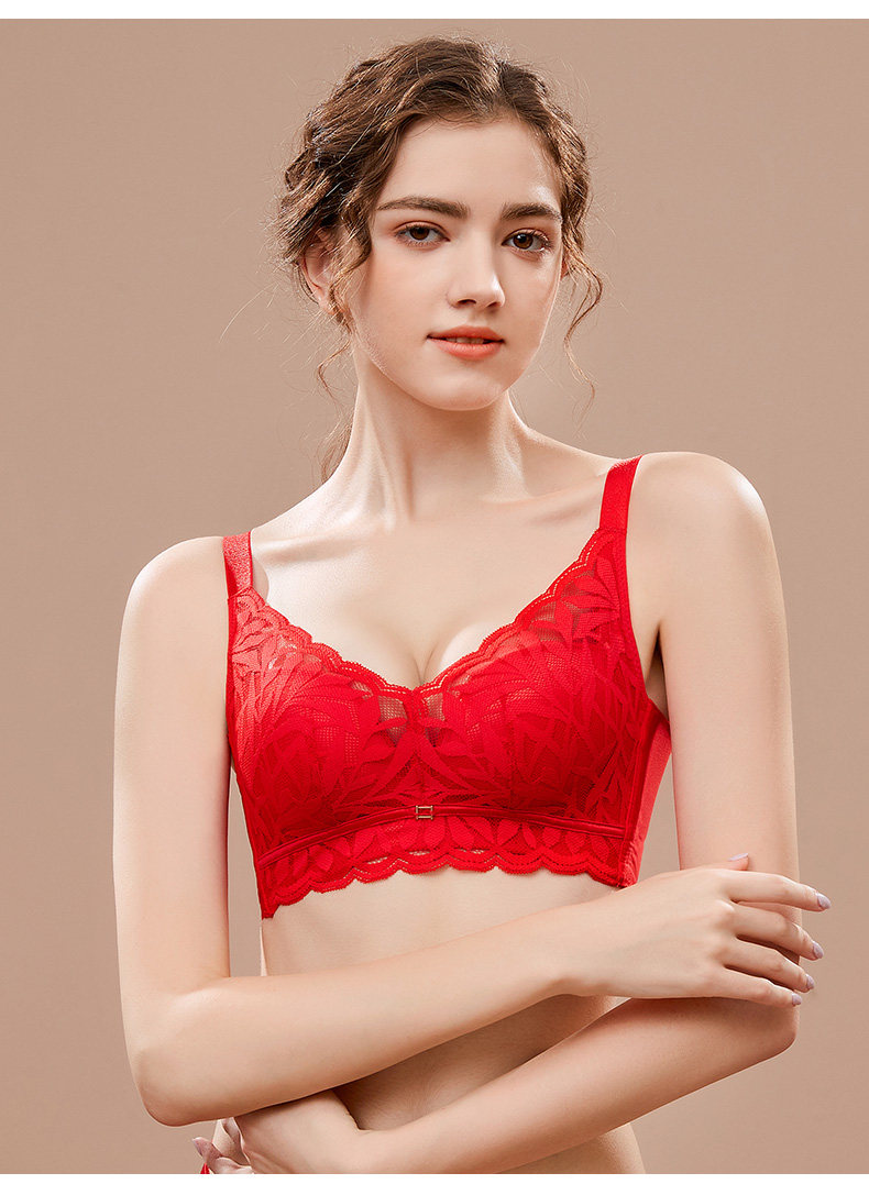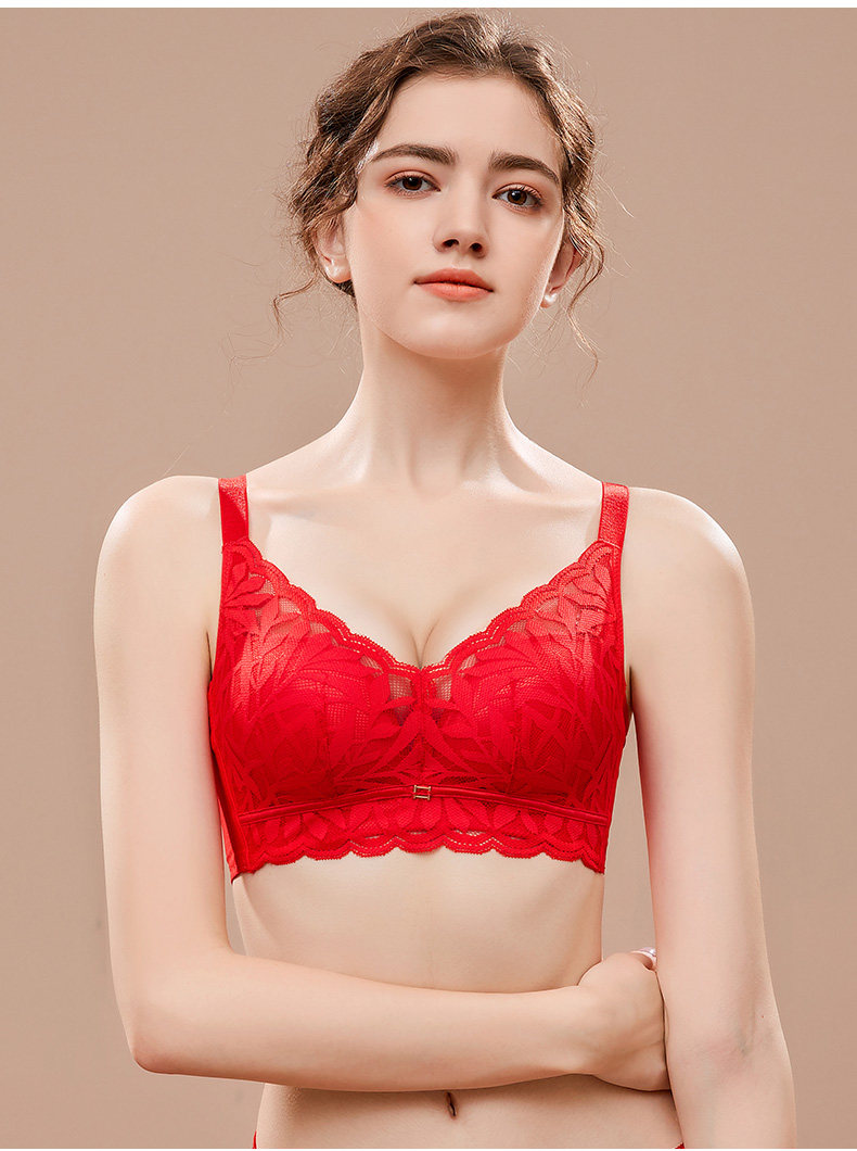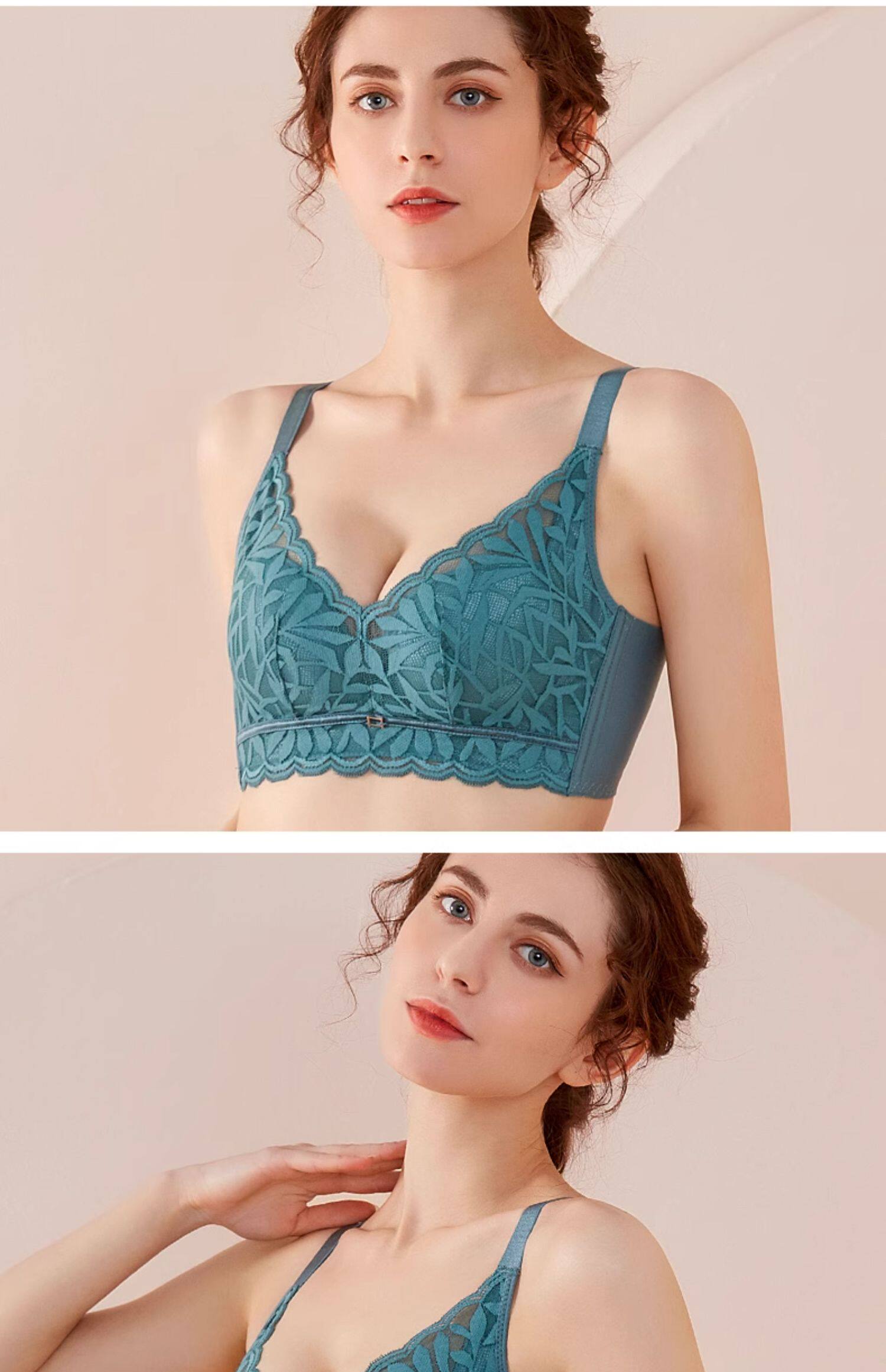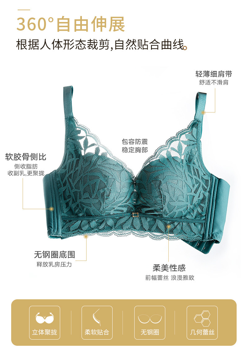 婷美新款小胸聚攏乳膠內衣女調整型收副乳防下垂蕾絲無鋼圈文胸