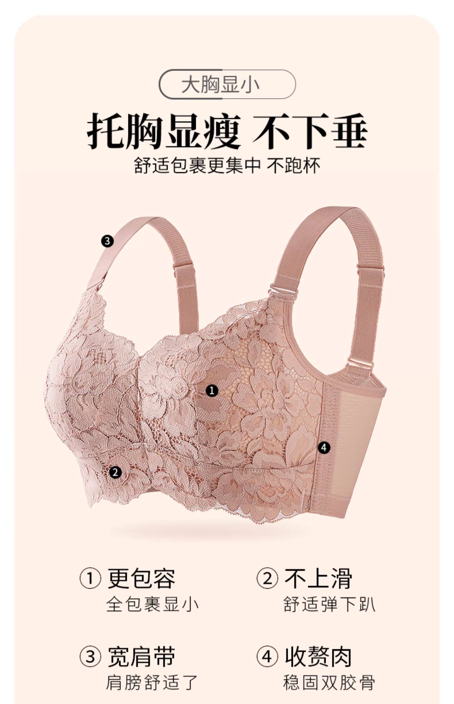 大胸顯小胸內衣女防下垂收副乳無鋼圈薄款全罩杯舒適調整型文胸罩