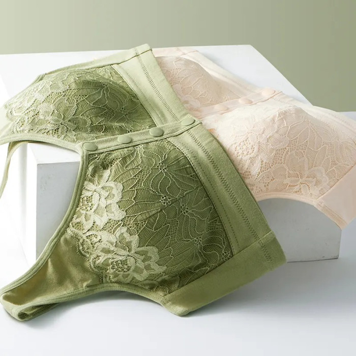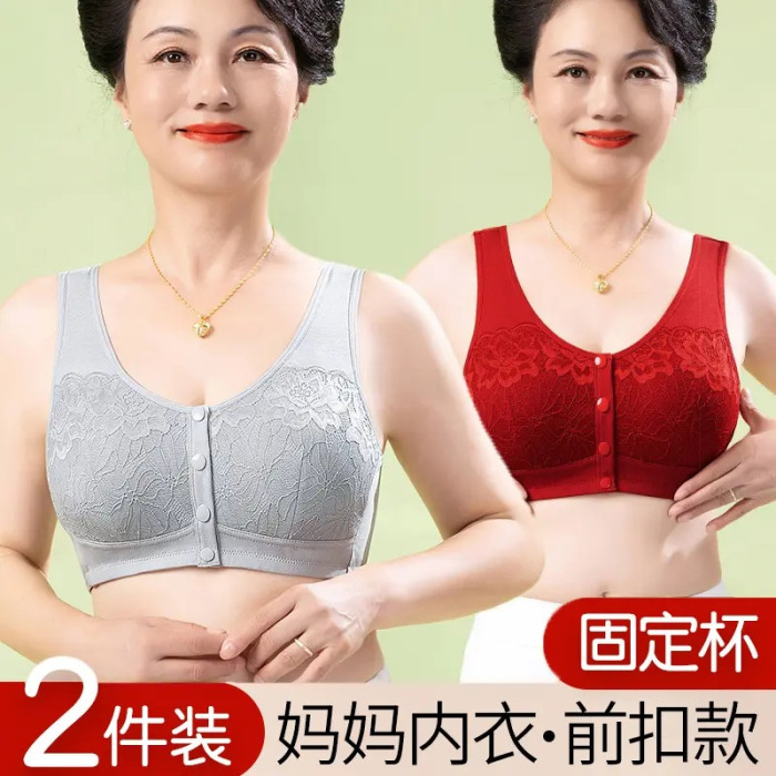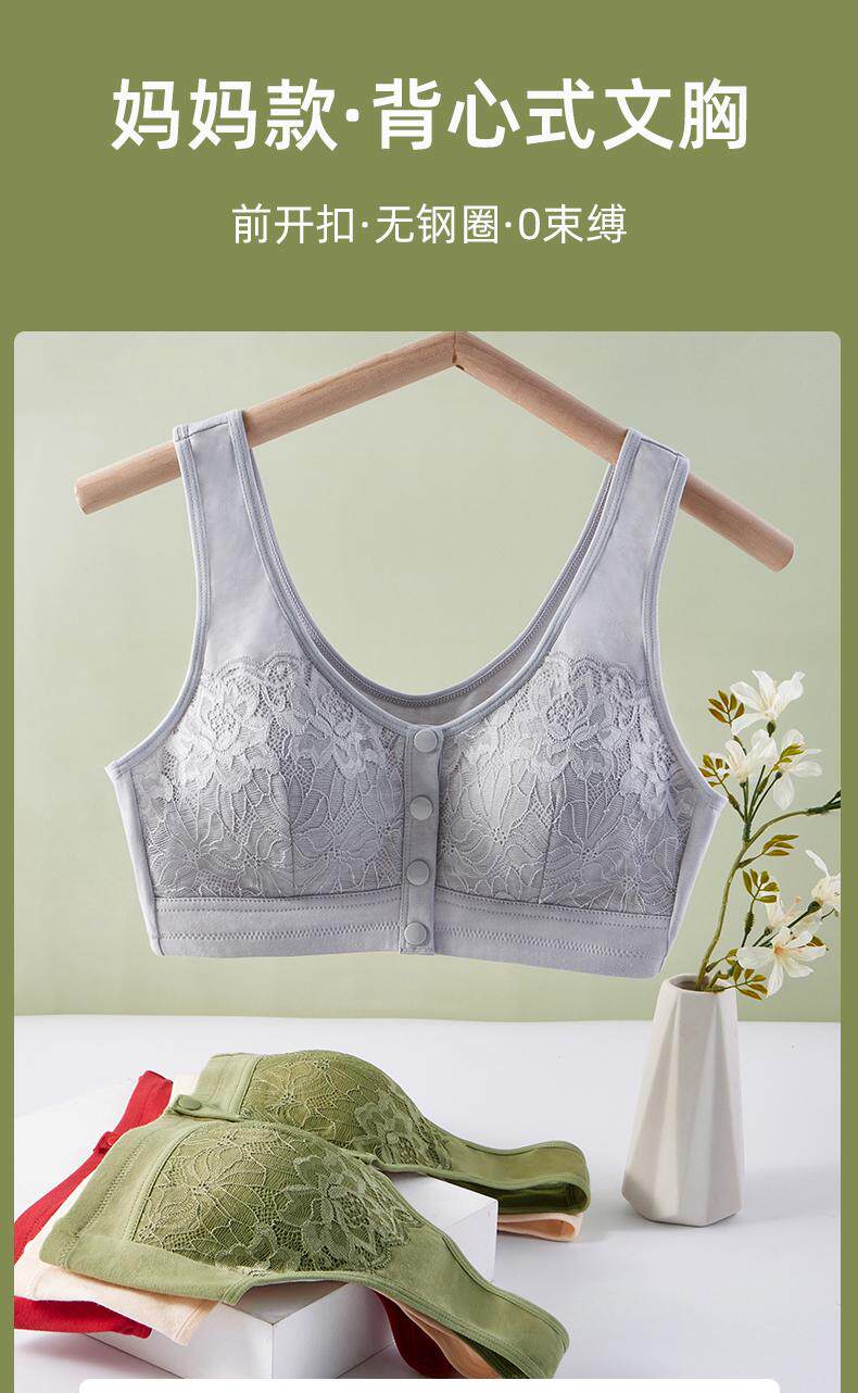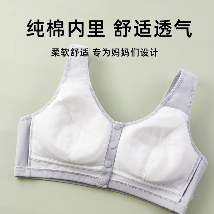 輕薄純棉內衣媽媽美背前釦無鋼圈中老年大碼背心式春秋季棉質文胸