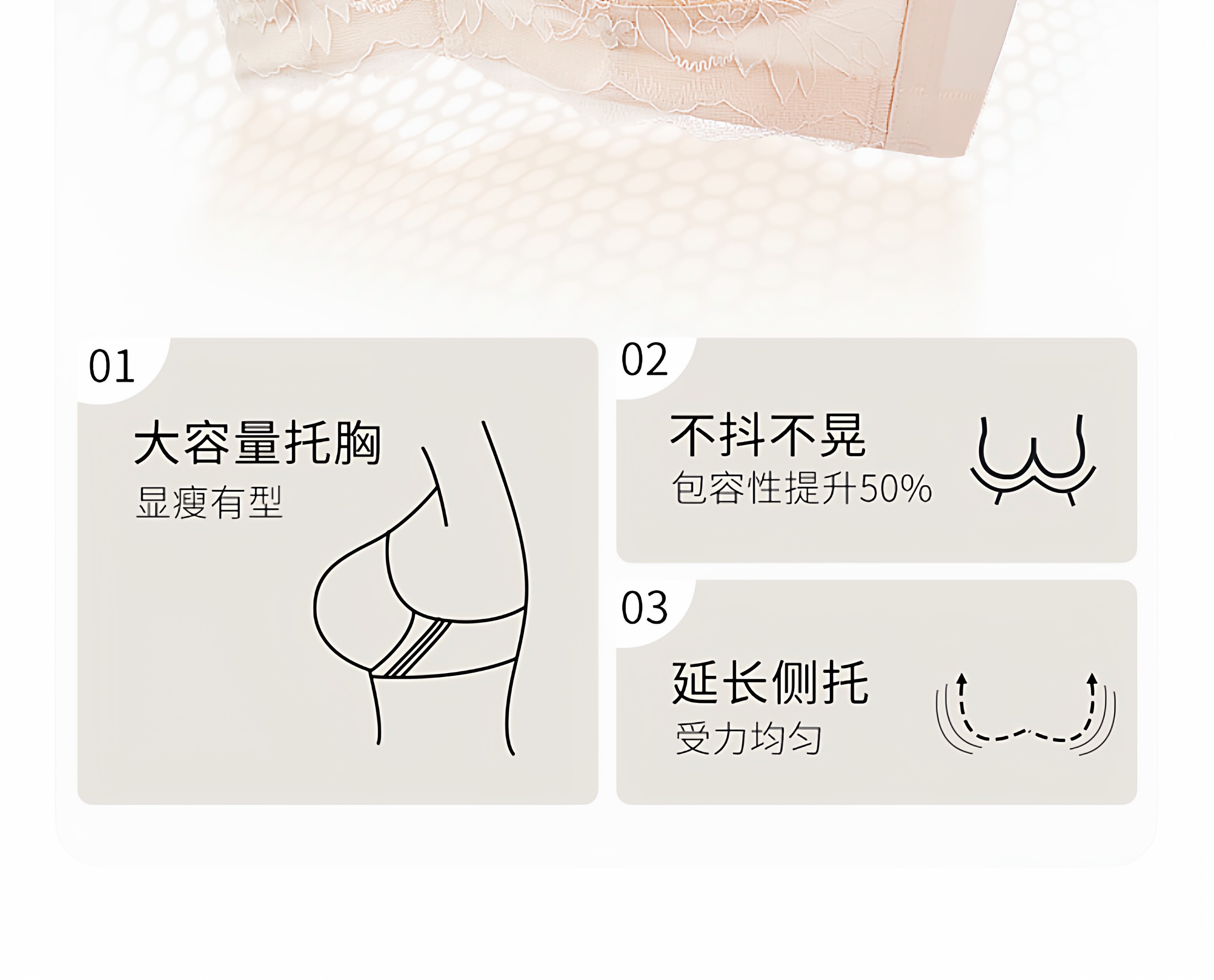 都市麗人大胸顯小內衣女士薄款透氣聚攏提拉收副乳無鋼圈蕾絲文胸