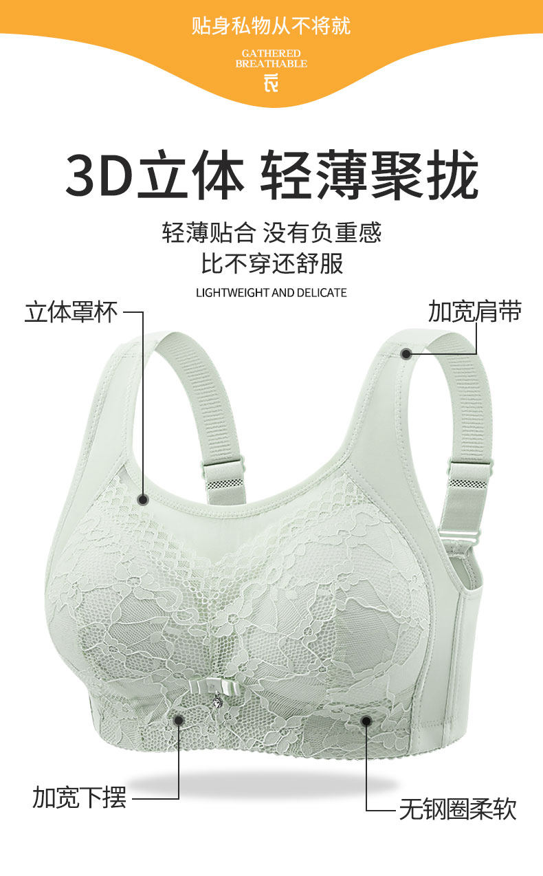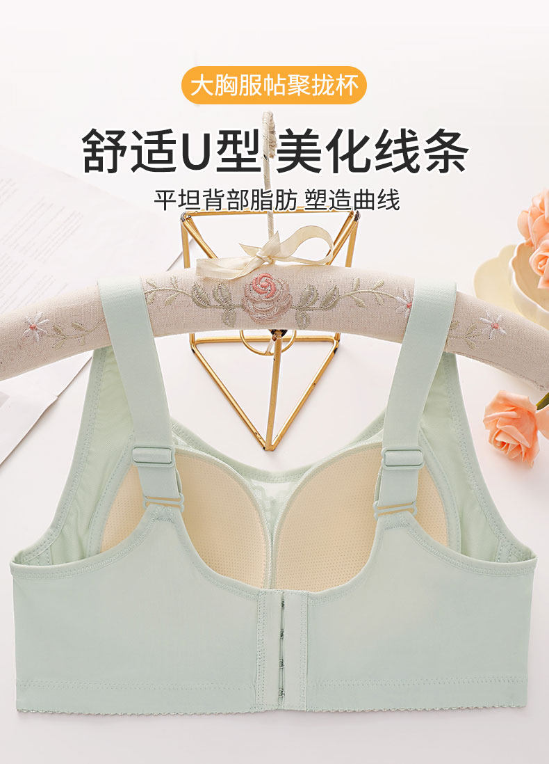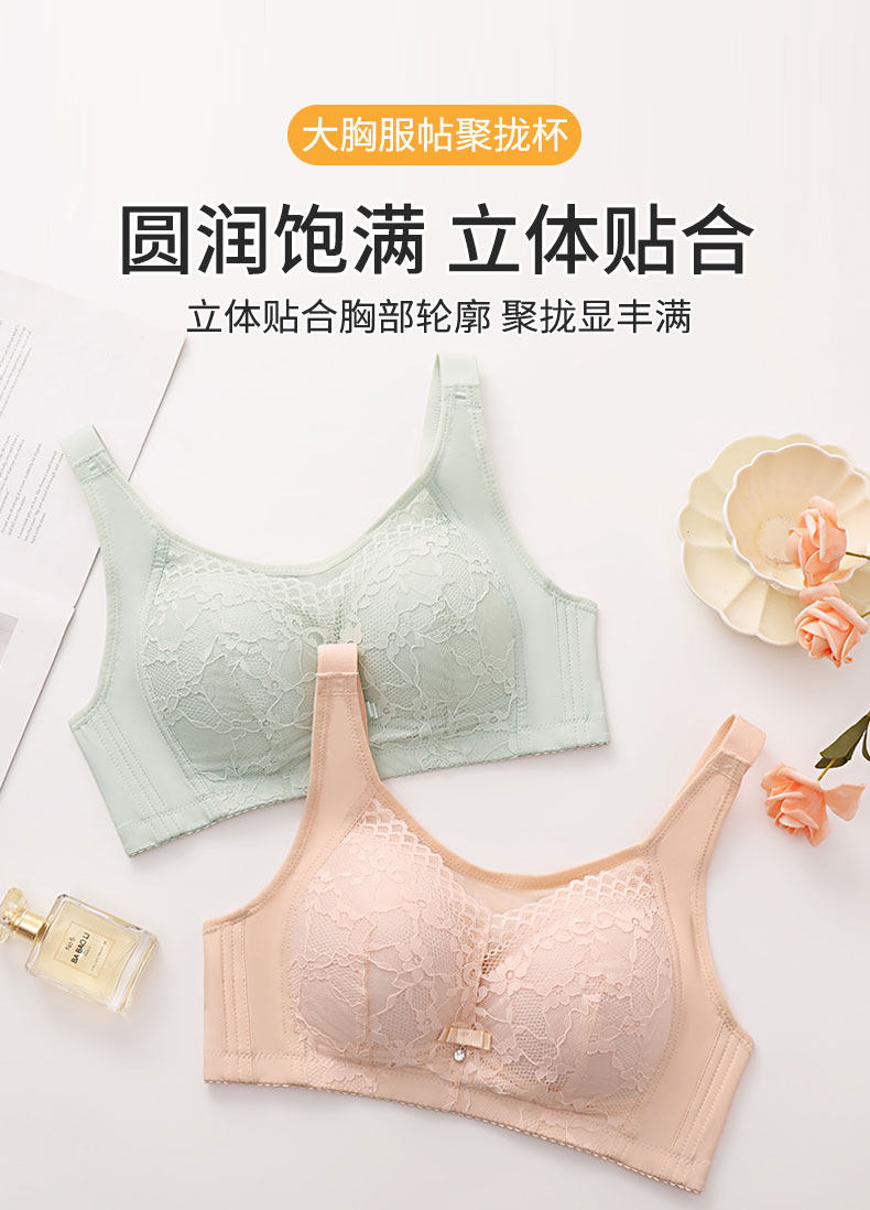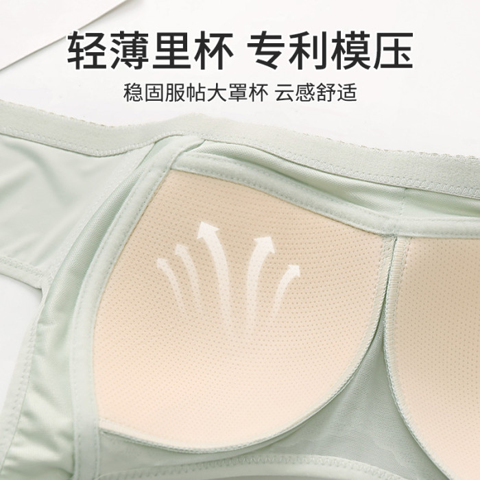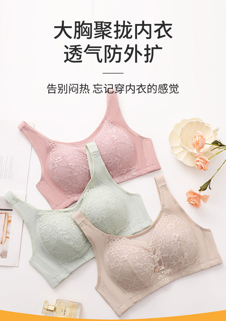 新款女士夏季薄款無鋼圈文胸大胸顯小防走光聚攏防下垂側收內衣女