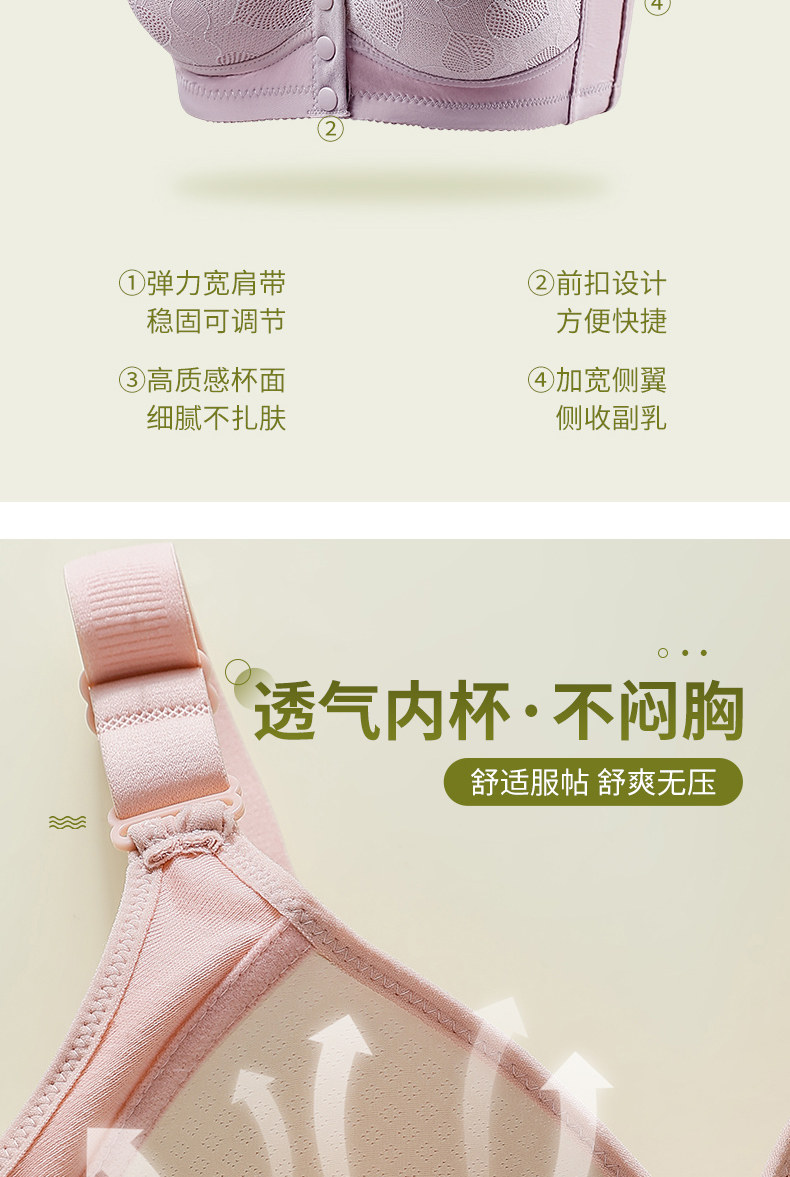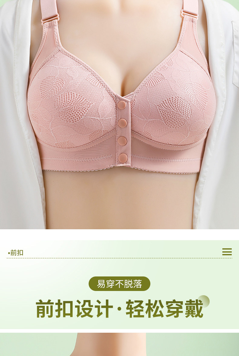 前釦中老年人文胸舒適媽媽聚攏防下垂內衣中年婦女無鋼圈胸罩薄款