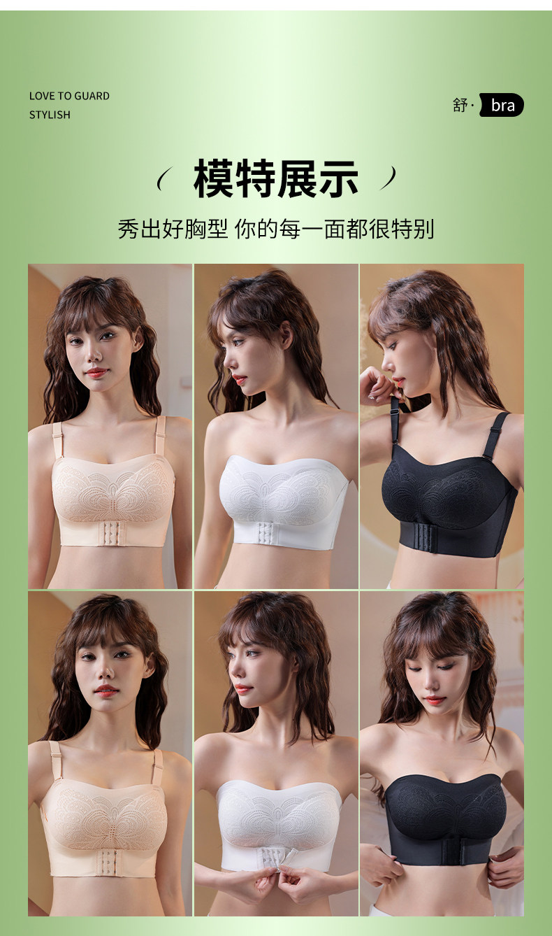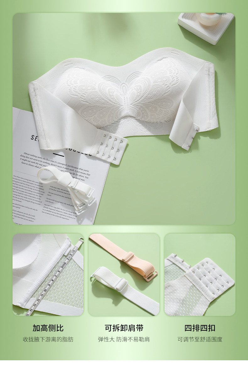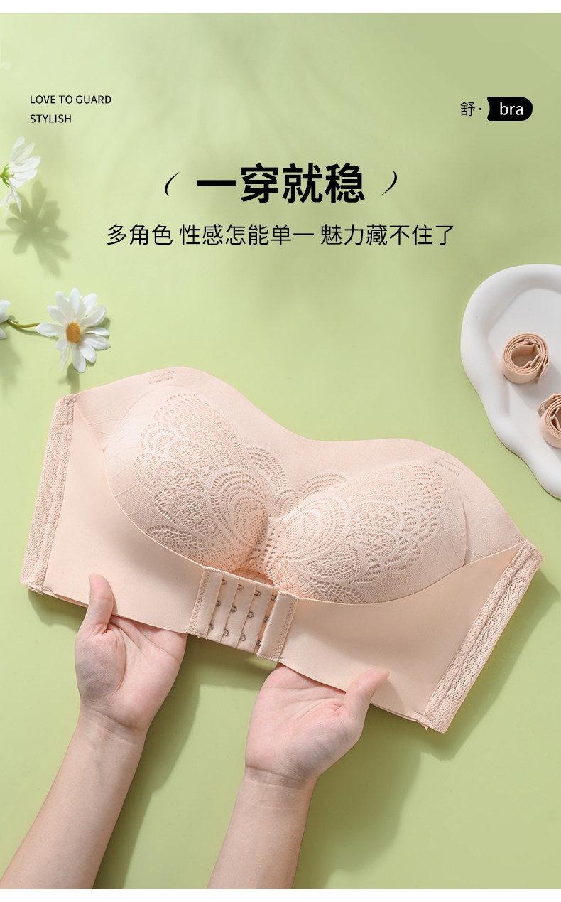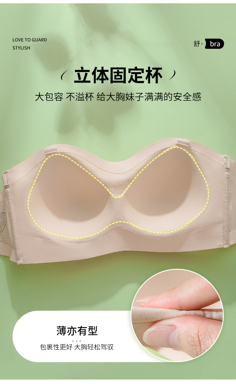 前釦無肩帶大碼內衣女大胸顯小無痕薄款抹胸防滑聚攏上托裹胸防掉