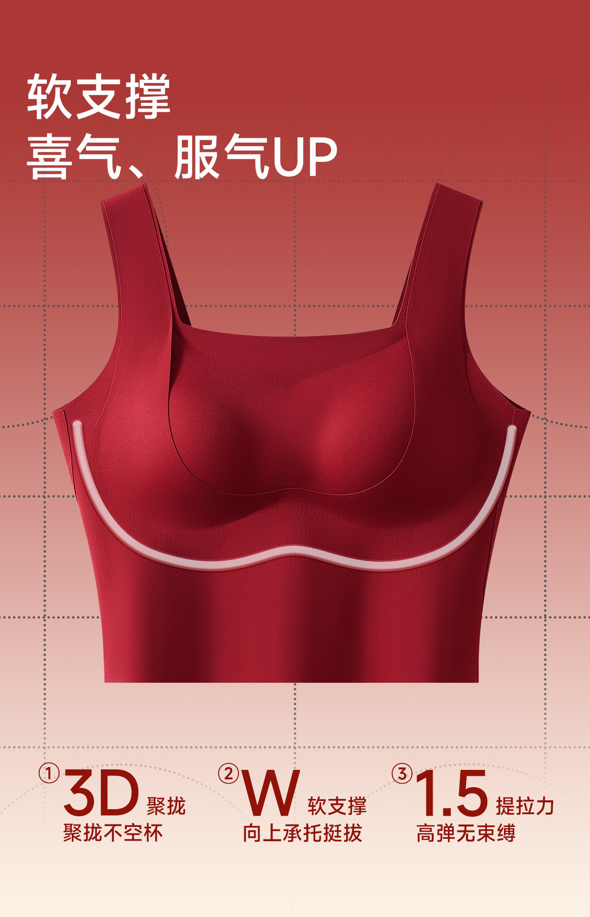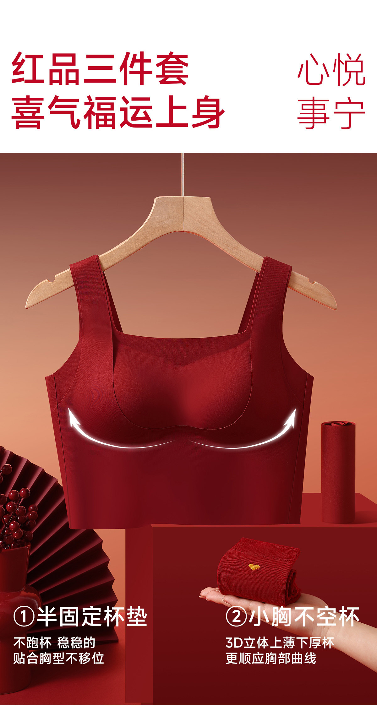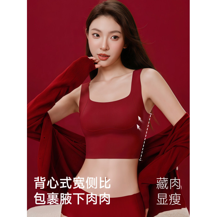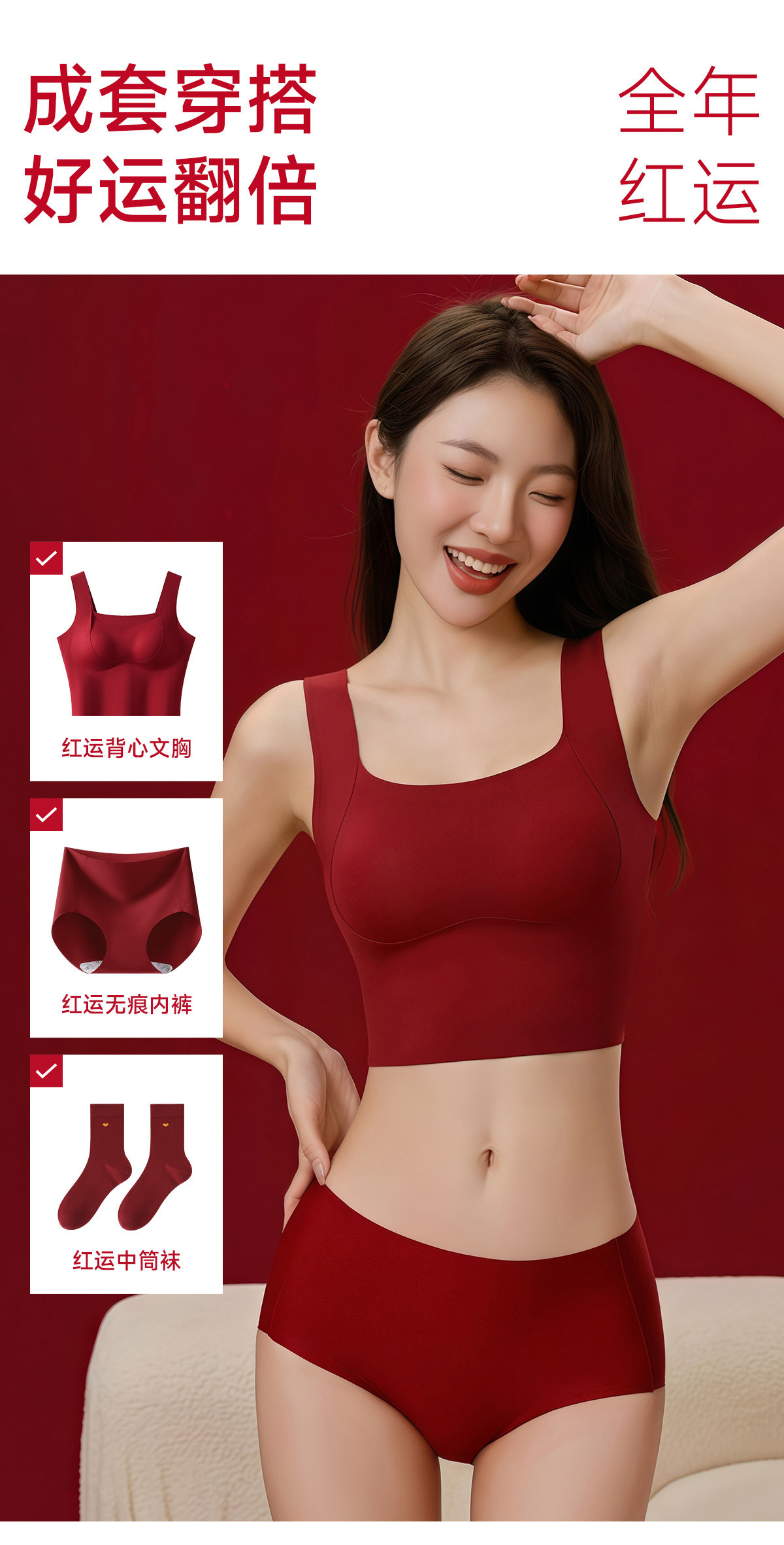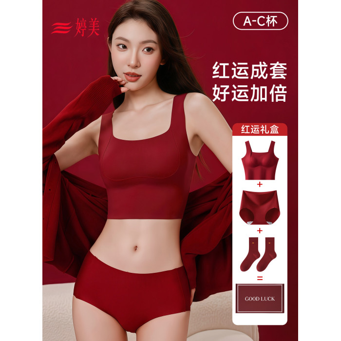 婷美本命年紅色保暖背心女2026馬年無鋼圈全罩杯文胸內衣禮盒套裝