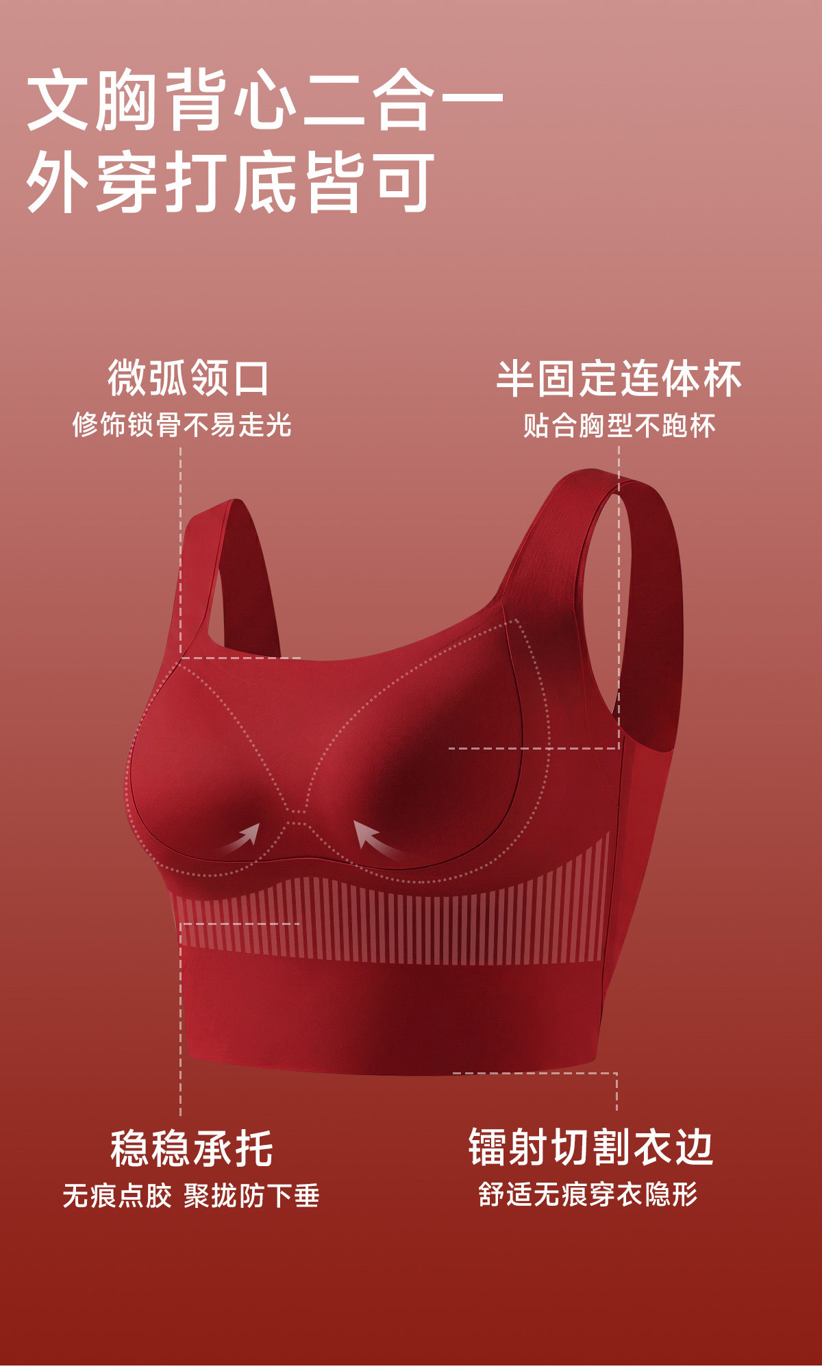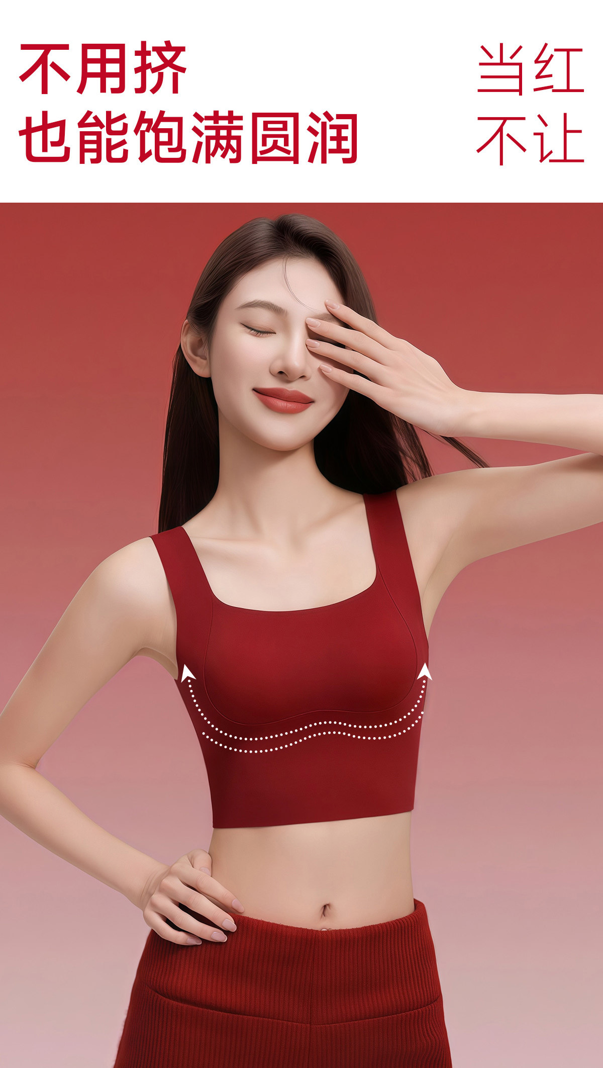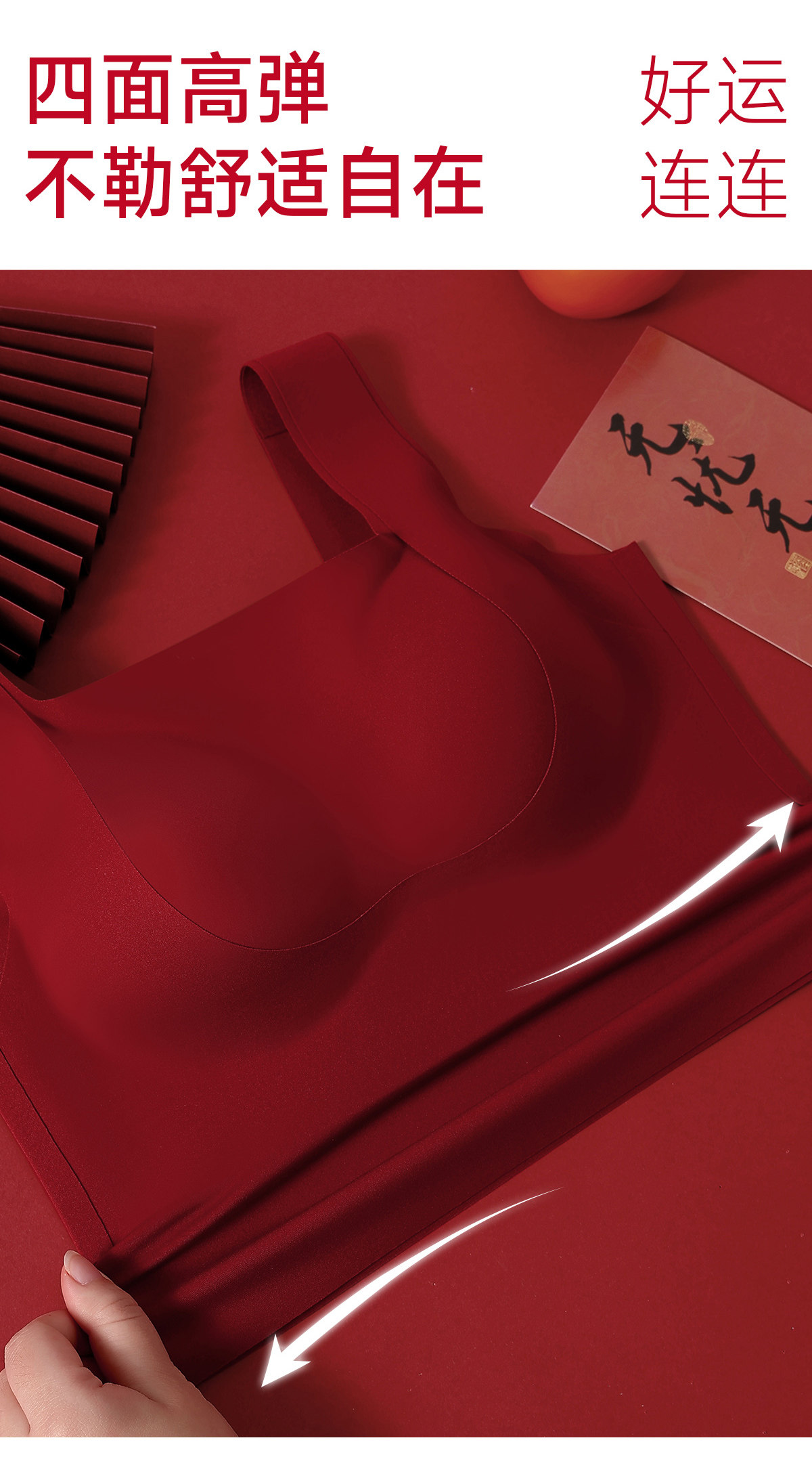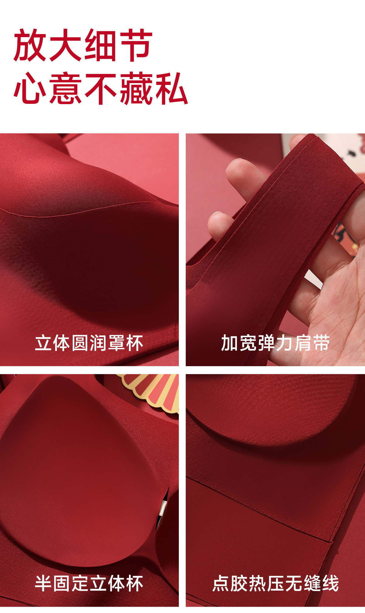 婷美本命年紅色保暖背心女2026馬年無鋼圈全罩杯文胸內衣禮盒套裝