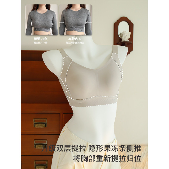 大胸顯瘦~巨顯小有型四面彈果凍軟撐無痕兔耳朵全罩杯無鋼圈文胸