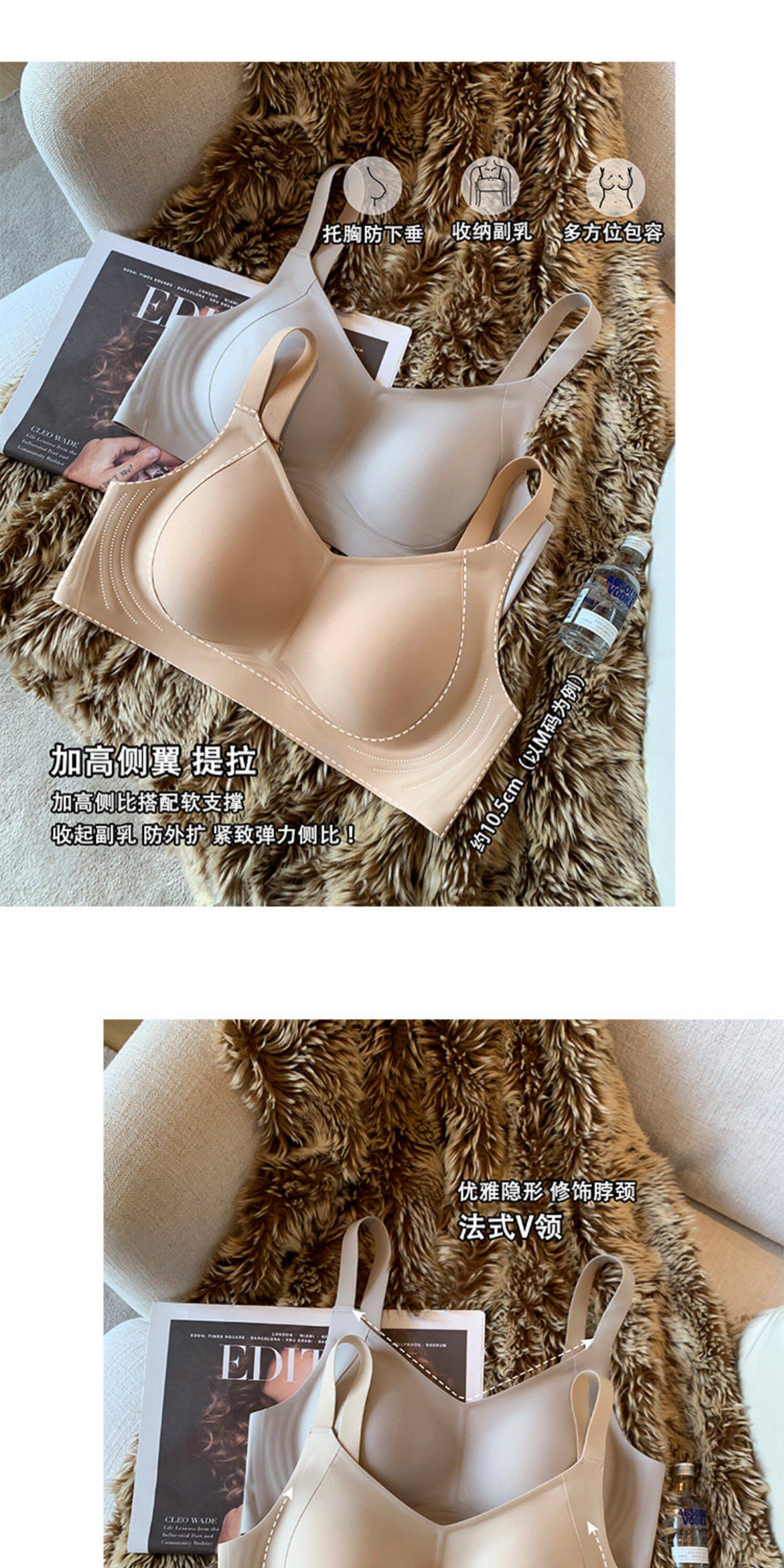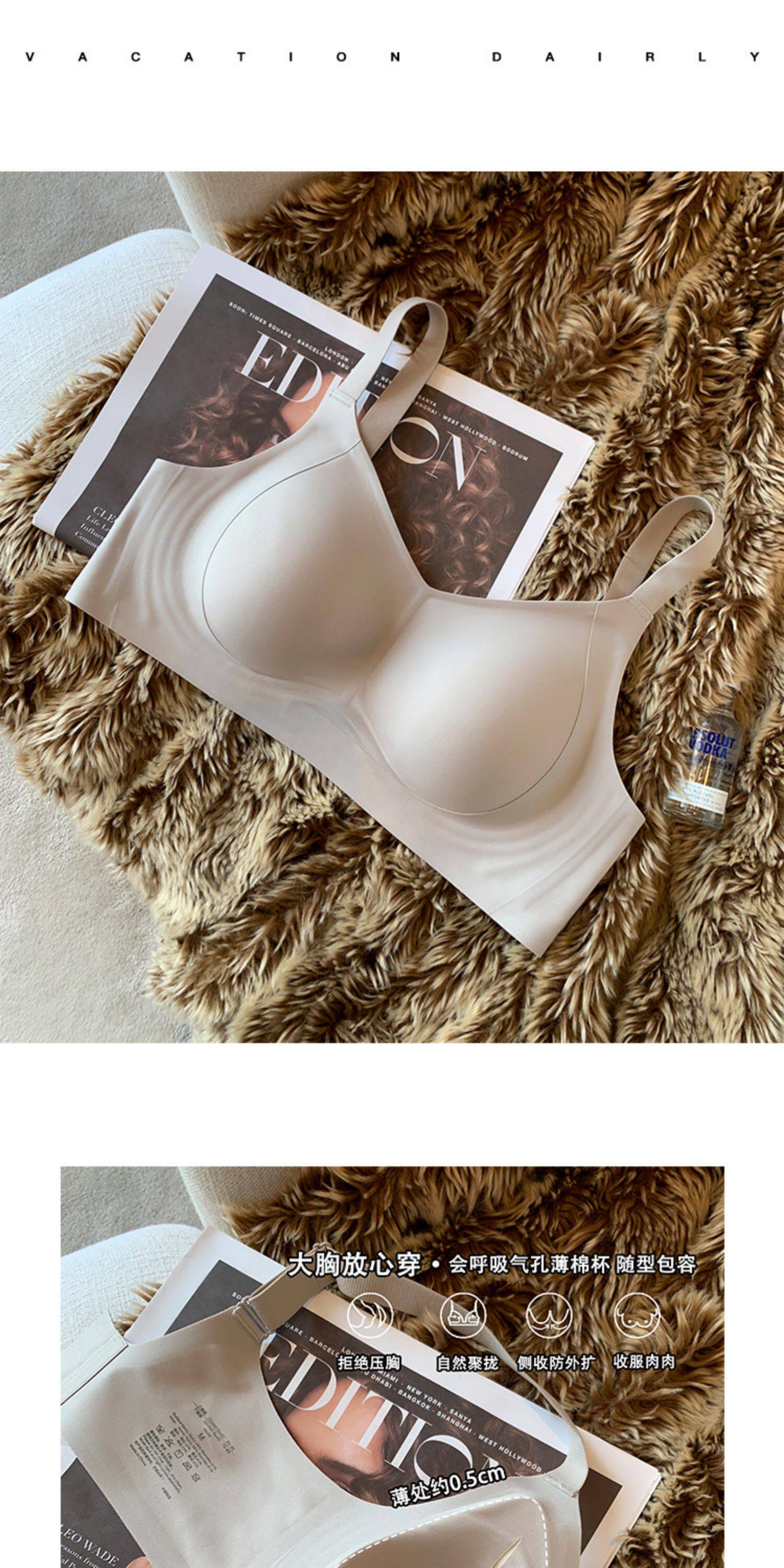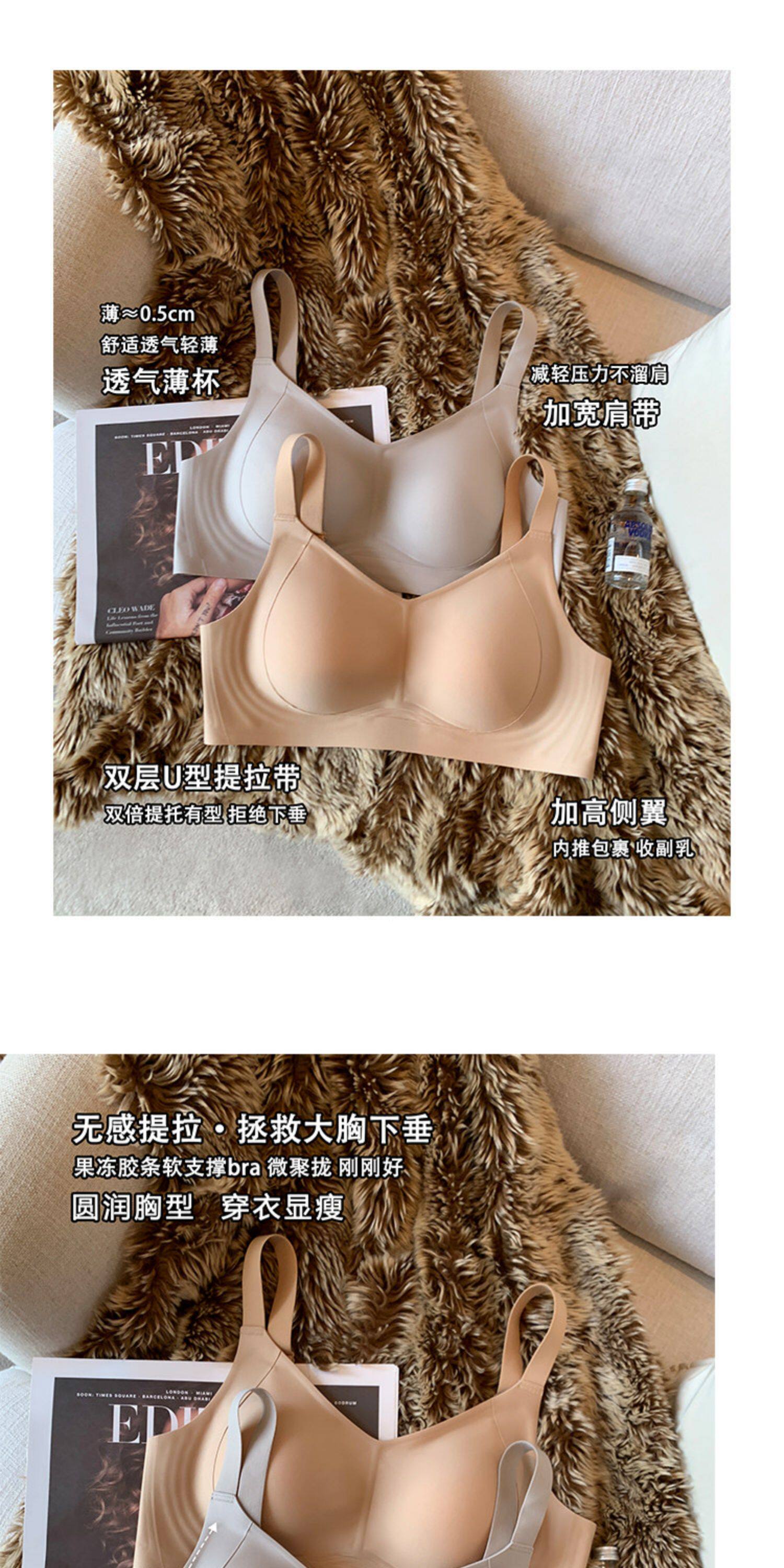 薄款提拉型無痕粉底液內衣女大胸顯小無鋼圈收副乳防下垂大碼文胸