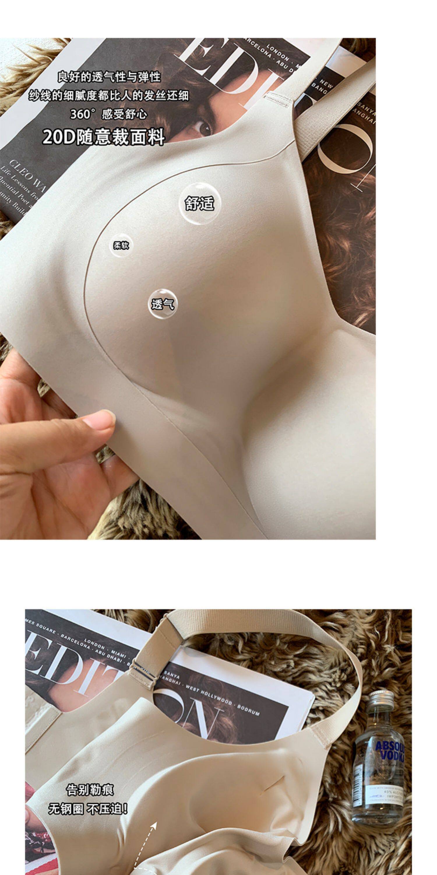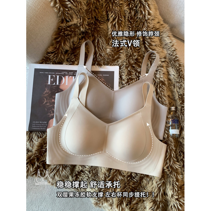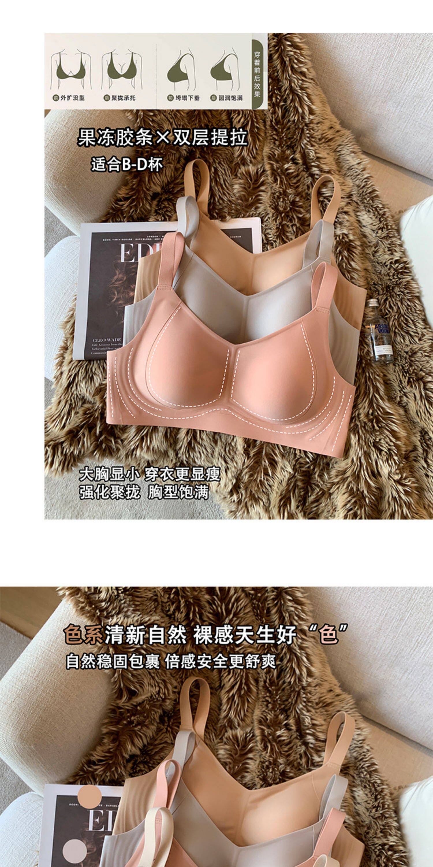 薄款提拉型無痕粉底液內衣女大胸顯小無鋼圈收副乳防下垂大碼文胸
