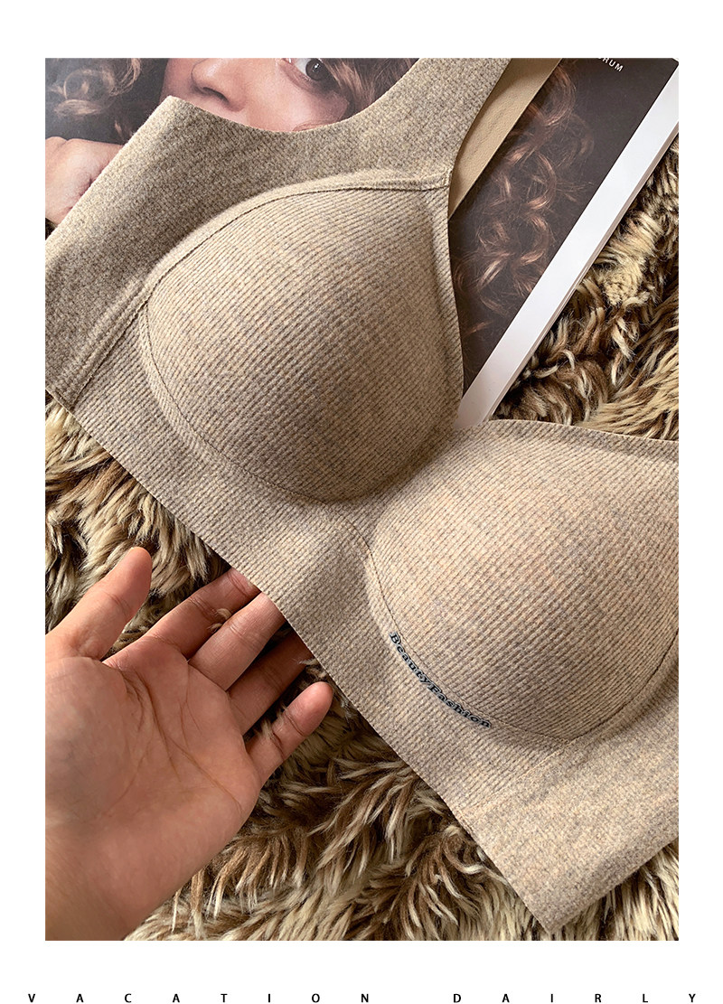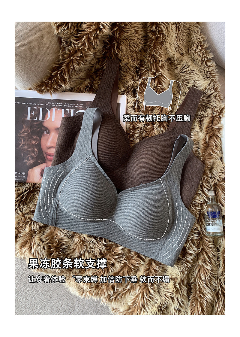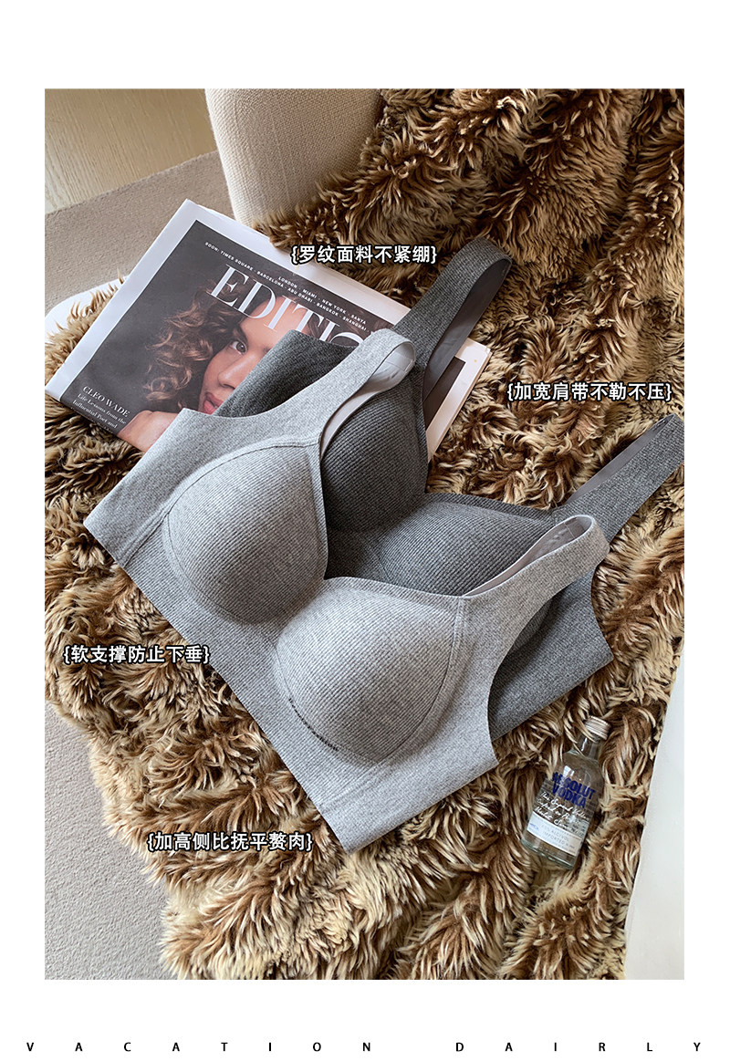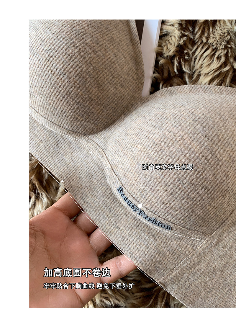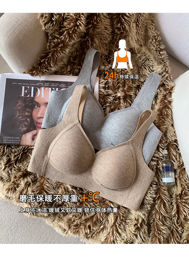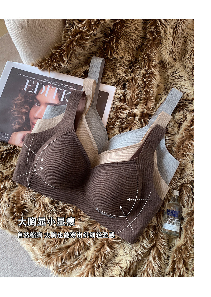 秋冬磨毛保暖螺紋內衣女無痕舒適大胸顯小無鋼圈收副乳防下垂文胸