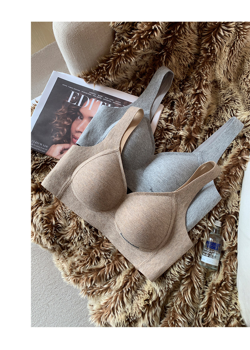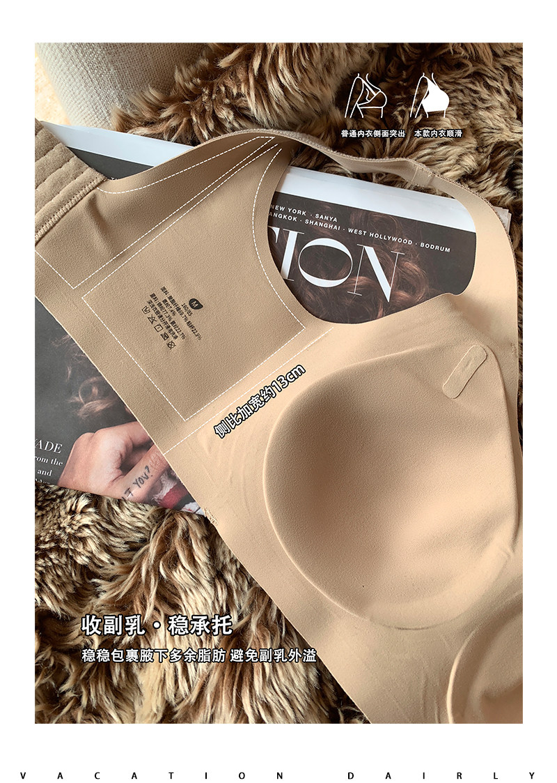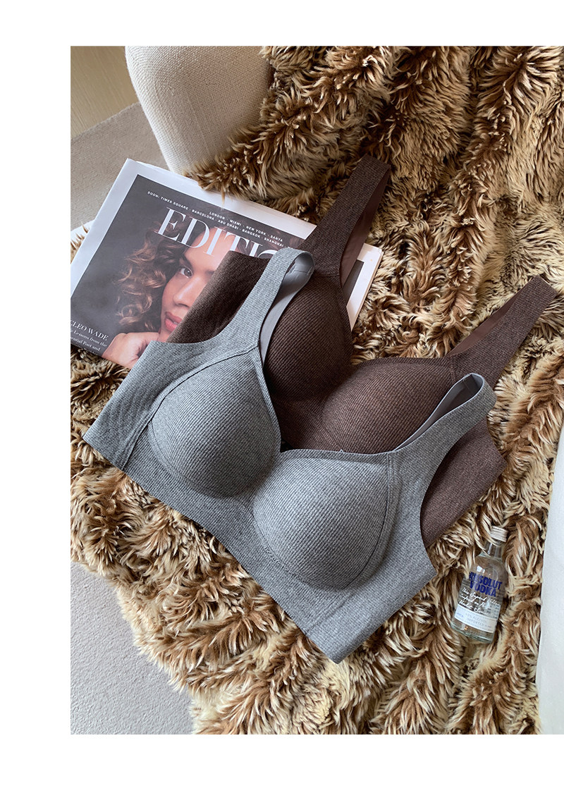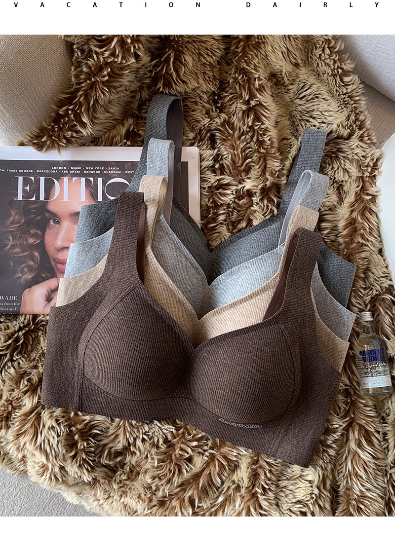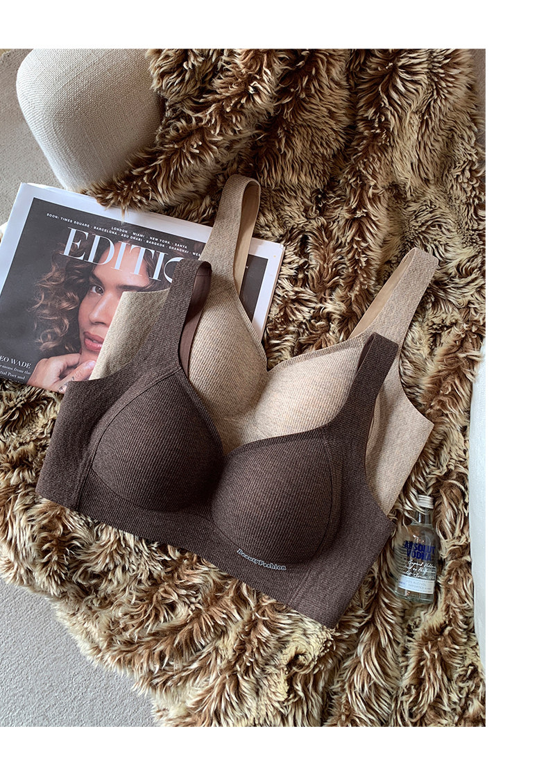 秋冬磨毛保暖螺紋內衣女無痕舒適大胸顯小無鋼圈收副乳防下垂文胸