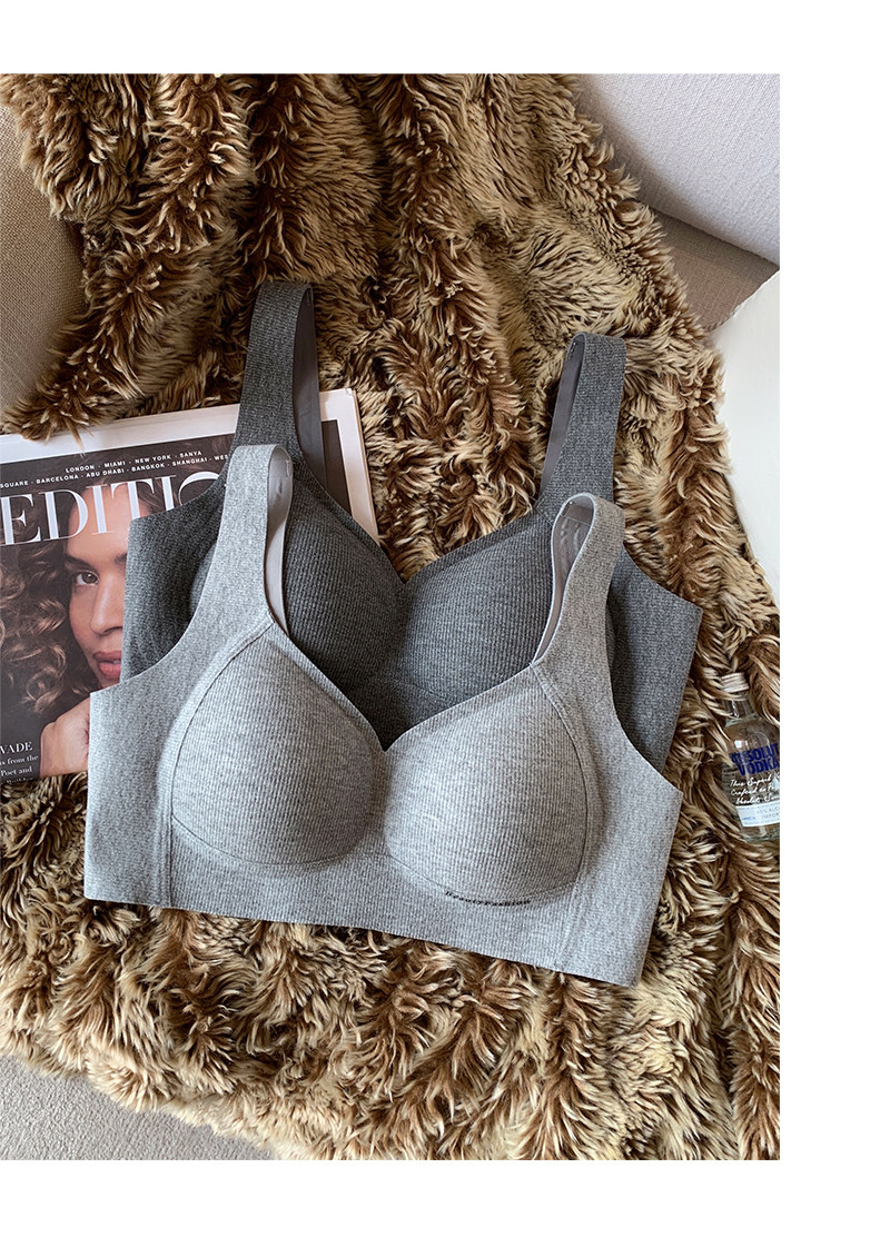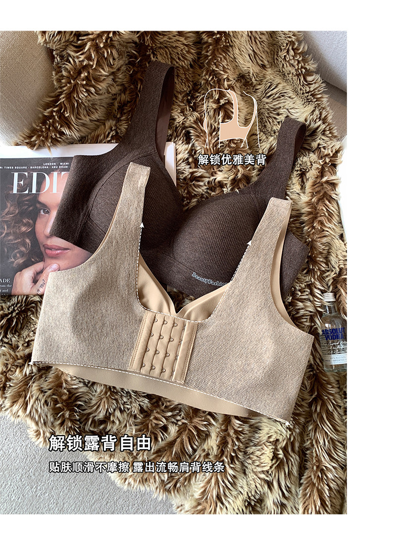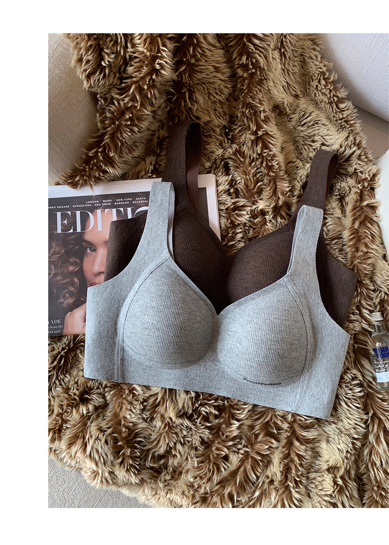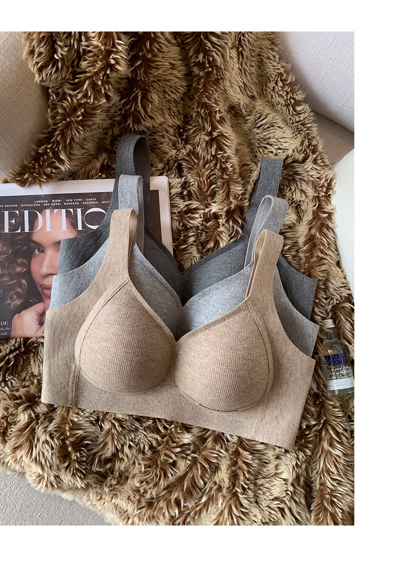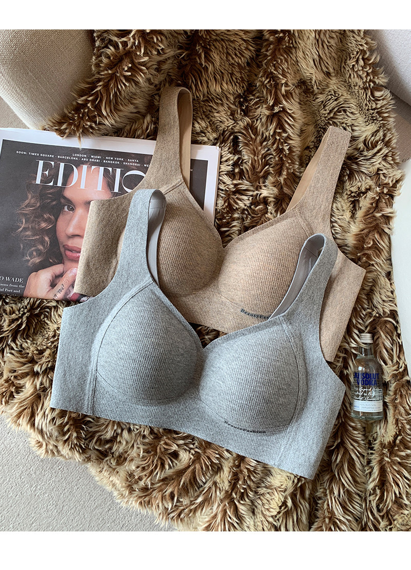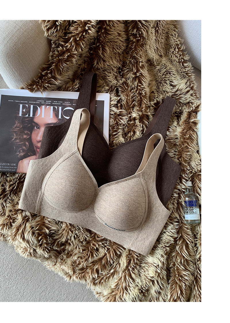 秋冬磨毛保暖螺紋內衣女無痕舒適大胸顯小無鋼圈收副乳防下垂文胸