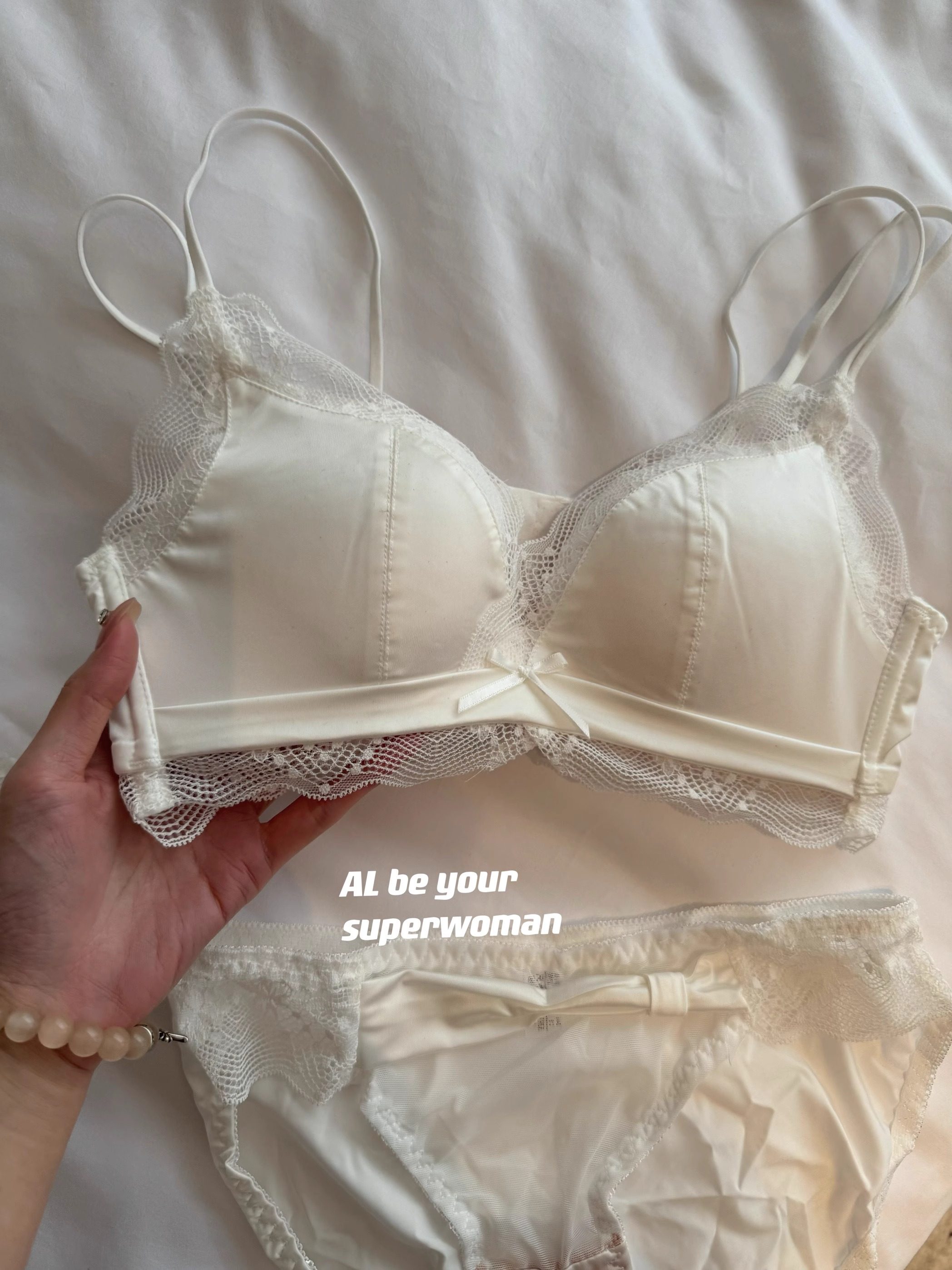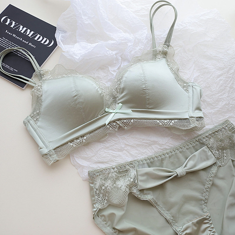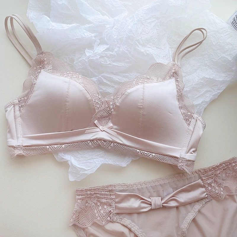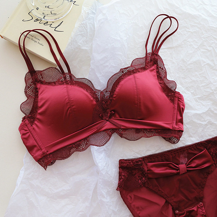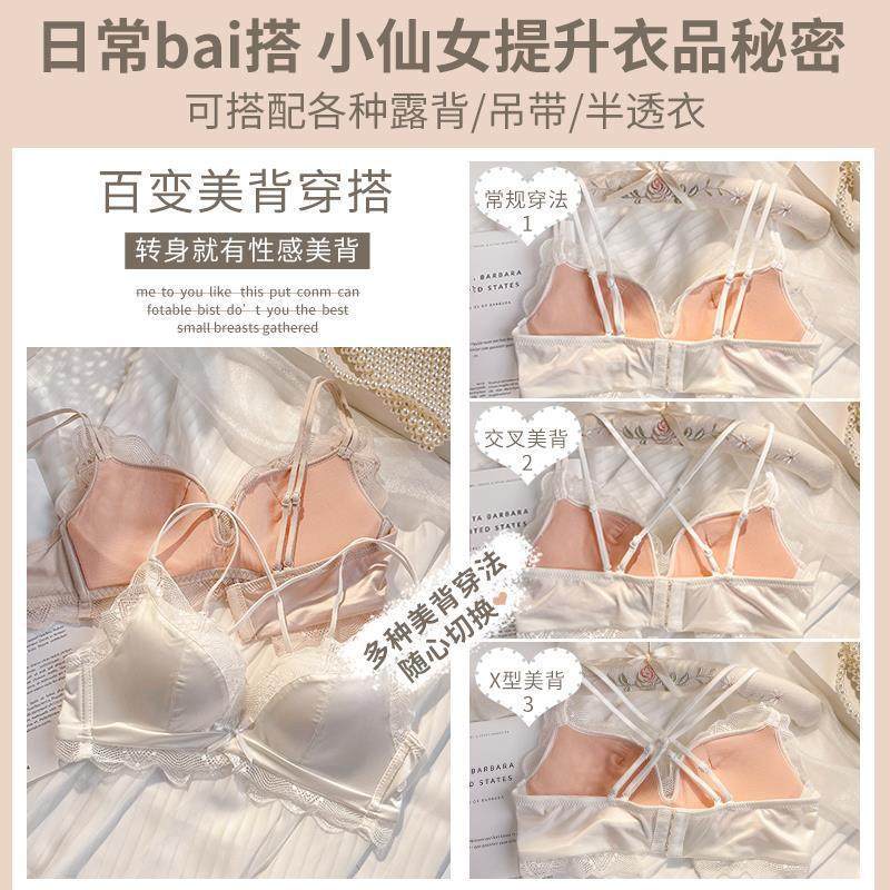 小胸聚攏顯大內衣套裝蕾絲緞面收副乳文胸無鋼圈上托光面無痕深v
