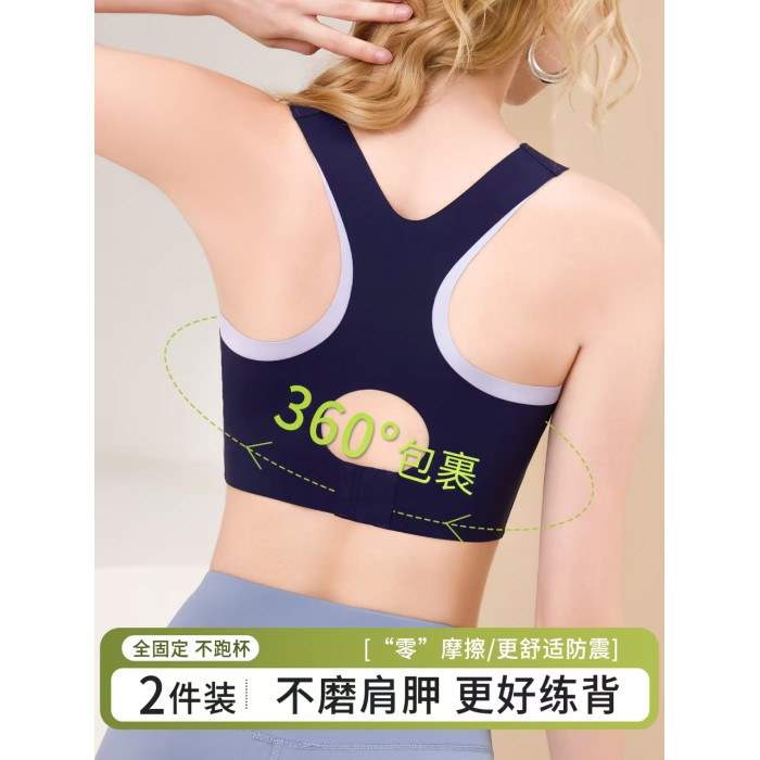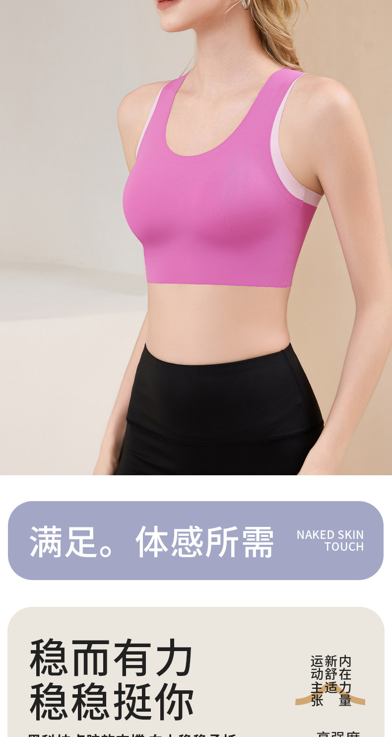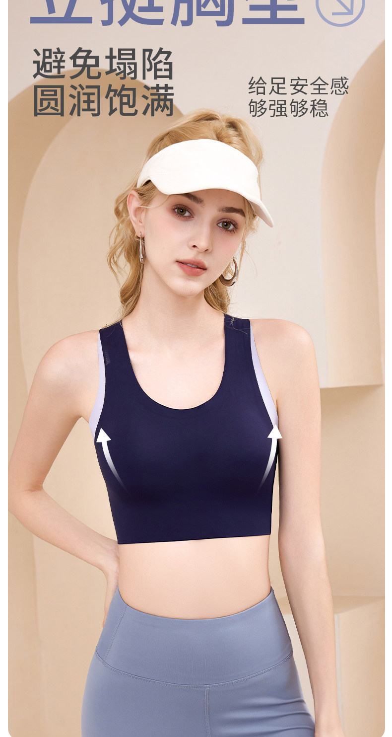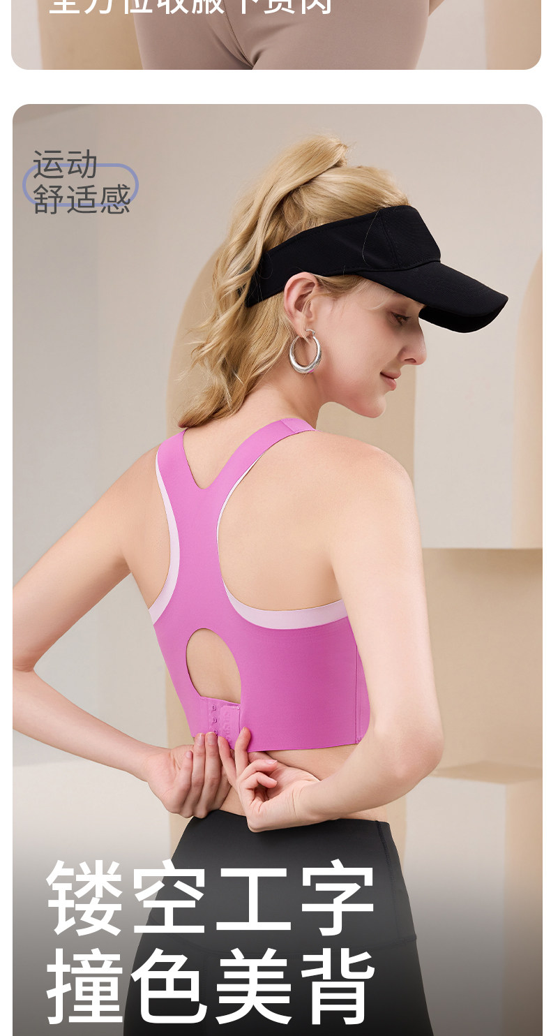 新款高強度瑜珈服運動內衣防震普拉提固定杯可調節撞色美背心文胸