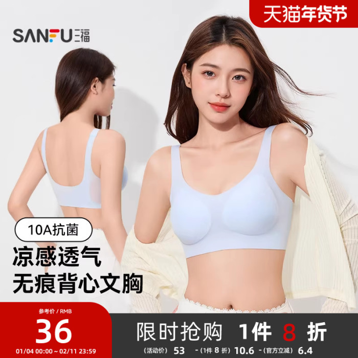 【抗菌】三福無鋼圈背心式聚攏文胸薄款舒適涼感抗菌內衣女