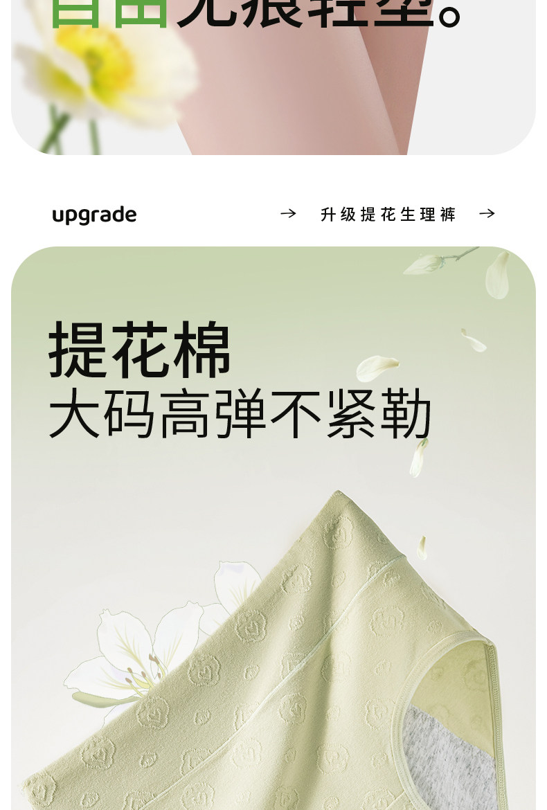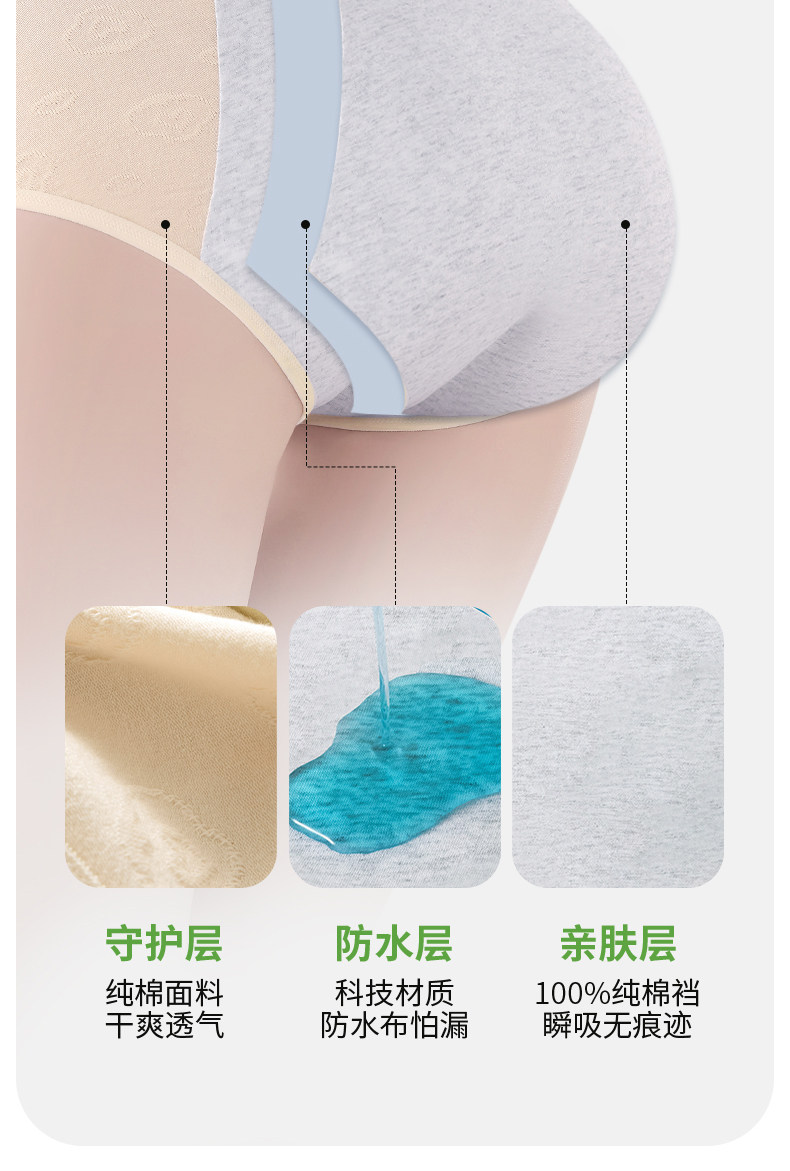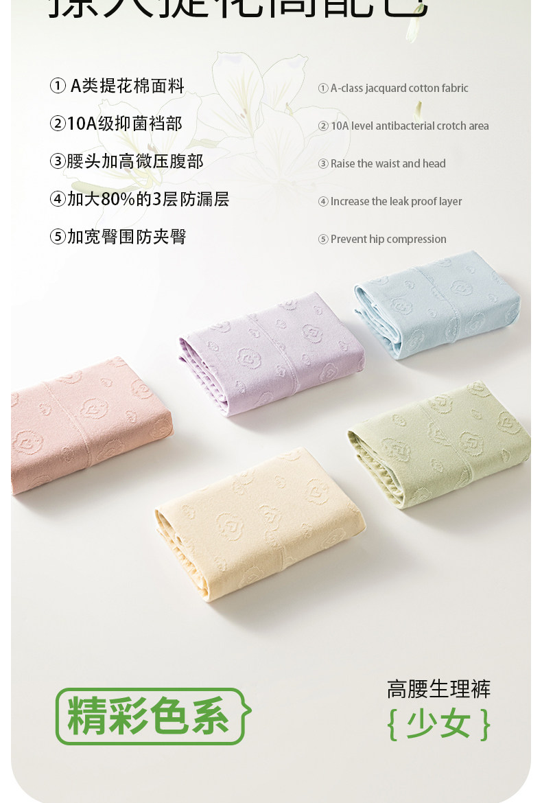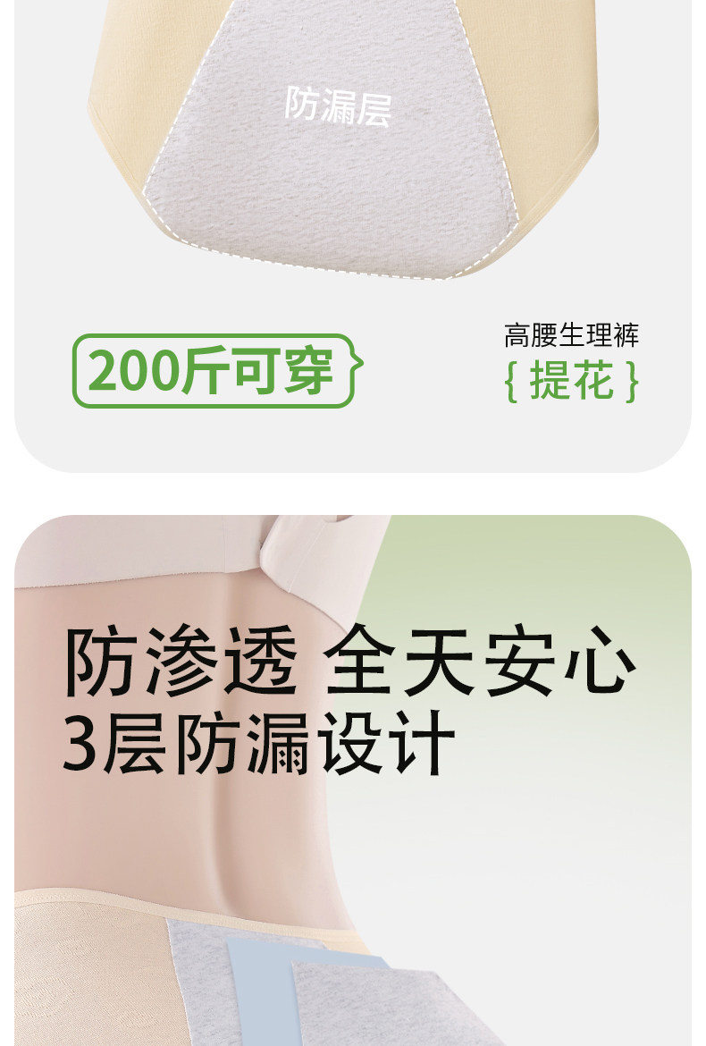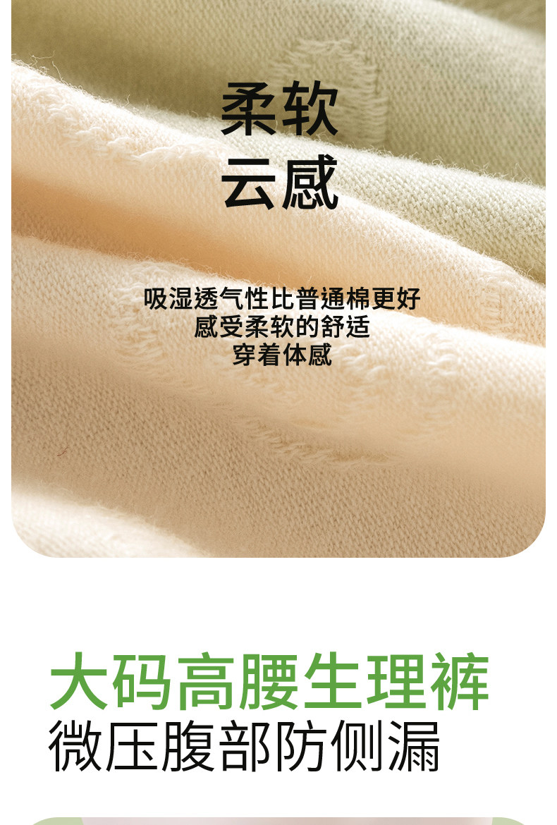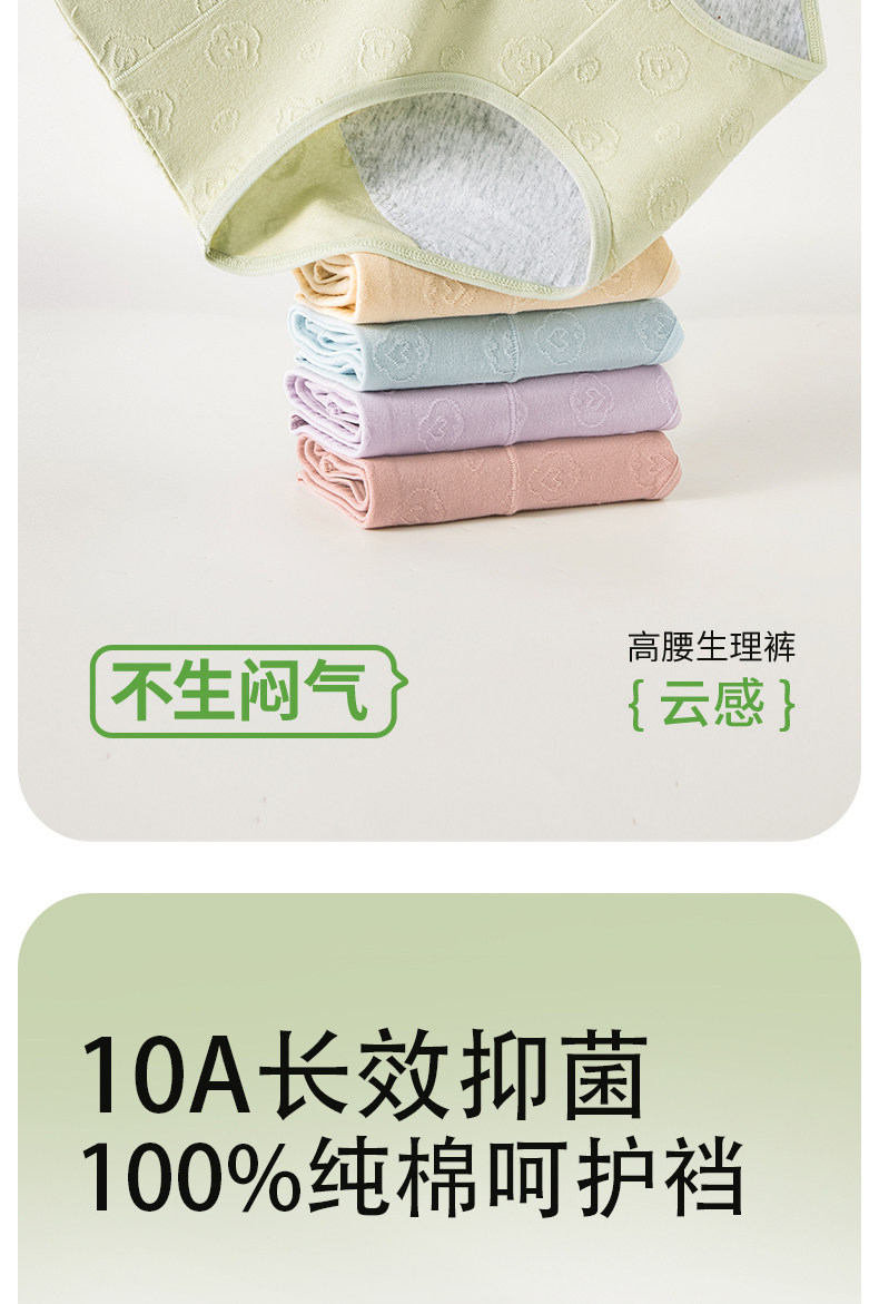草本初色純棉大碼少女生理褲月經期防漏10A抑菌200斤加寬姨媽內褲