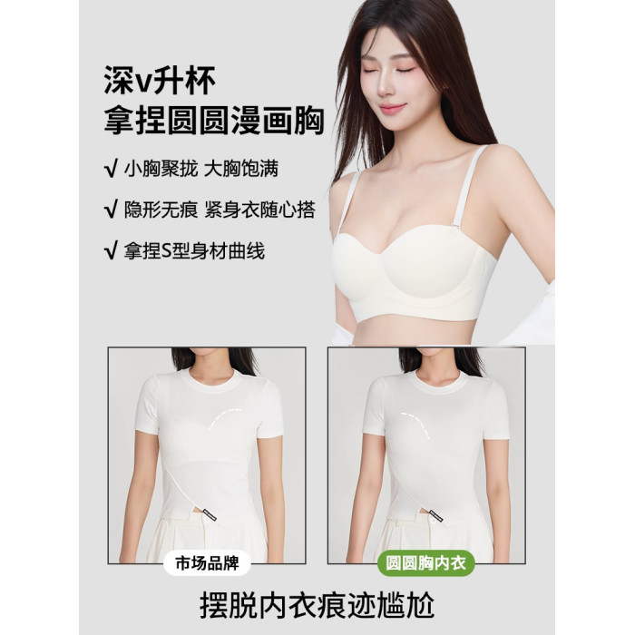 PINK【圓圓胸】聚攏內衣小胸顯大女無痕塑形文胸胸罩pinkamylily