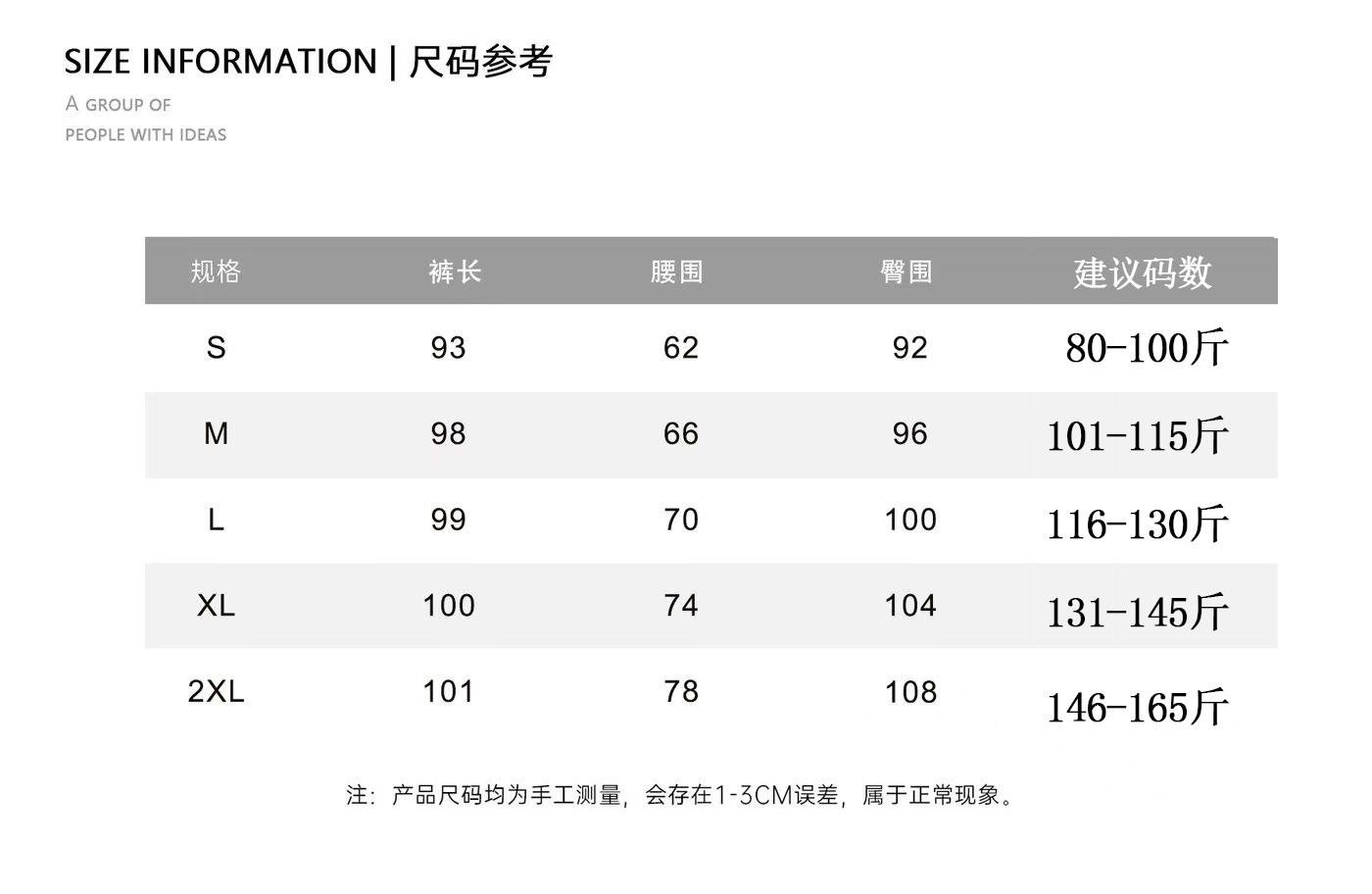 | 褲長 | 長褲 |