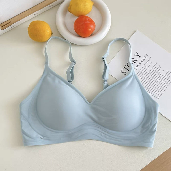 牛奶絲無痕內衣女無鋼圈大胸顯小胸聚攏上托3D軟支撐睡眠薄款文胸