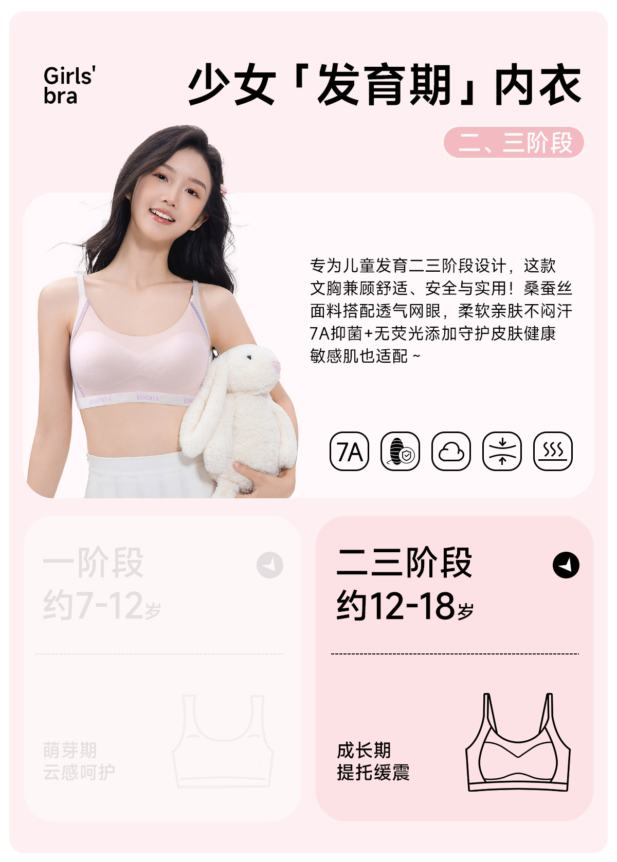 婷美發育期少女內衣學生初高中生無痕背心運動防震女童青春期文胸