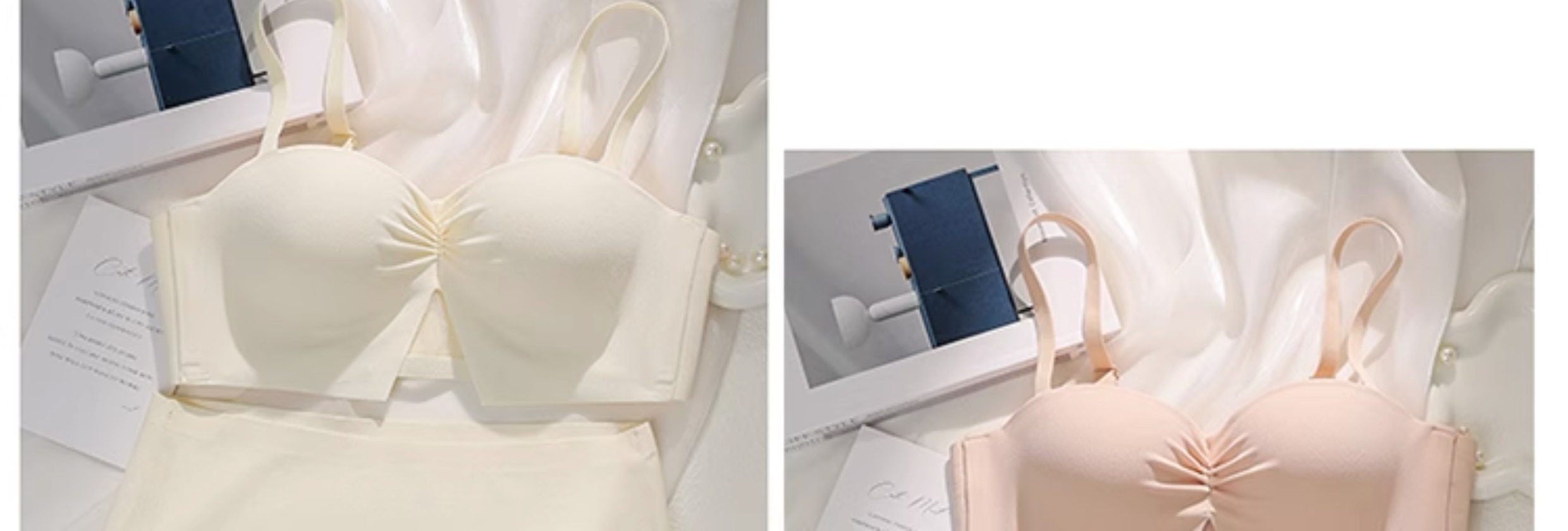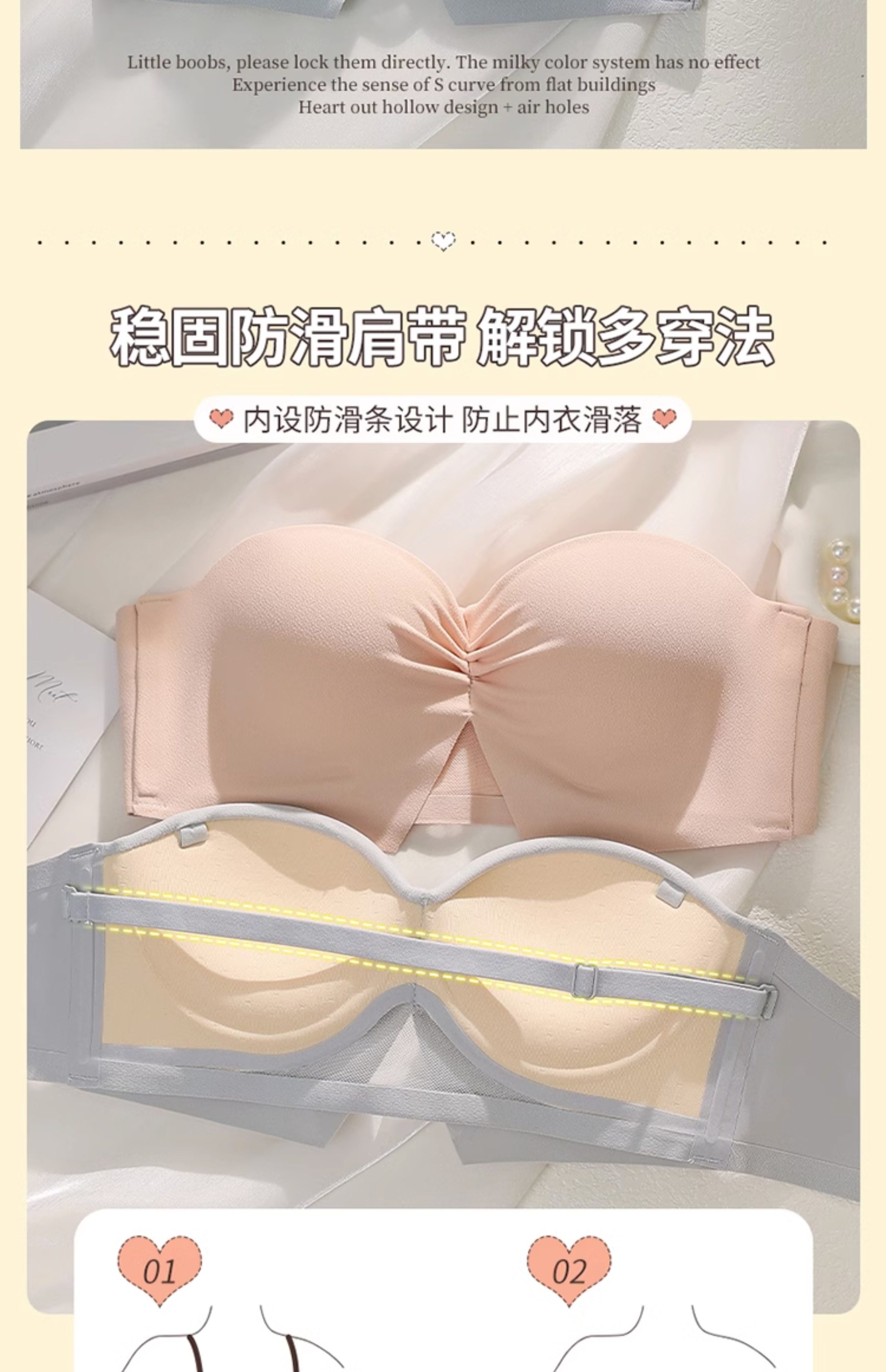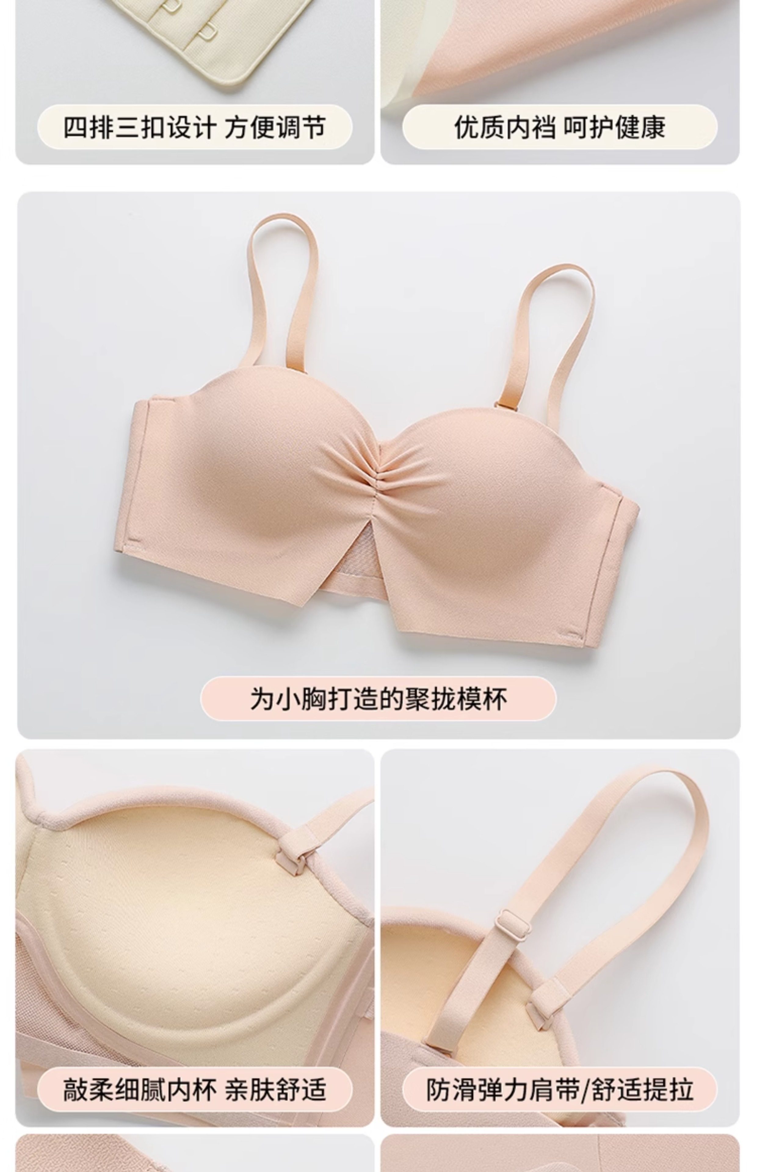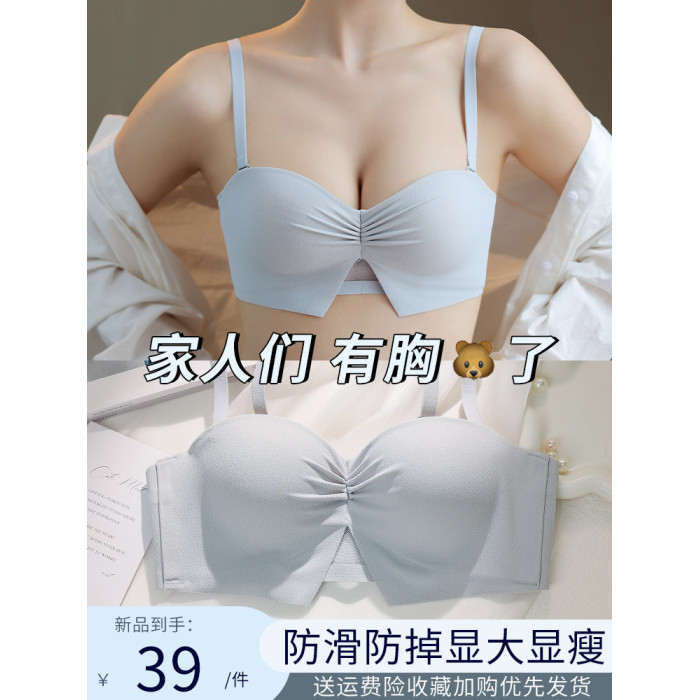 半杯少女生小胸聚攏內衣無鋼圈顯大aa杯平胸無肩帶防滑文胸罩套裝