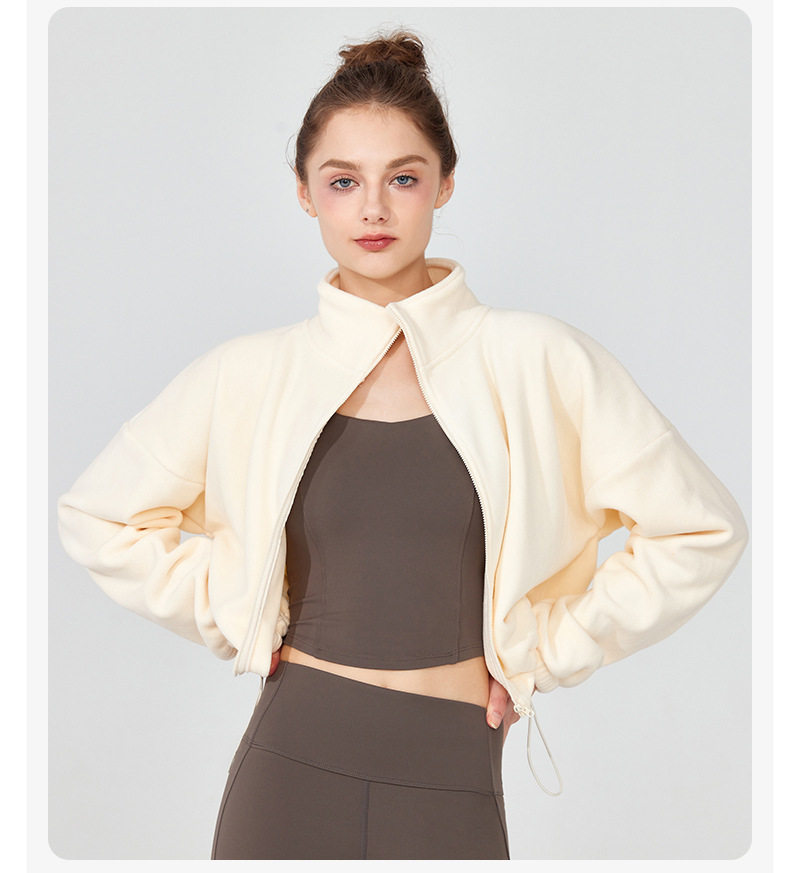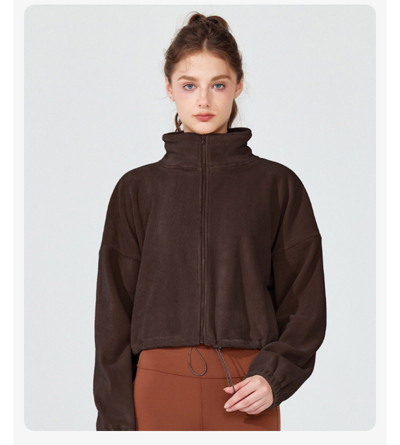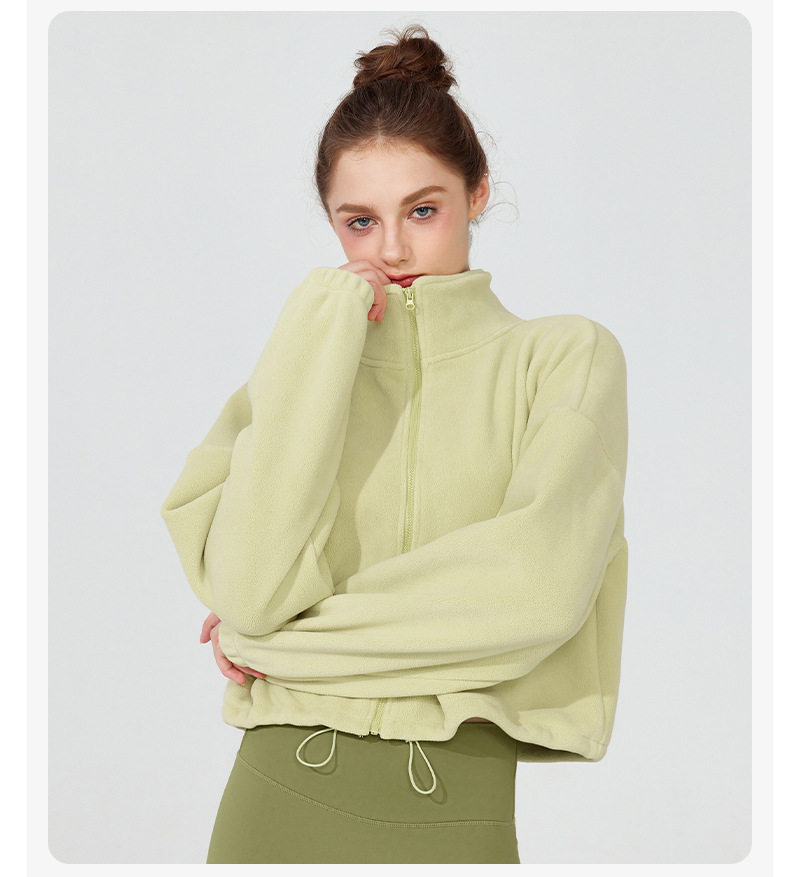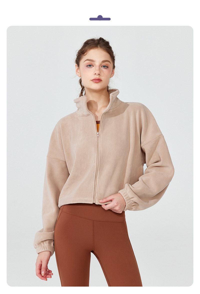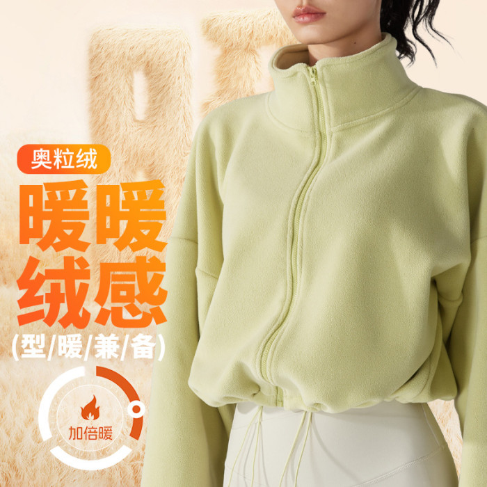 歐美羊羔絨運動外套女秋冬加絨加厚立領抓絨衣健身瑜珈服搖粒絨