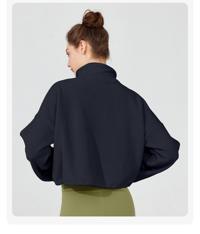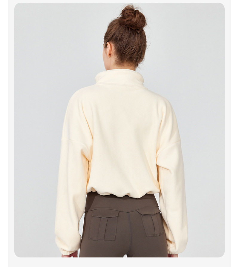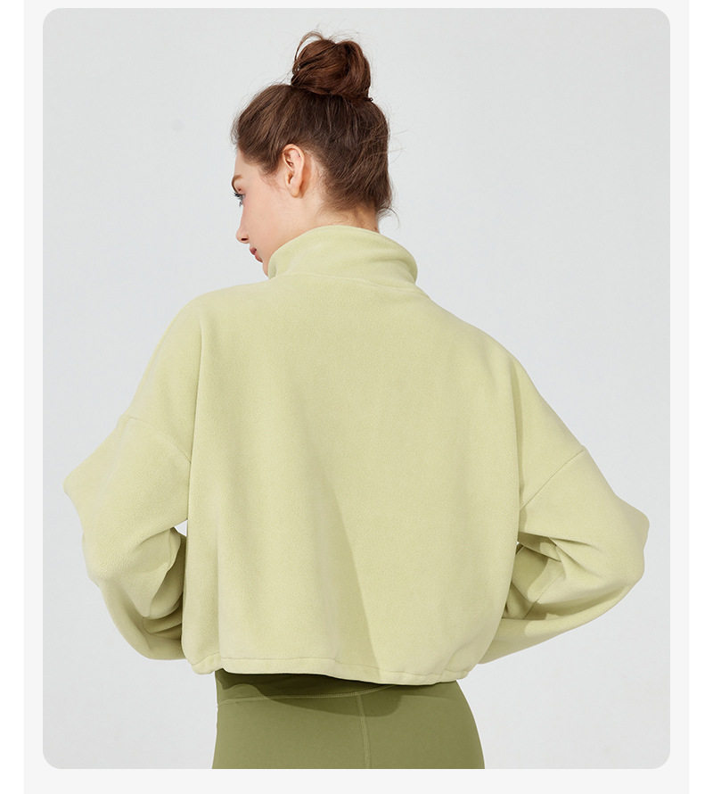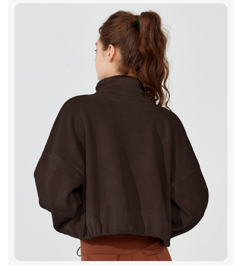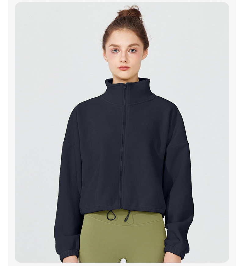 歐美羊羔絨運動外套女秋冬加絨加厚立領抓絨衣健身瑜珈服搖粒絨