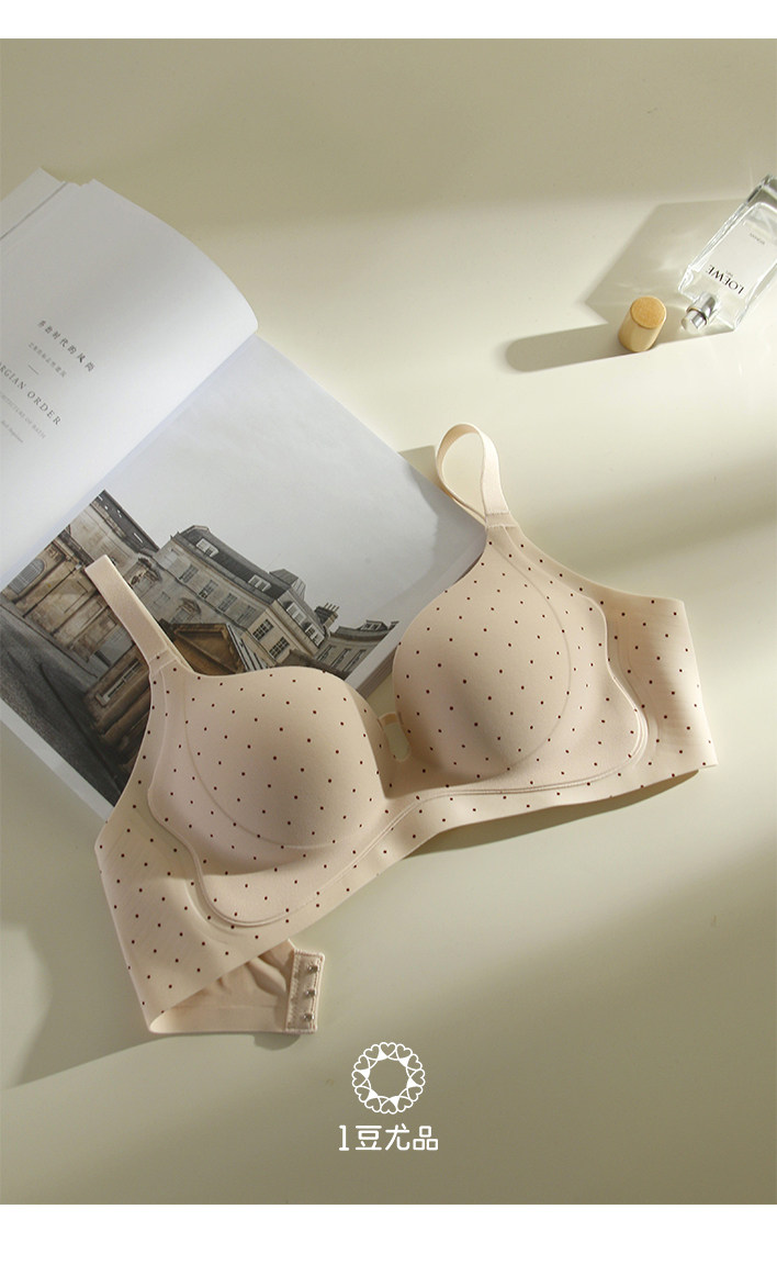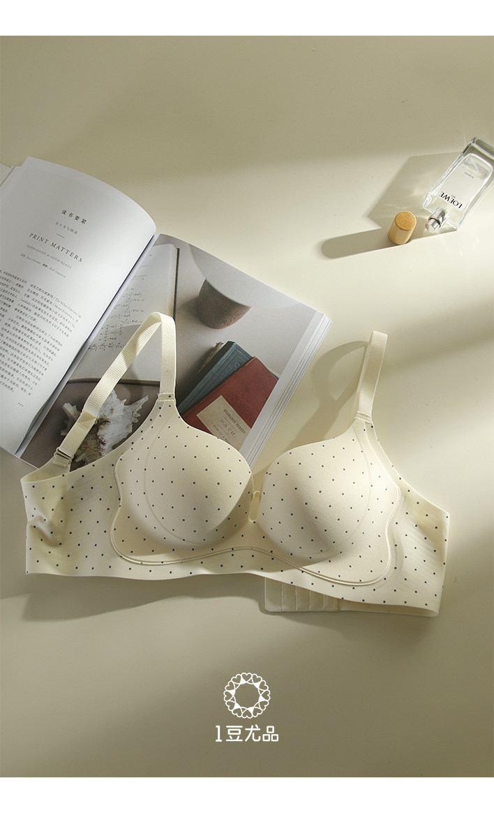 中厚2CM印花波點小胸聚攏內衣女軟支撐上托無鋼圈收副乳無痕文胸