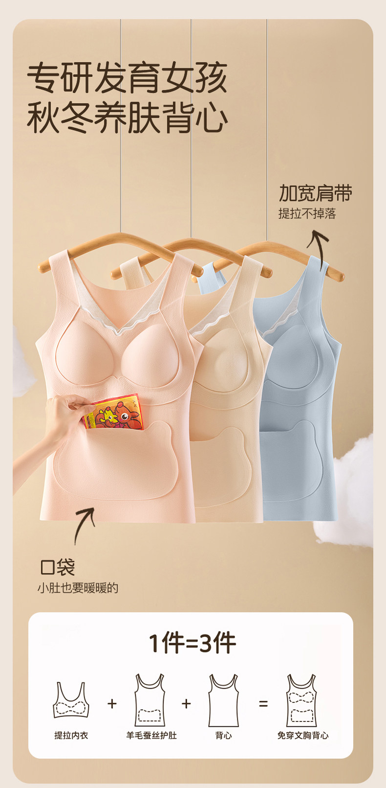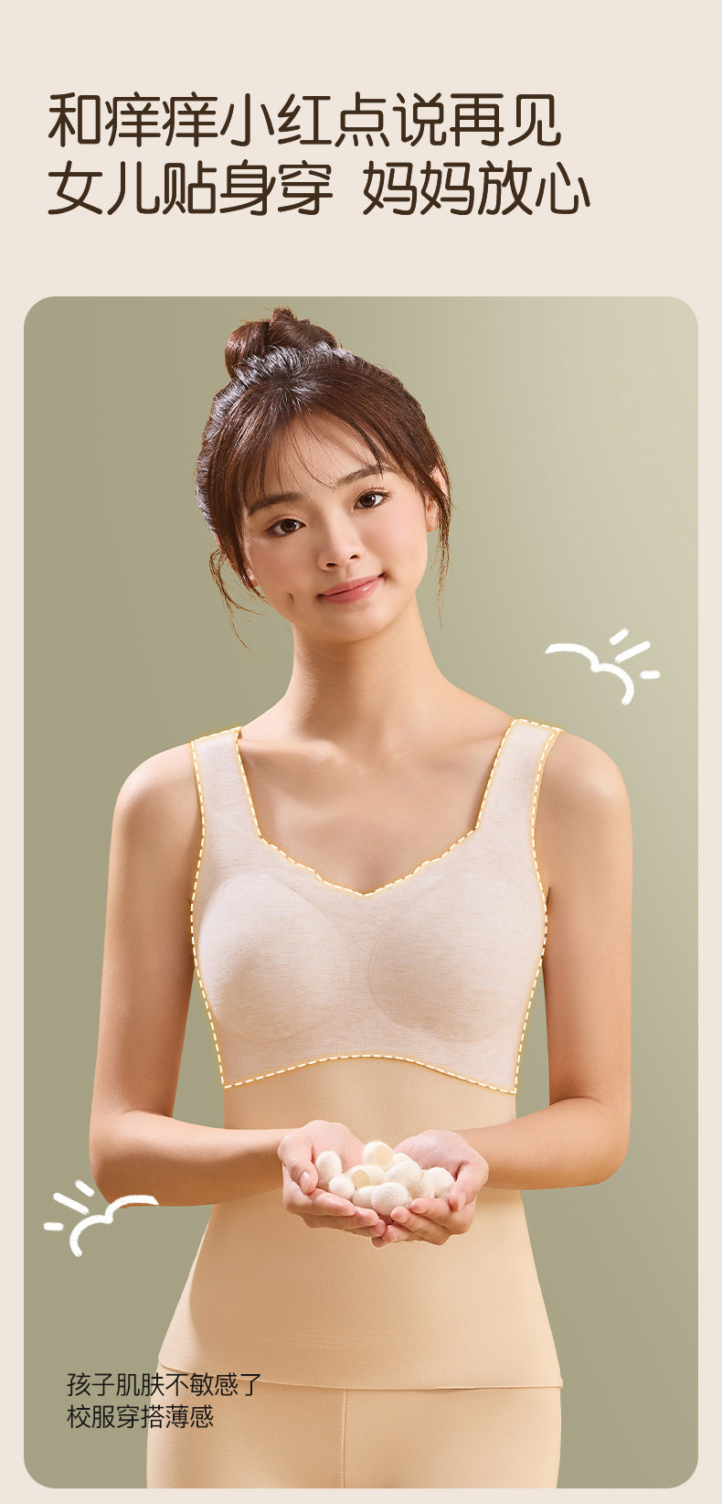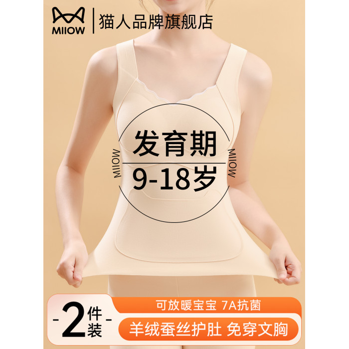 貓人少女女童發育期初高中生保暖背心羊毛蠶絲蓄熱青春期免穿文胸