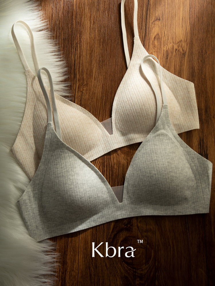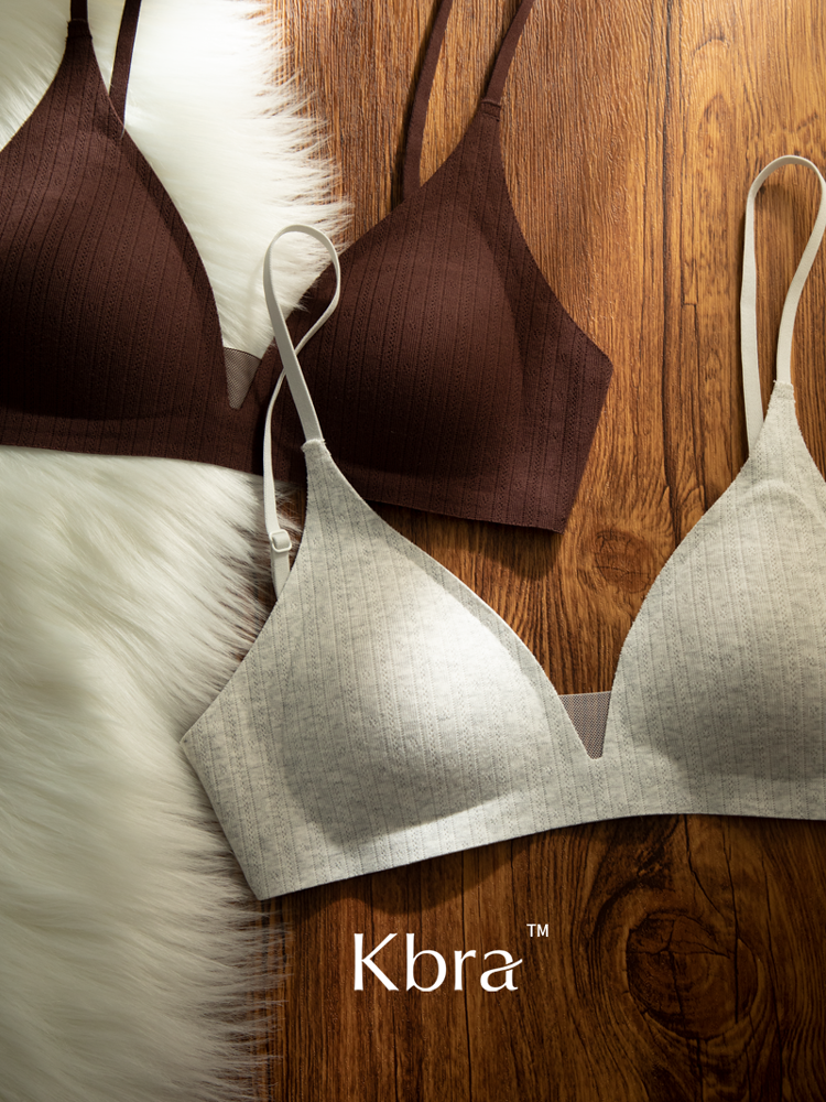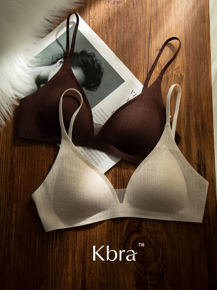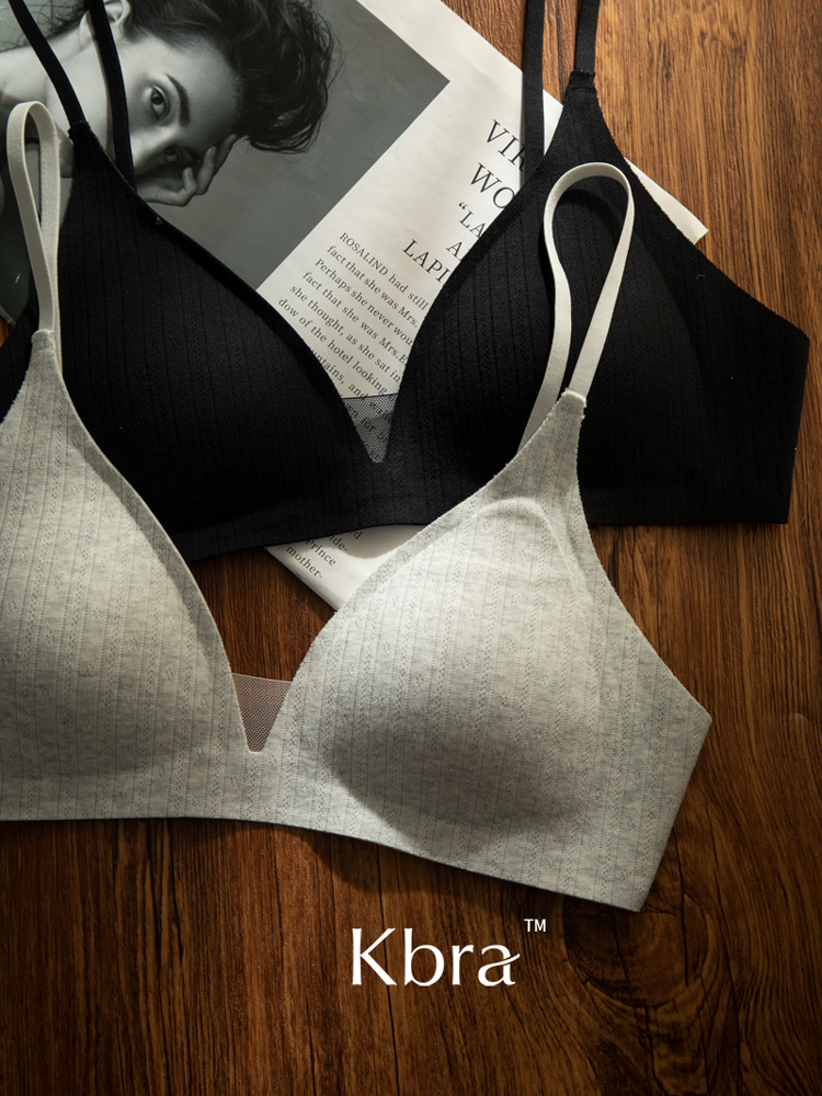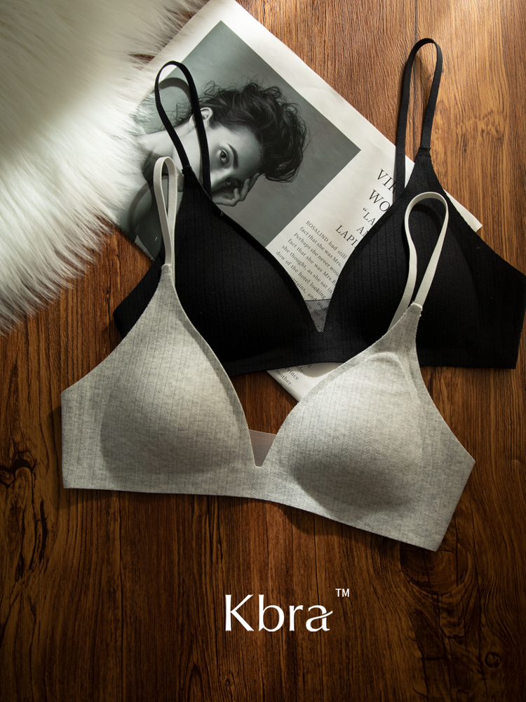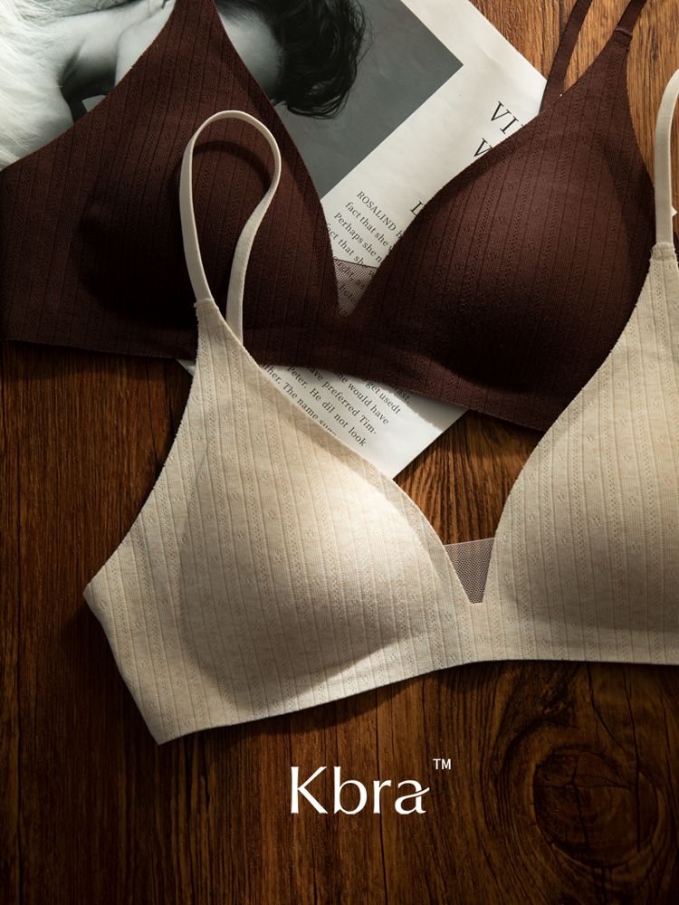 Kbra法式深V三角杯內衣女細肩帶顯小顯薄無鋼圈收副乳防下垂文胸