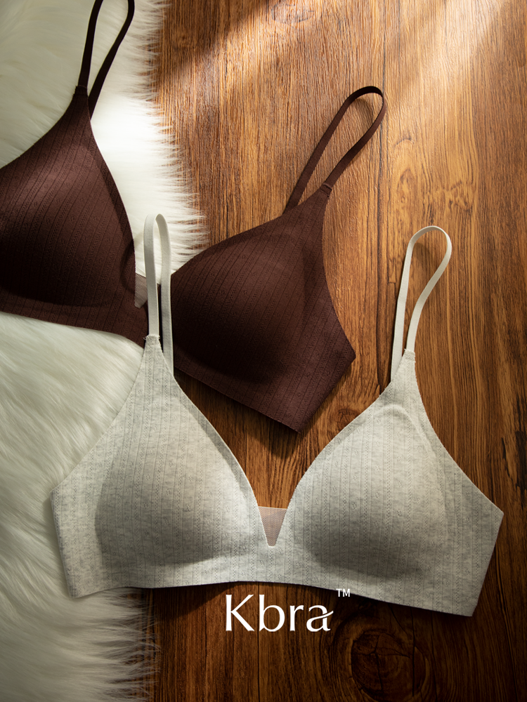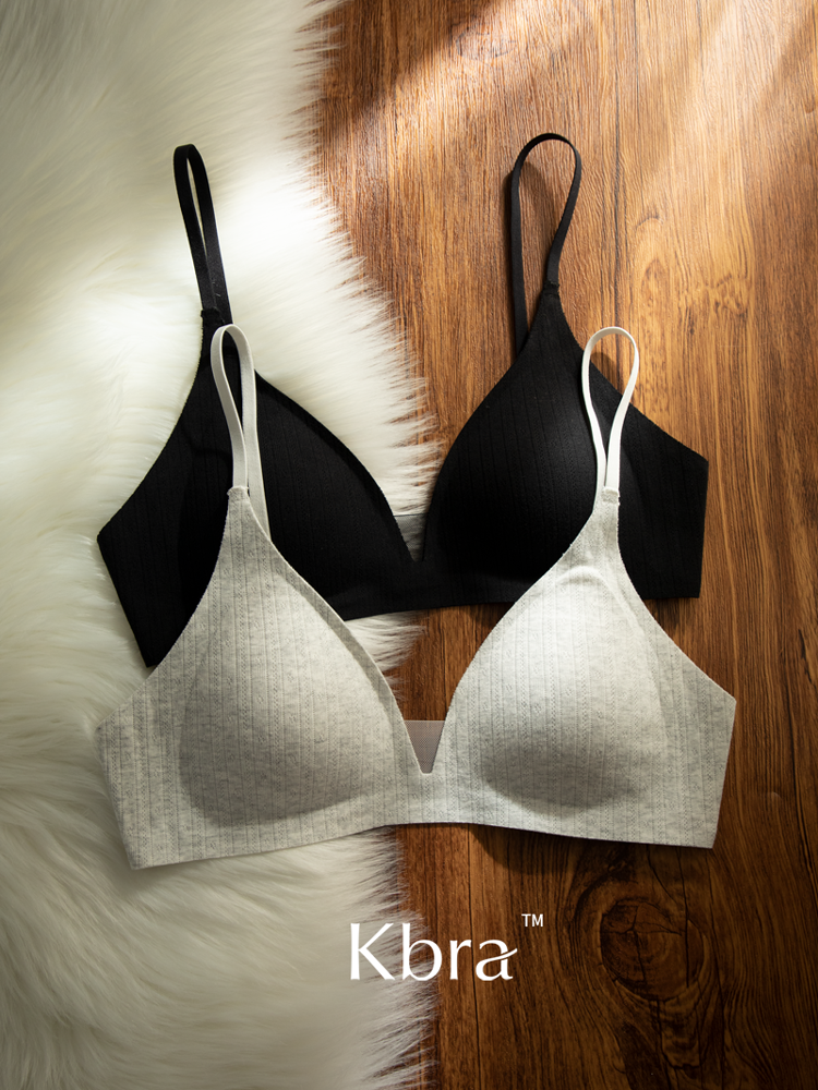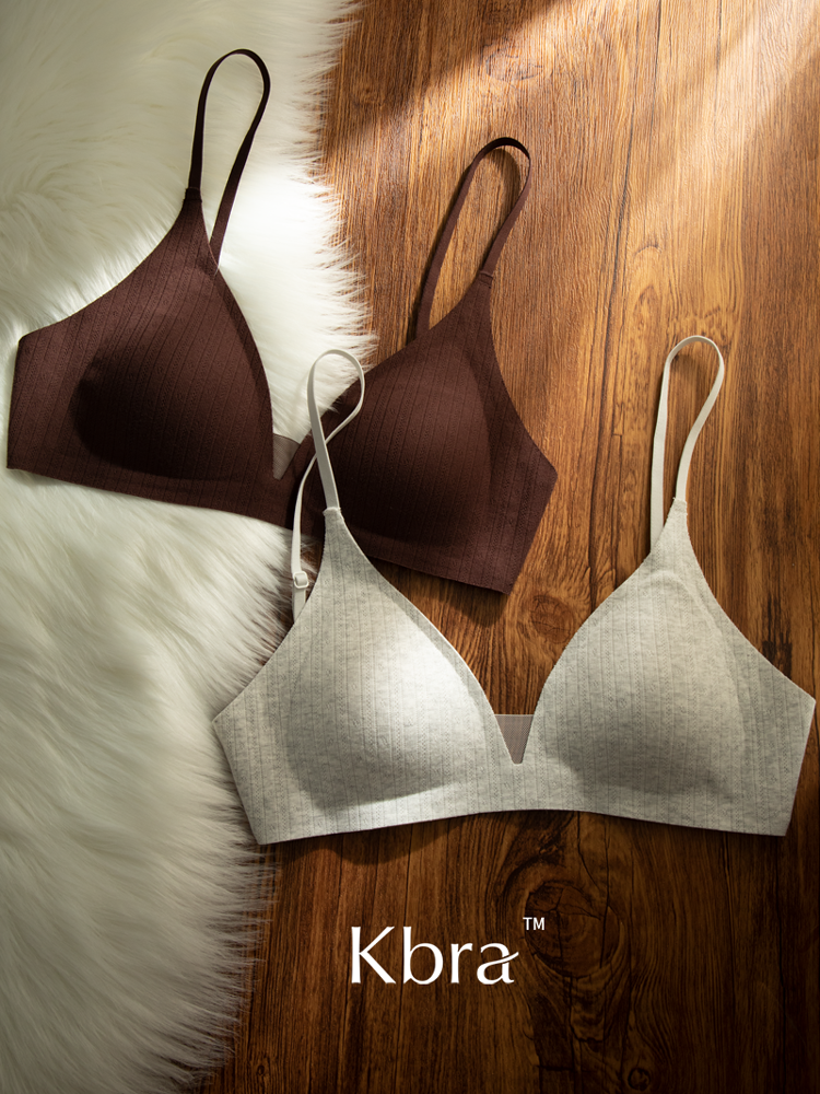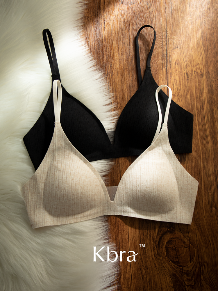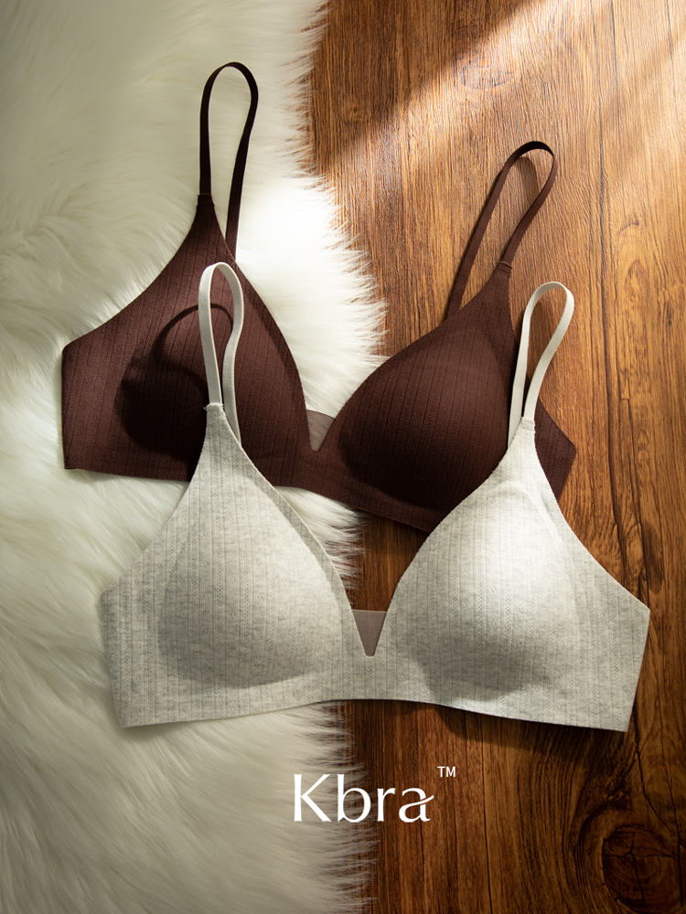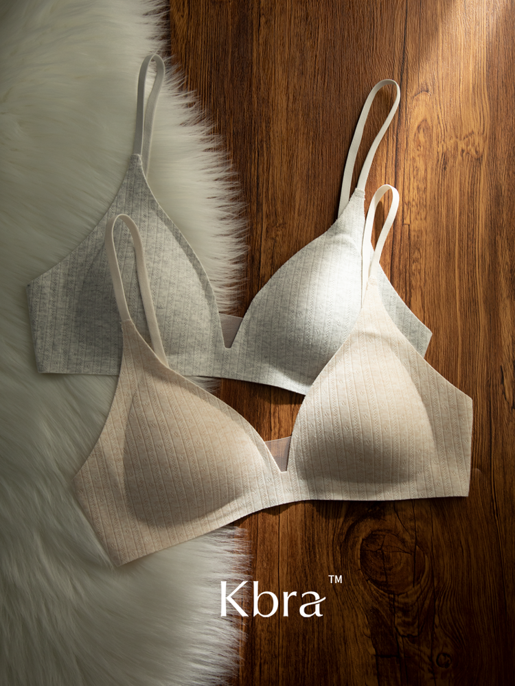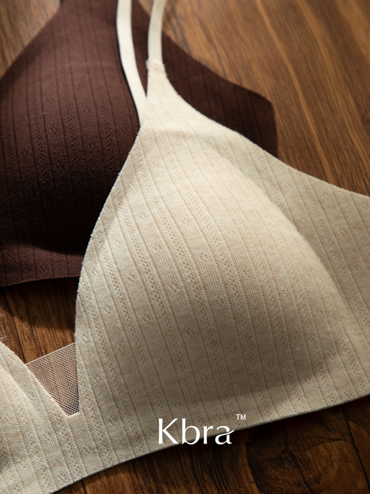 Kbra法式深V三角杯內衣女細肩帶顯小顯薄無鋼圈收副乳防下垂文胸