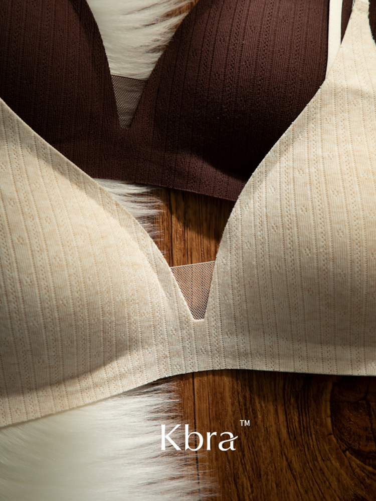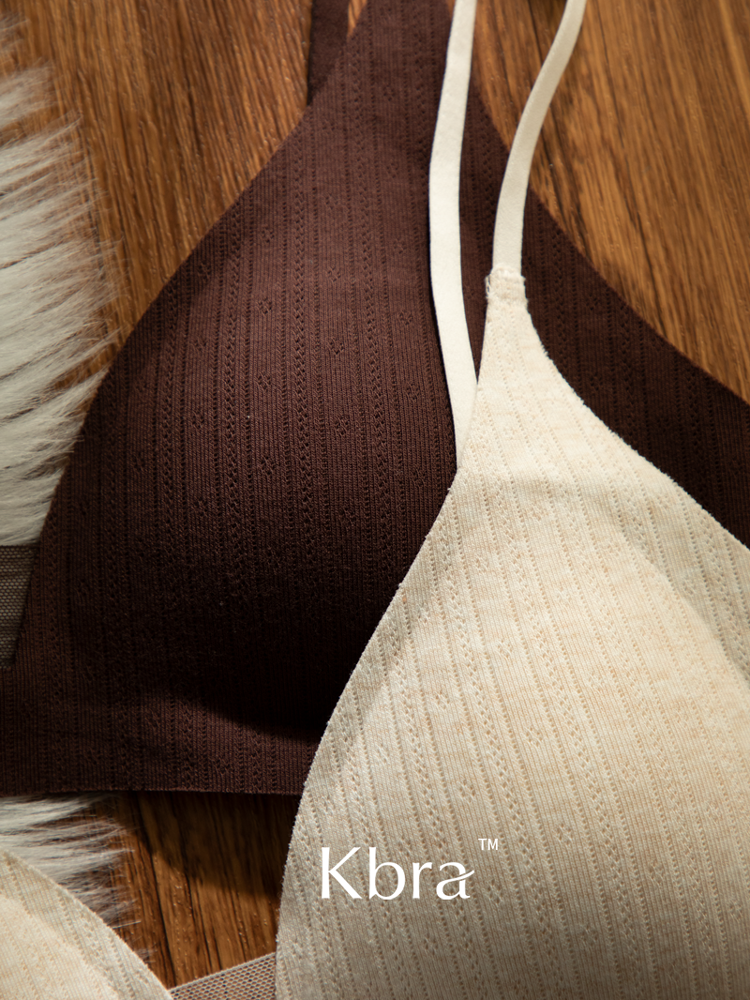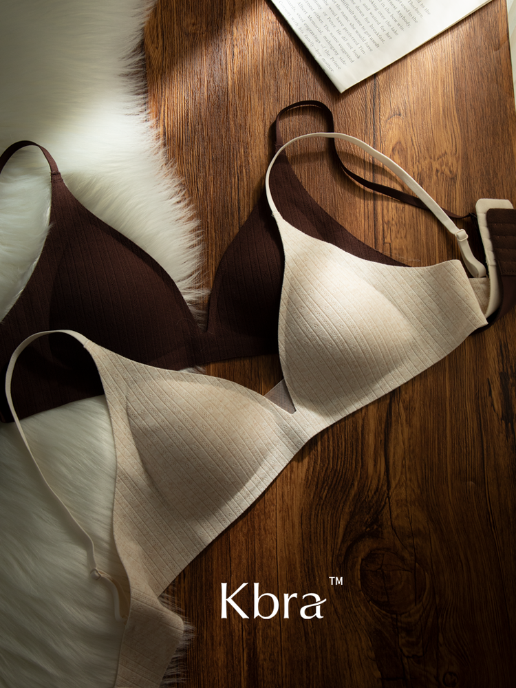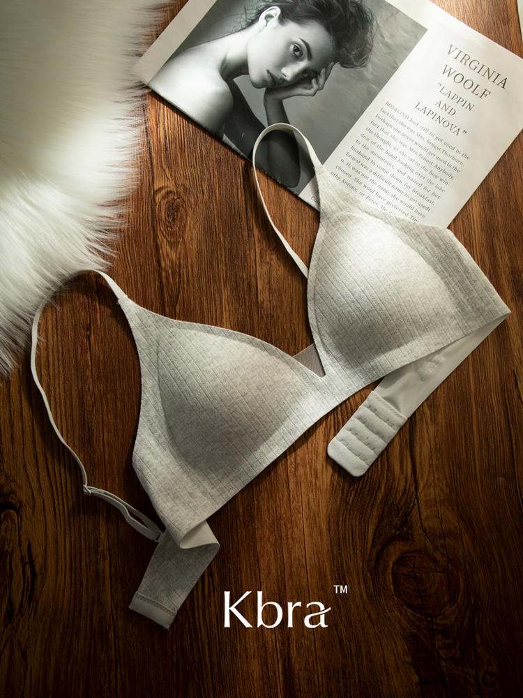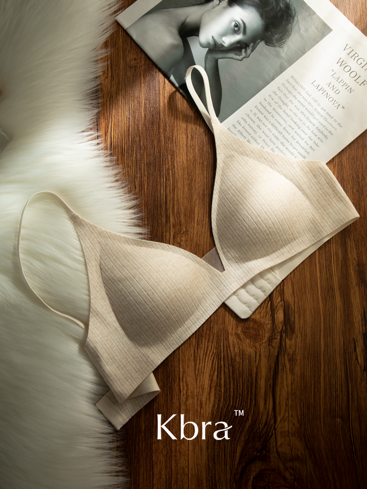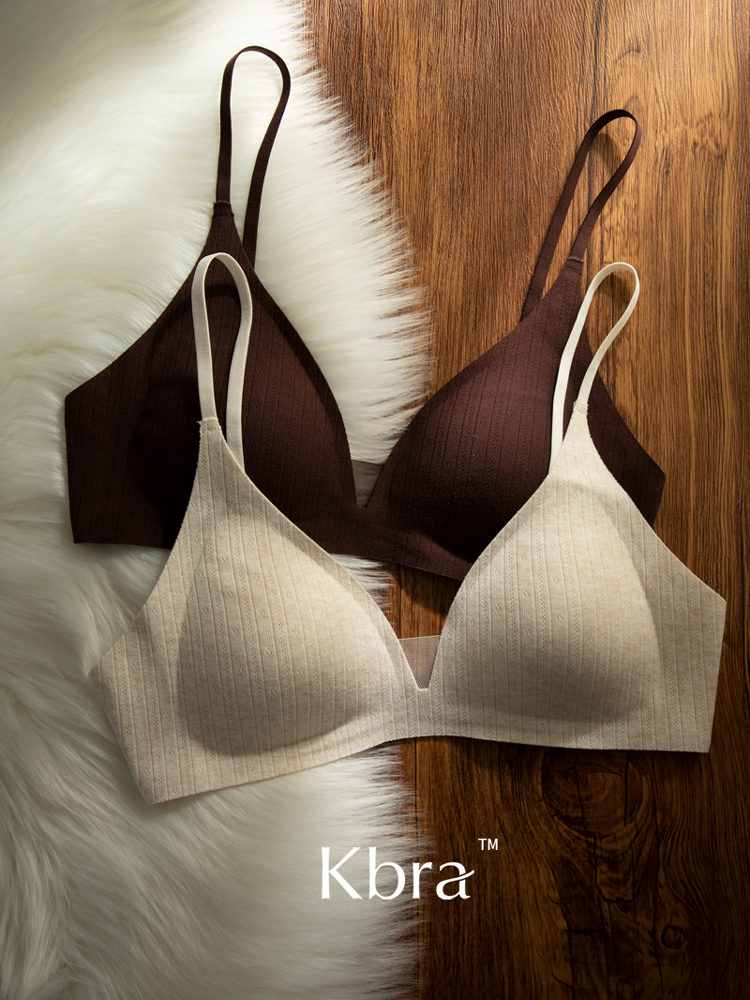Kbra法式深V三角杯內衣女細肩帶顯小顯薄無鋼圈收副乳防下垂文胸