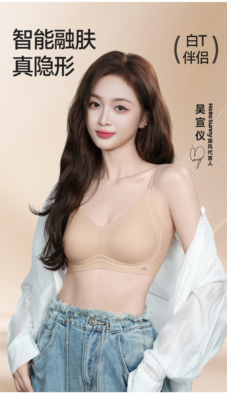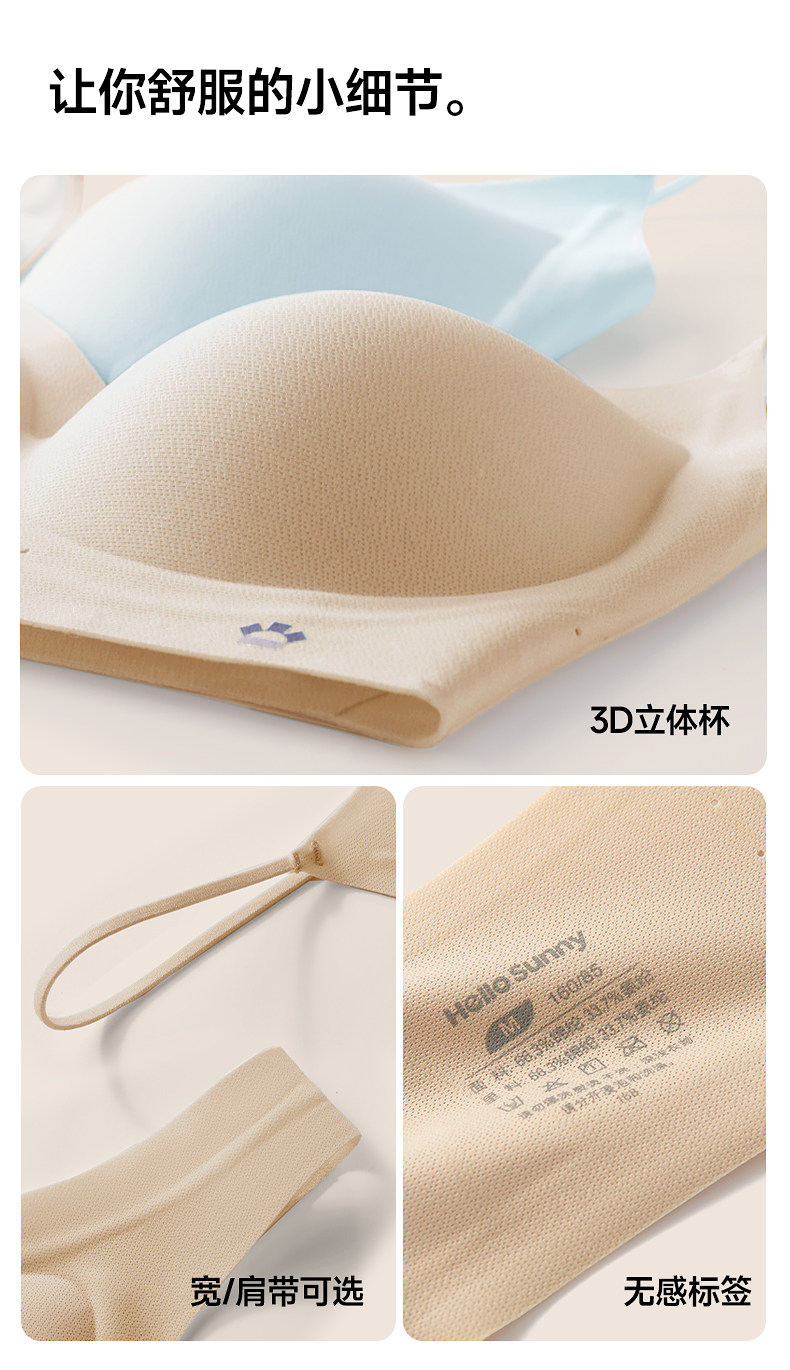 HelloSunny無痕粉底液內衣女隱形膚色細肩帶文胸美背女士胸罩新款