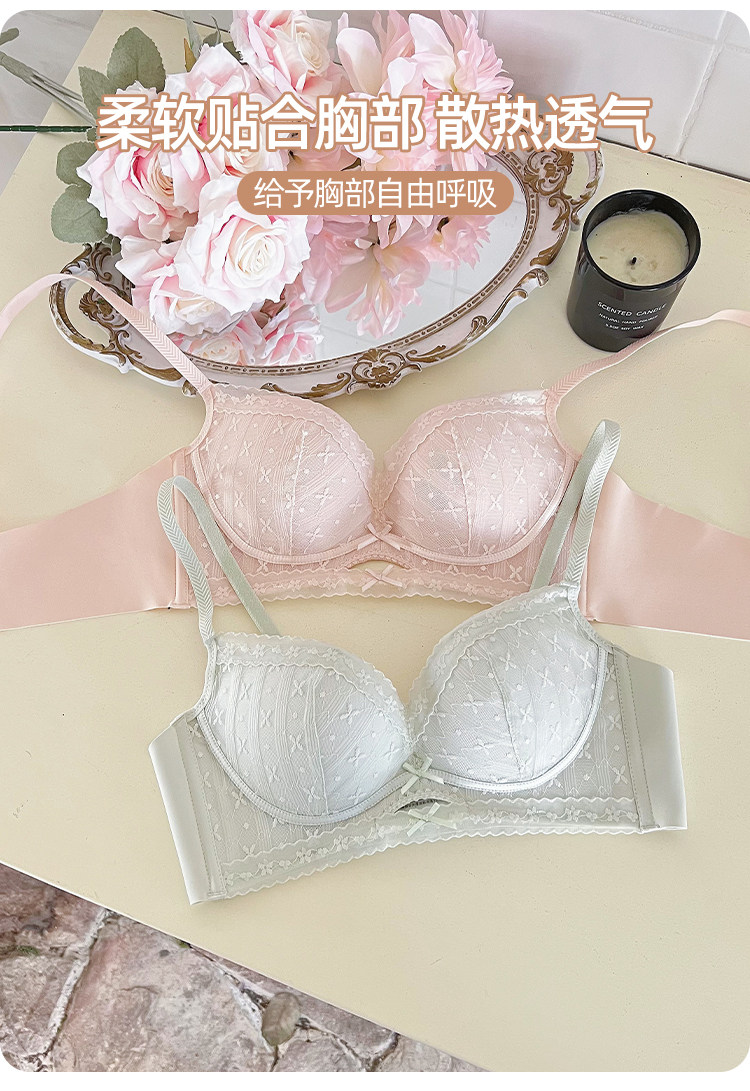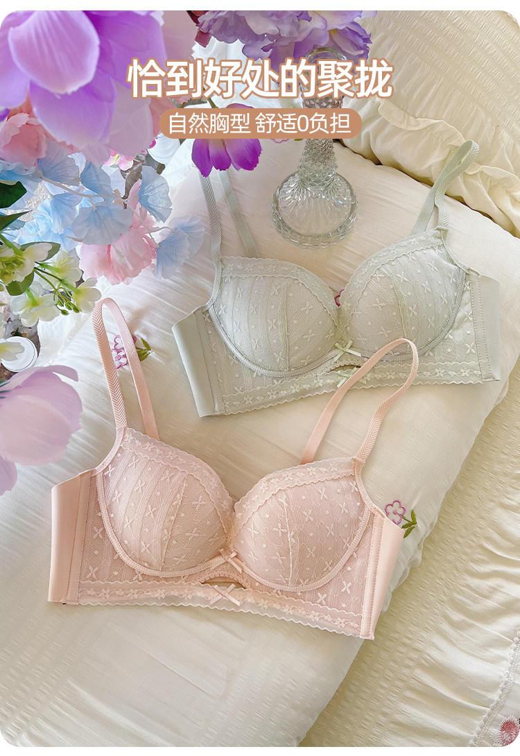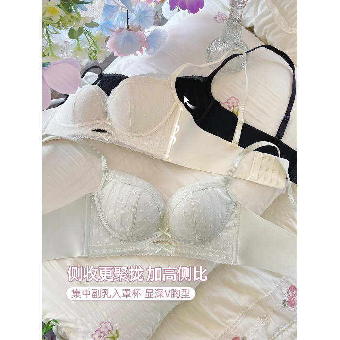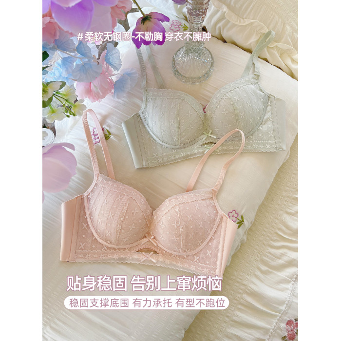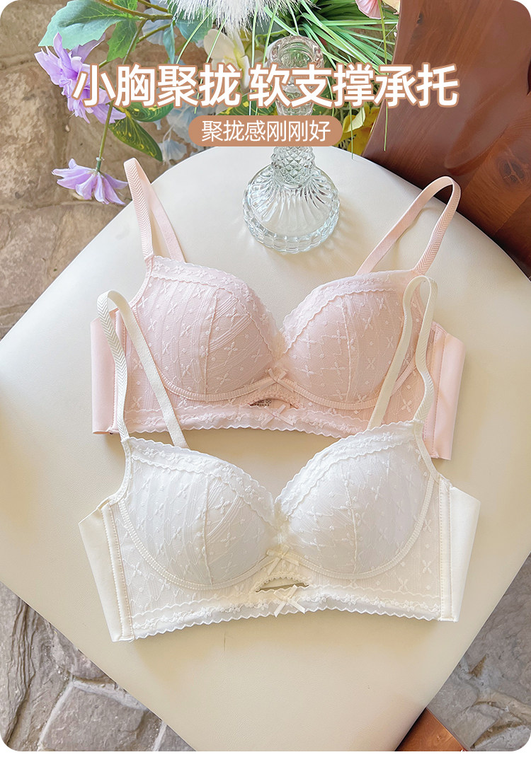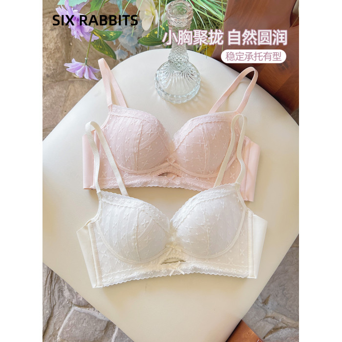 六隻兔子蕾絲內衣女小胸聚攏文胸軟支撐側收副乳舒適無鋼圈胸罩