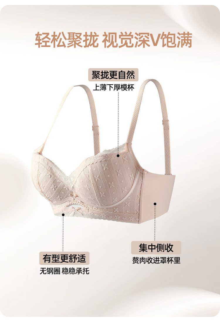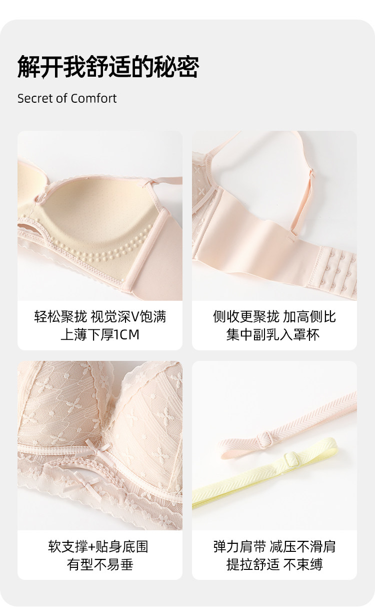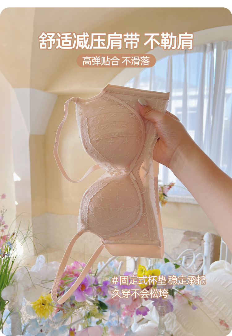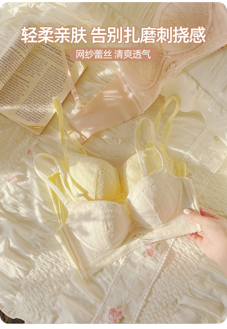 六隻兔子蕾絲內衣女小胸聚攏文胸軟支撐側收副乳舒適無鋼圈胸罩