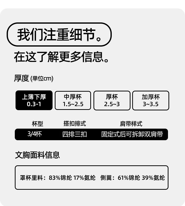 | 罩杯裡料成分含量 | 81%(含)-95%(含) |