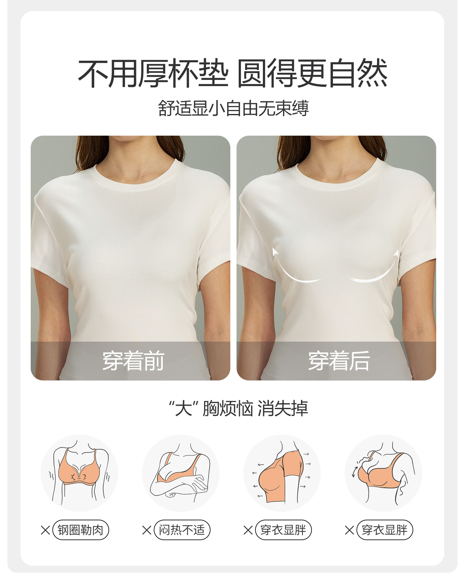 古今@愛她無痕內衣女胸大顯小收副乳防下垂2025新款薄調整型文胸
