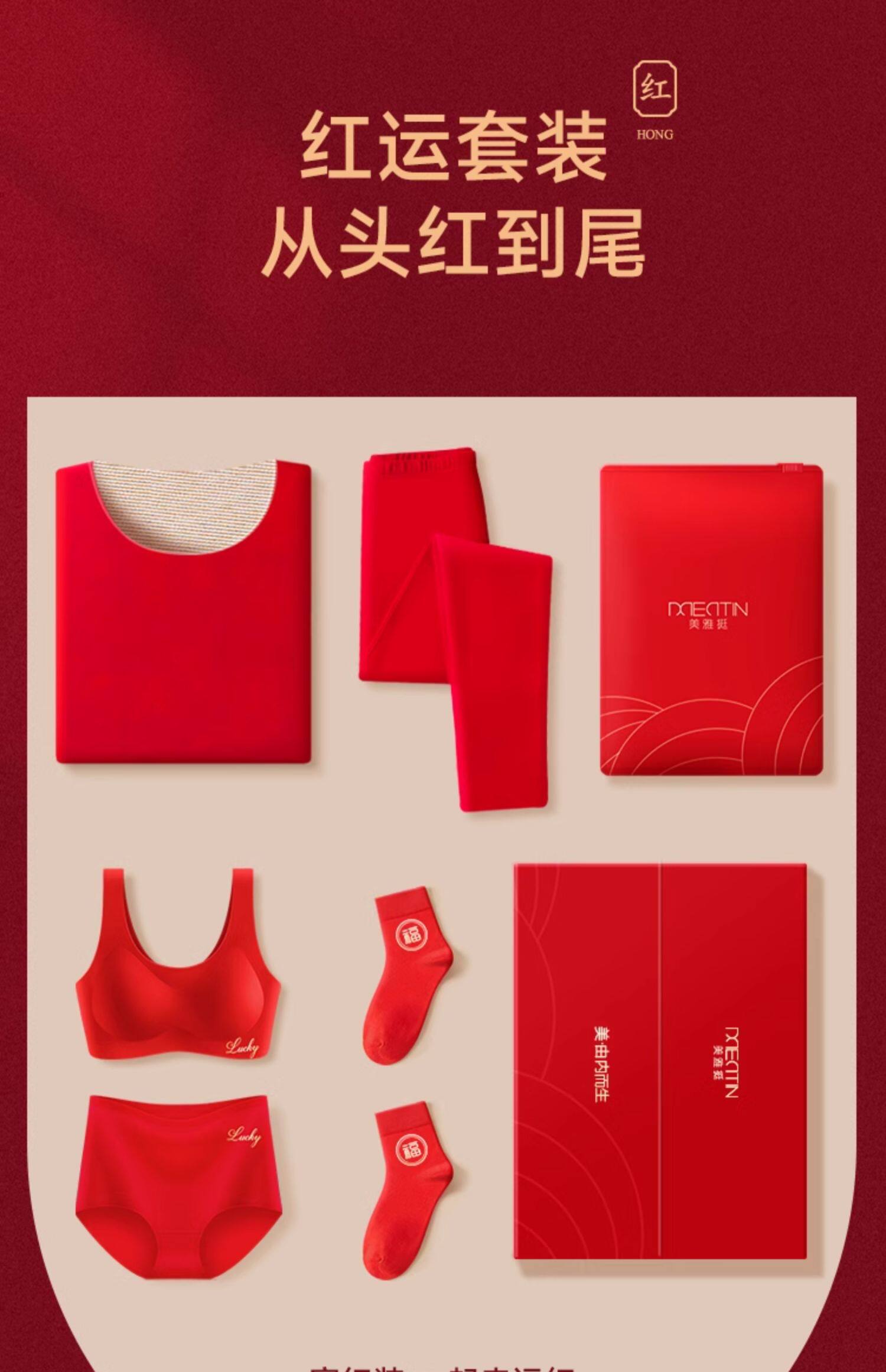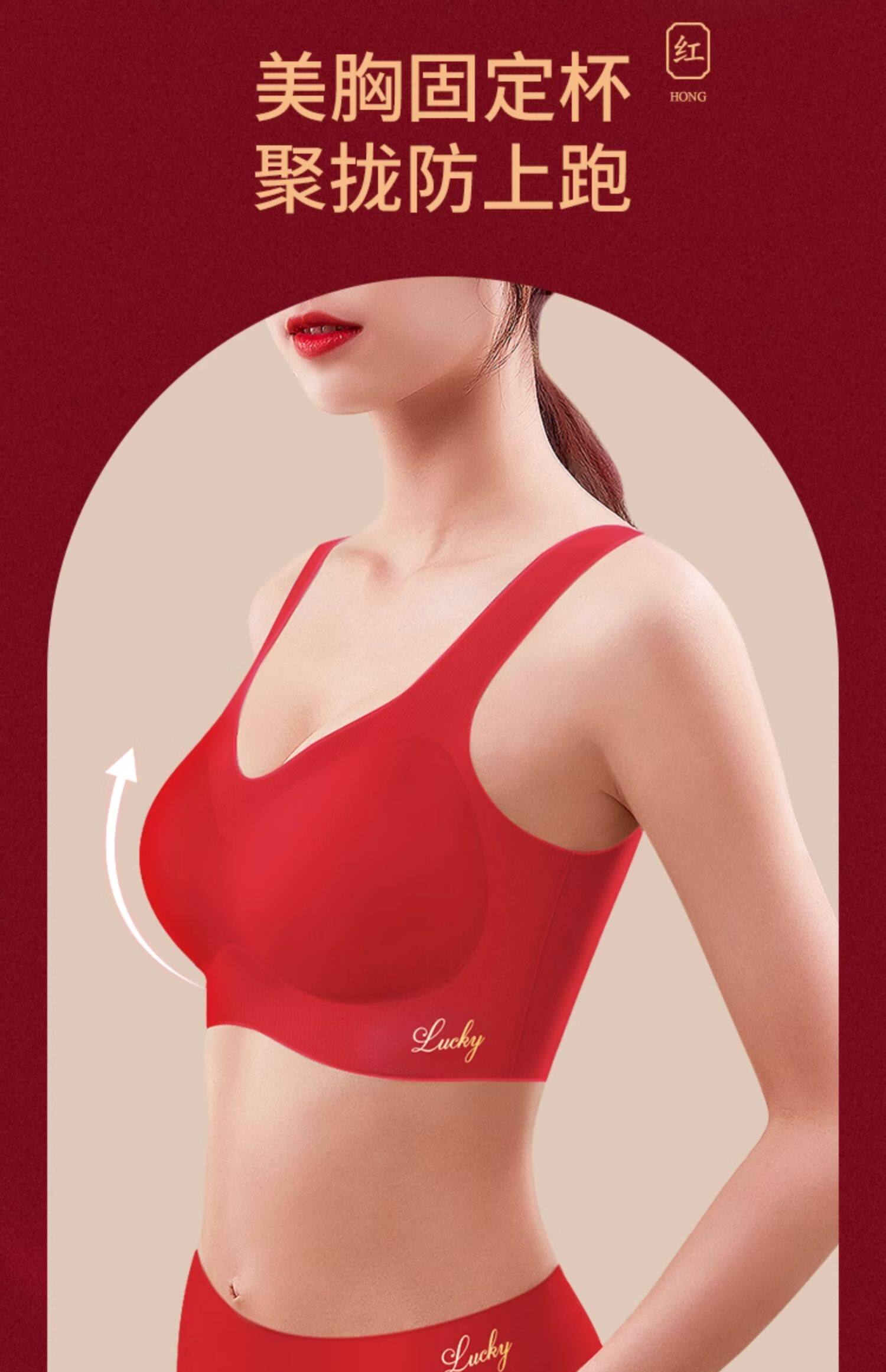 無痕紅色內衣內褲女套裝本命年無鋼圈文胸結婚屬馬年時尚女裝禮物
