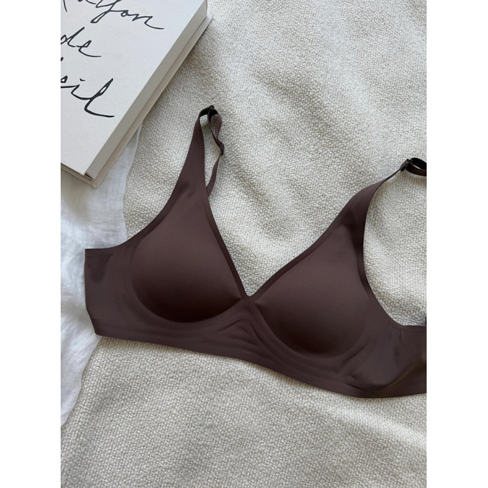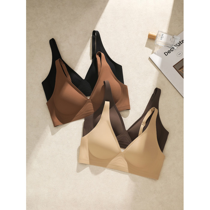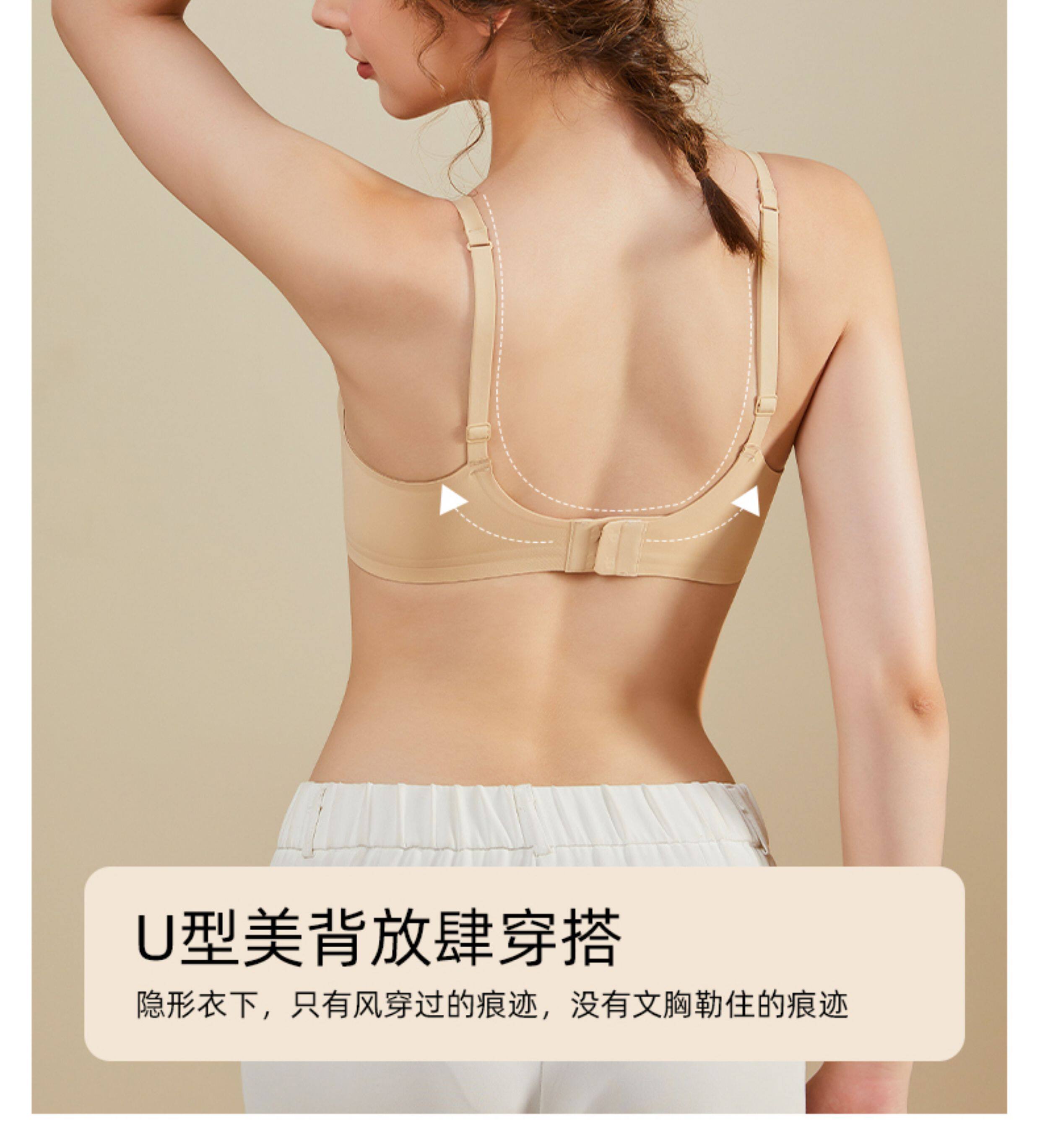 低胸深v無痕內衣女薄大胸顯小隱形舒適不勒一片式裸感無鋼圈文胸