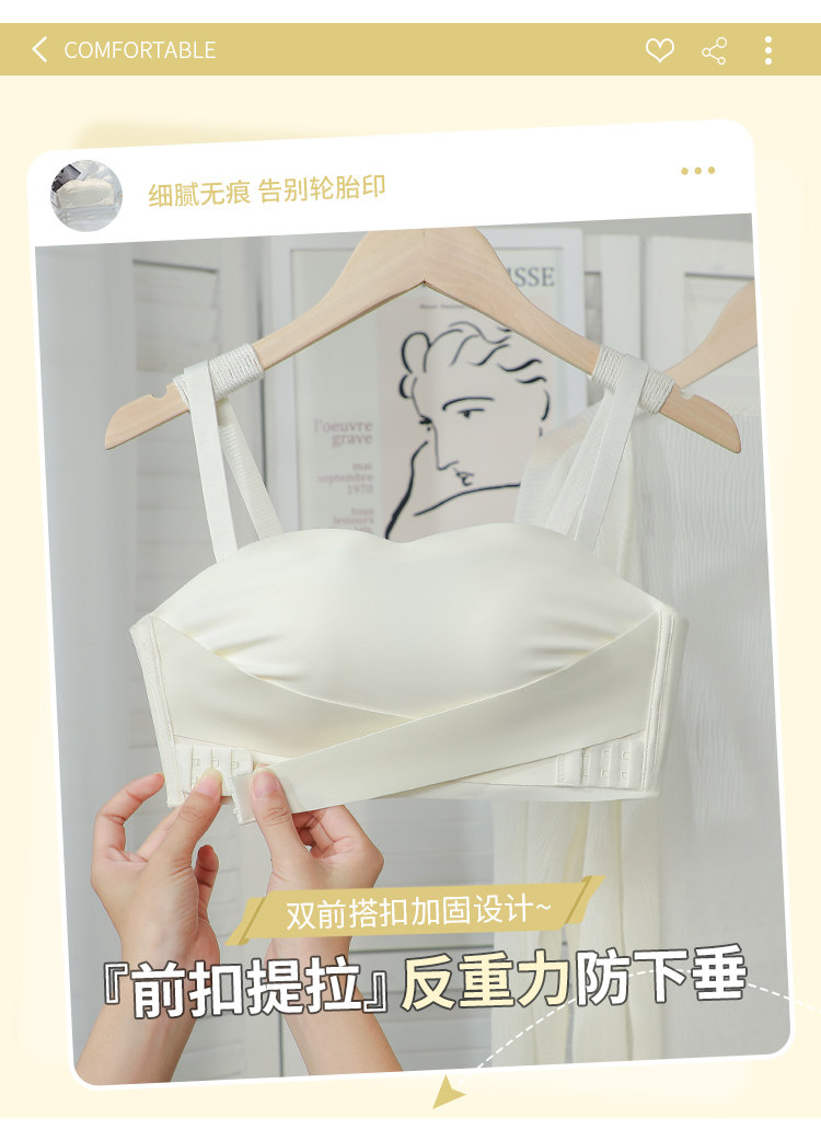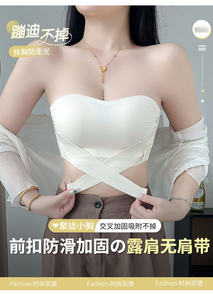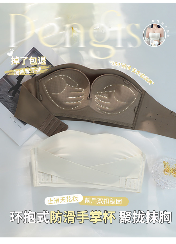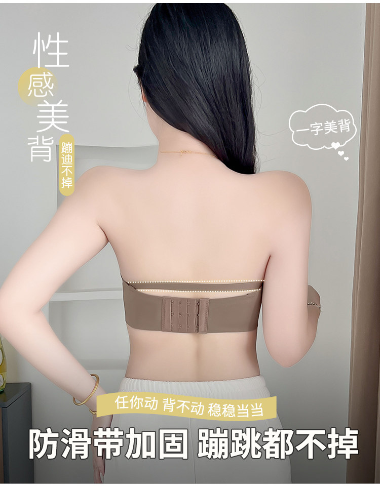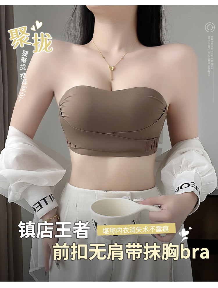 前釦無肩帶內衣女防滑聚攏小胸胸罩抹胸防走光裹胸美背文胸不下滑