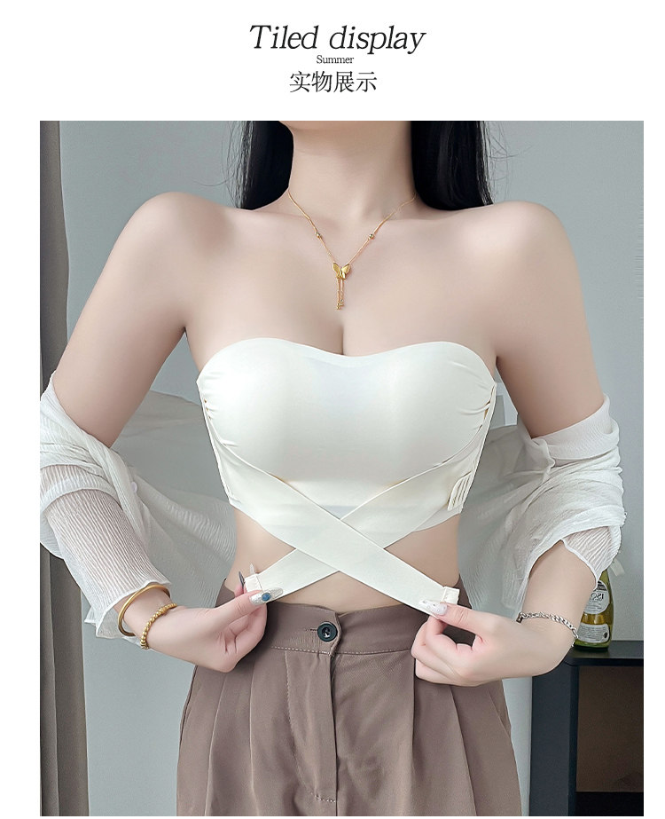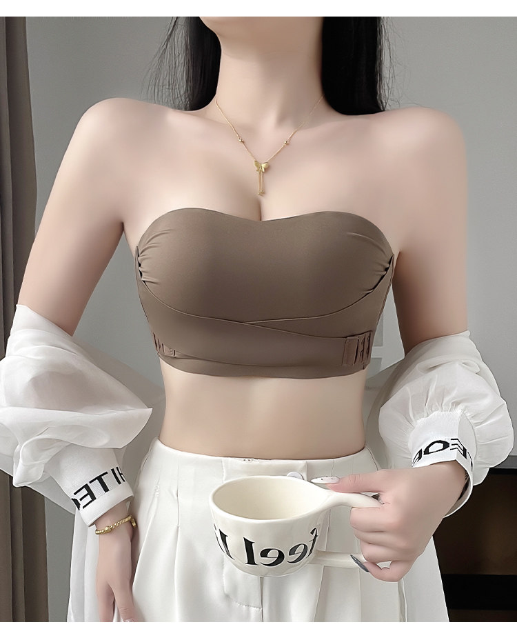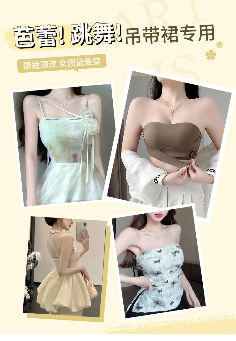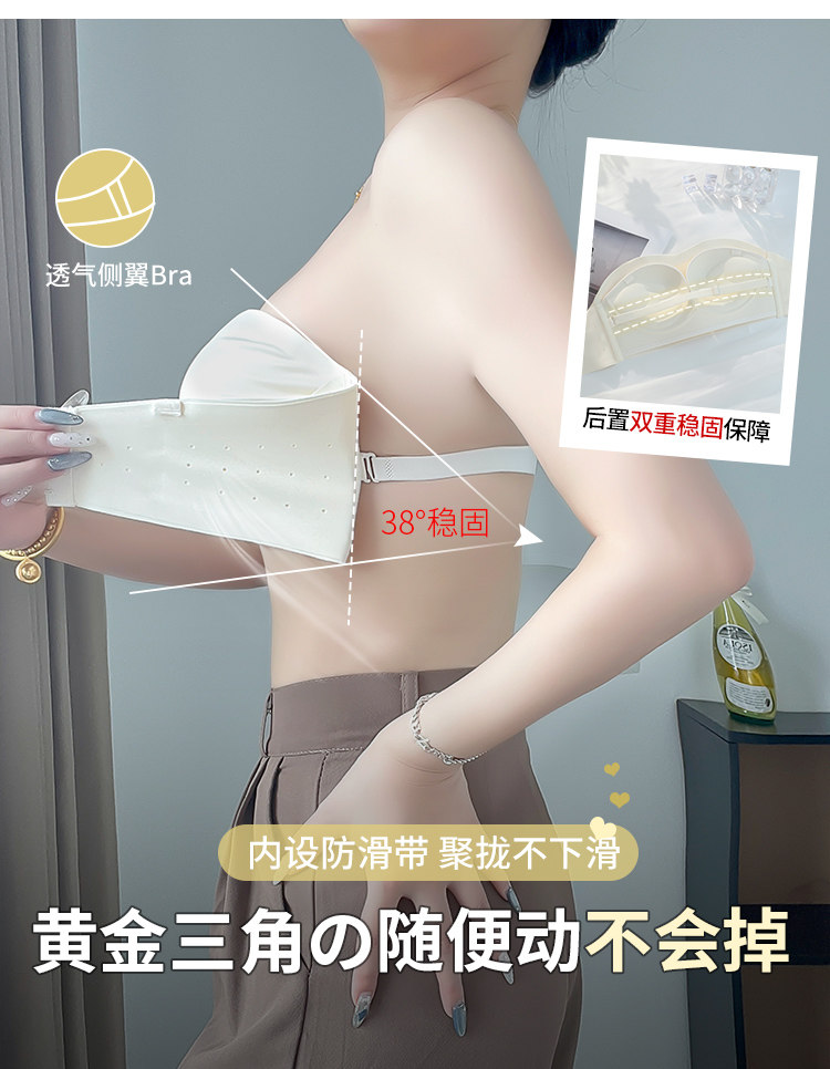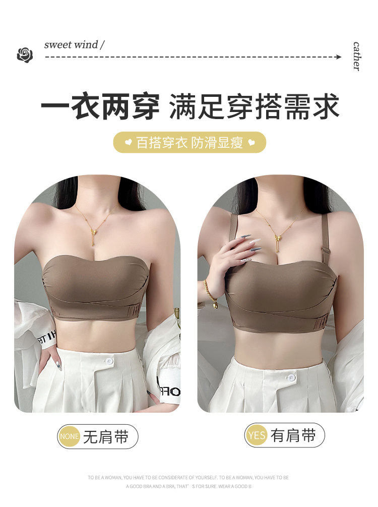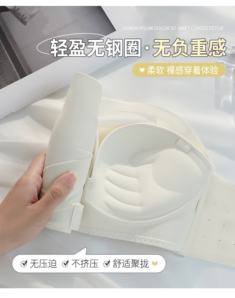 前釦無肩帶內衣女防滑聚攏小胸胸罩抹胸防走光裹胸美背文胸不下滑