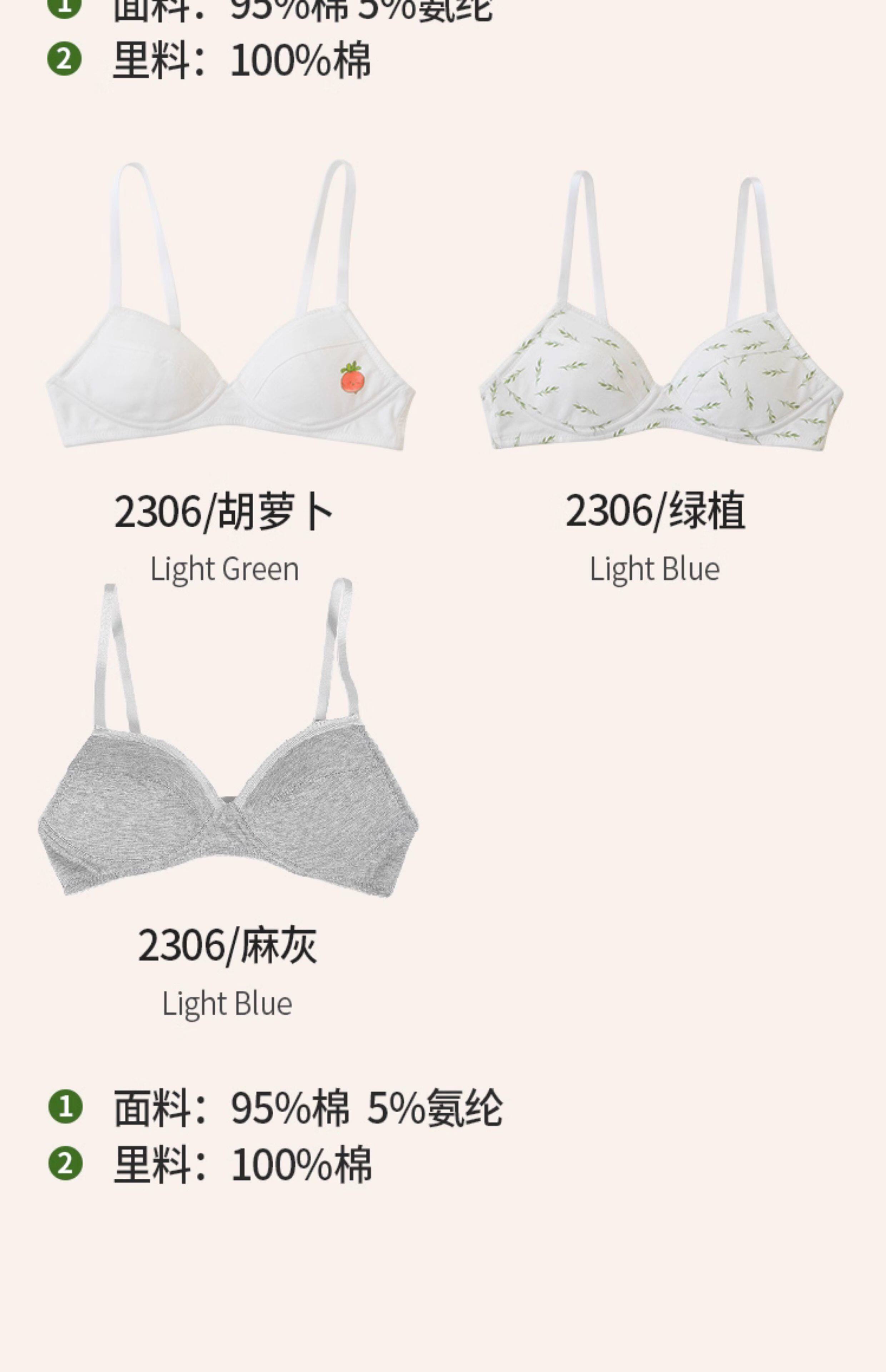 發育期少女文胸純棉無鋼圈內衣女學生高中薄款無海綿三階段內衣