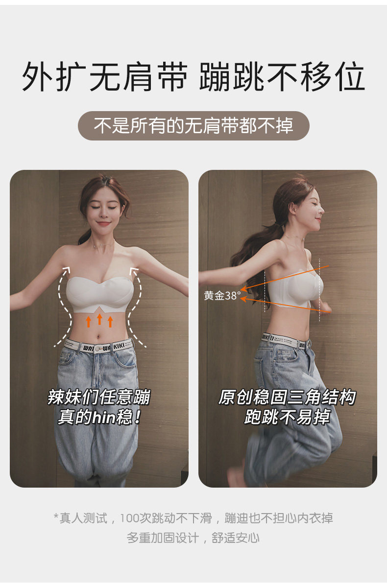 外擴內衣女無肩帶小胸顯大胸聚攏穩固防滑防走光文胸漫畫胸罩無痕