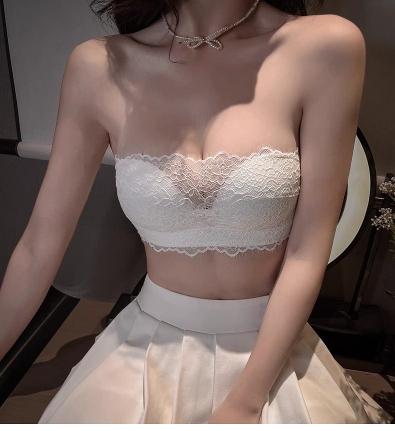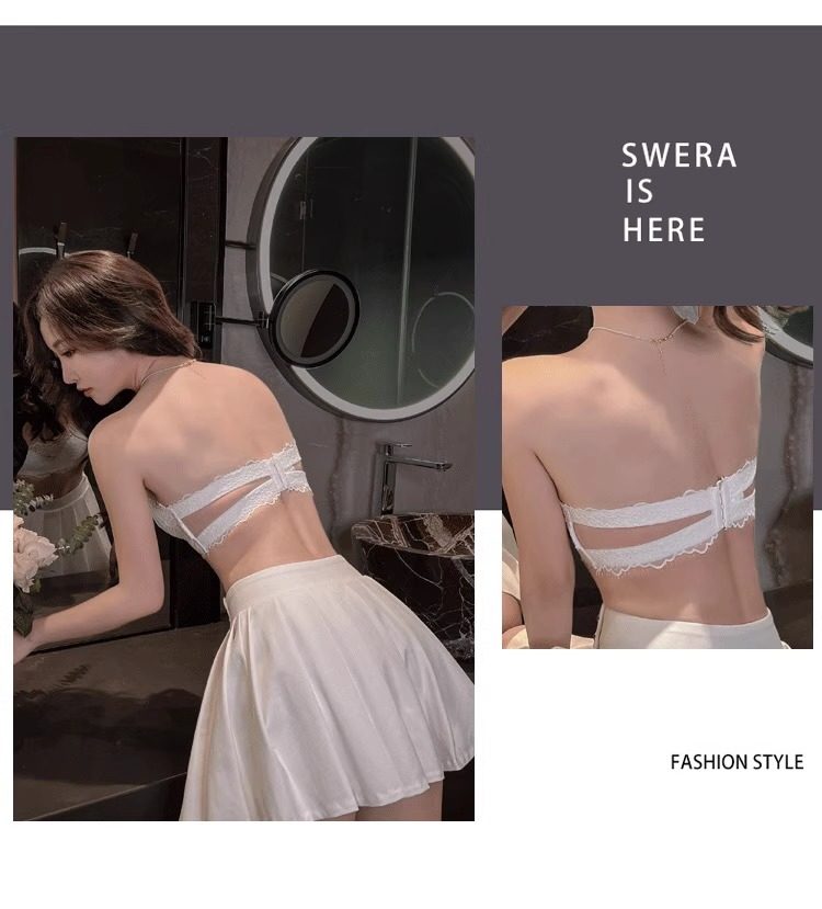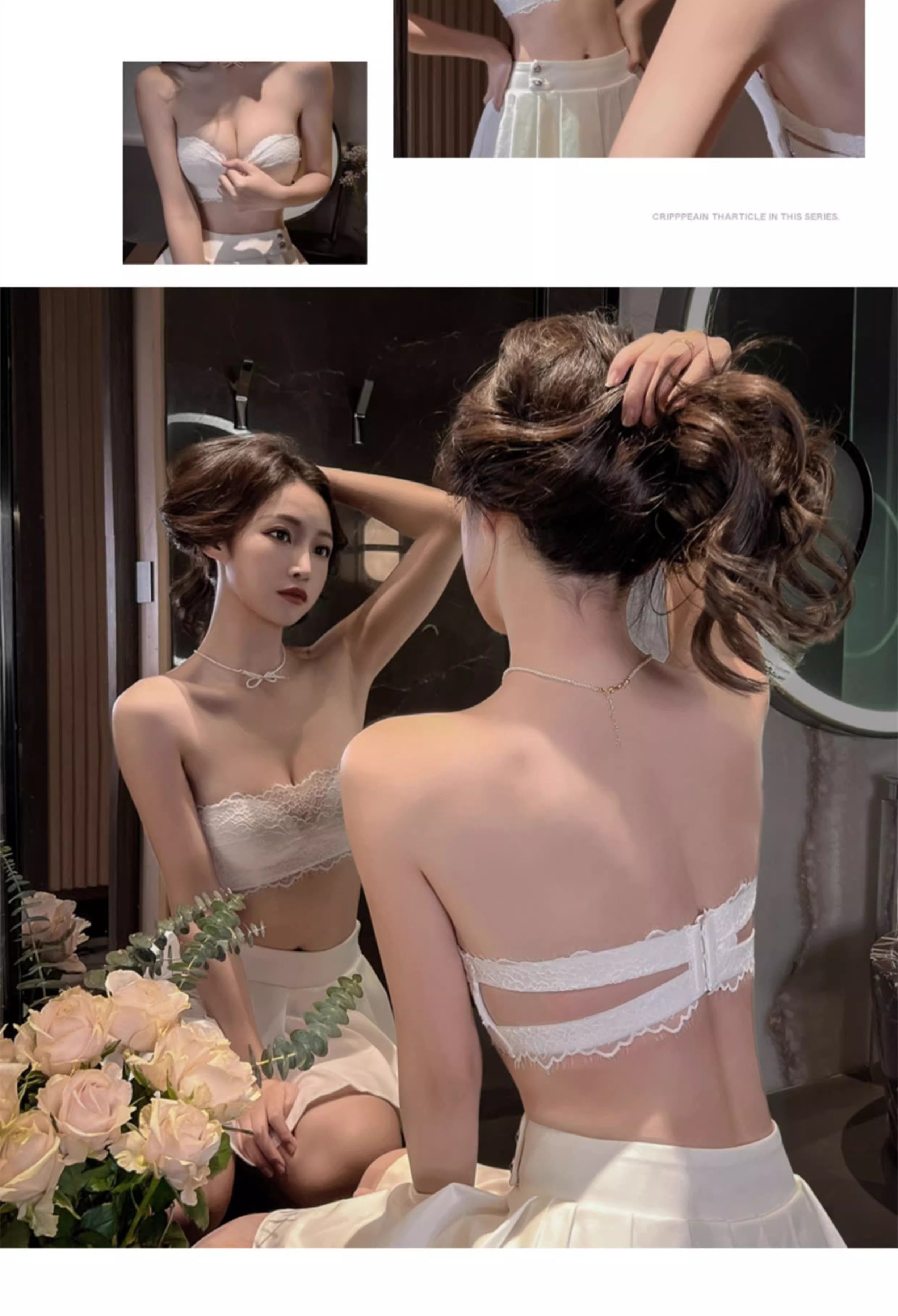 無肩帶內衣女小胸聚攏防滑蕾絲美背裹胸抹胸婚紗禮服專用隱形文胸