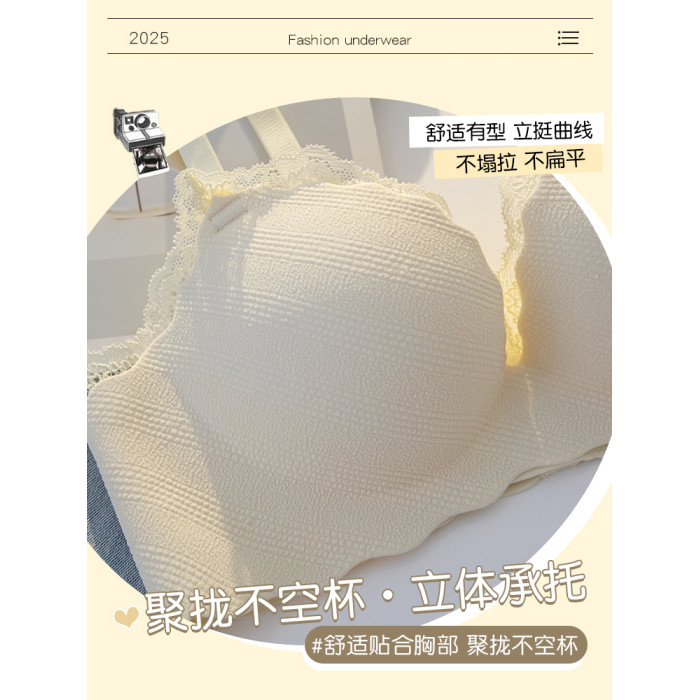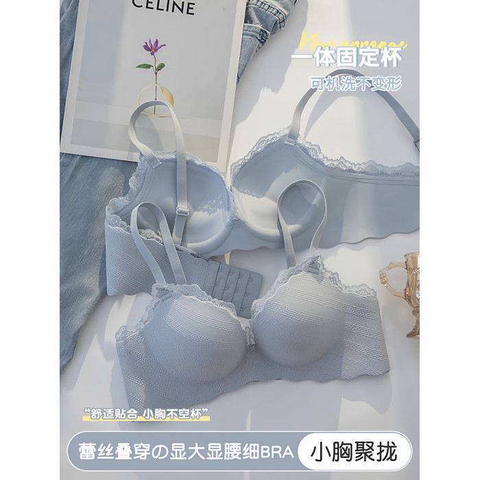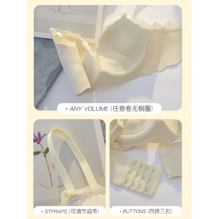 蕾絲內衣女小胸聚攏顯大無鋼圈上托防下垂外擴漫畫胸型少女文胸罩