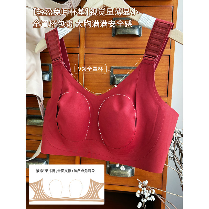 任意提拉托起~無痕無鋼圈大胸顯小本命年紅色文胸粉底液膚內衣