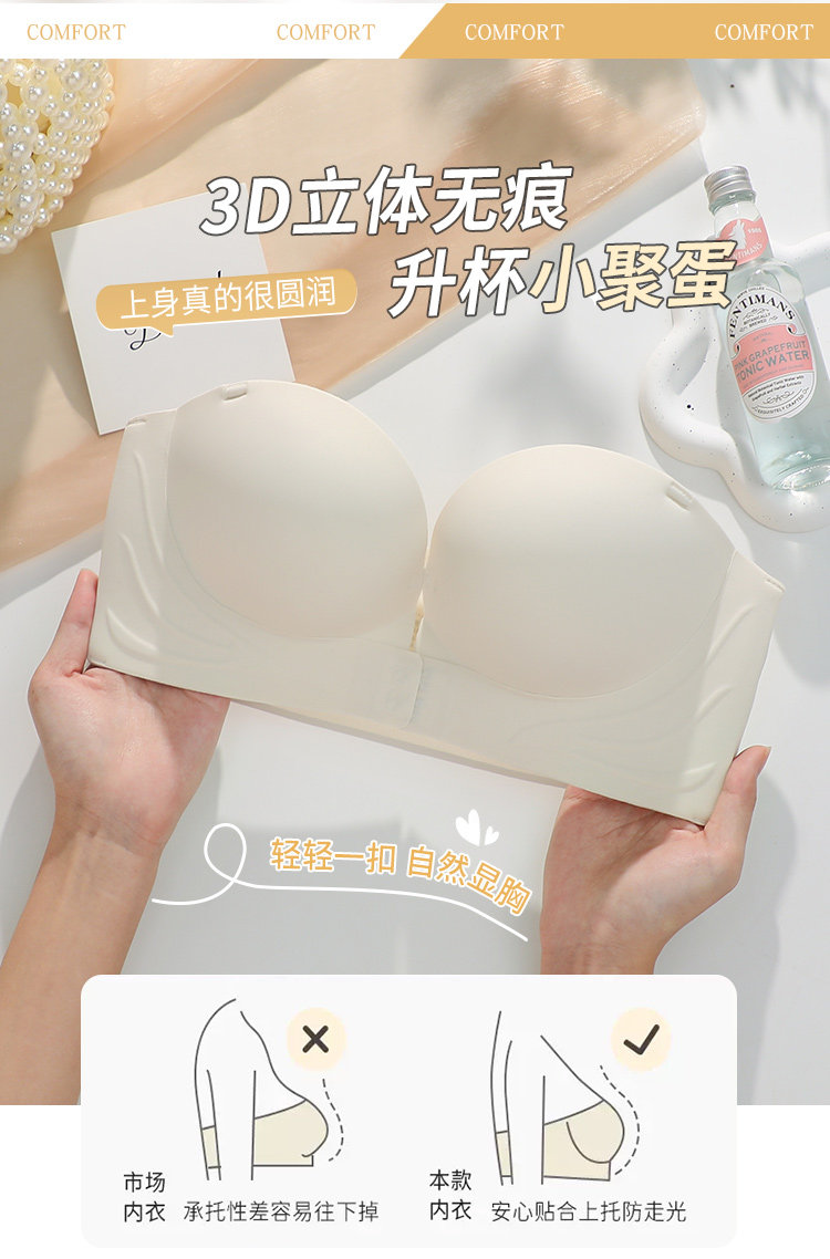 抹胸無肩帶內衣女防滑聚攏小胸隱形無痕裹胸防走光內搭美背文胸罩