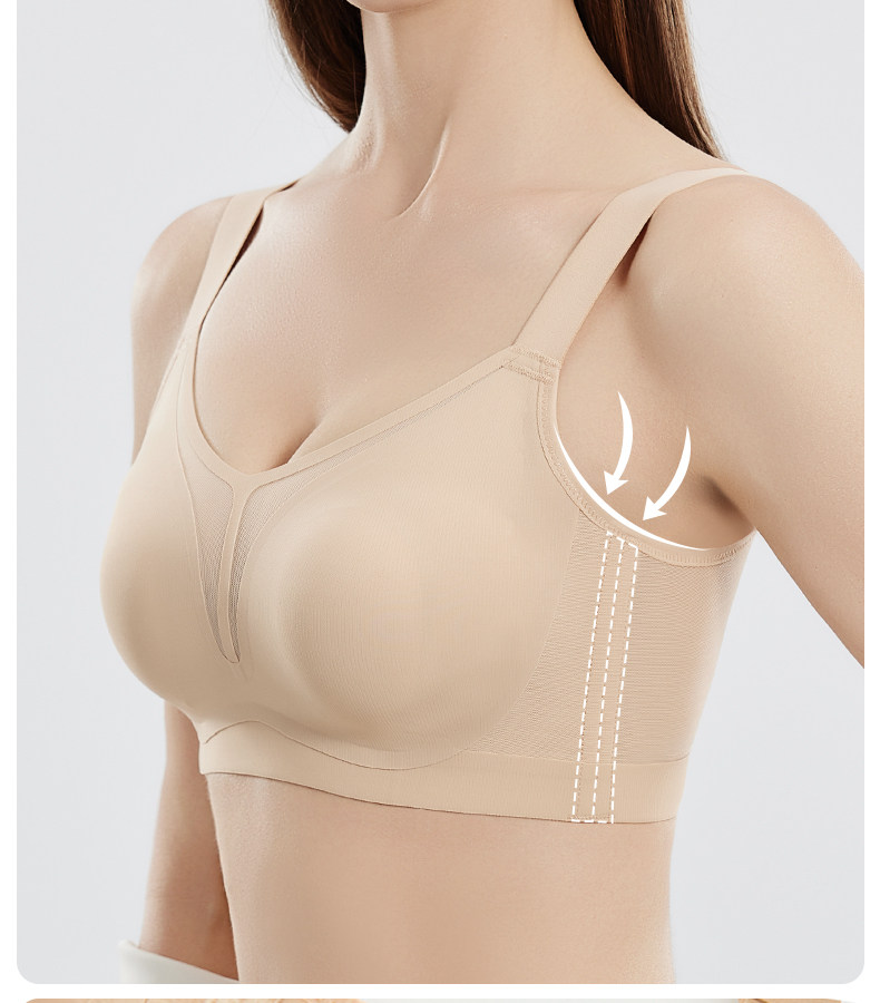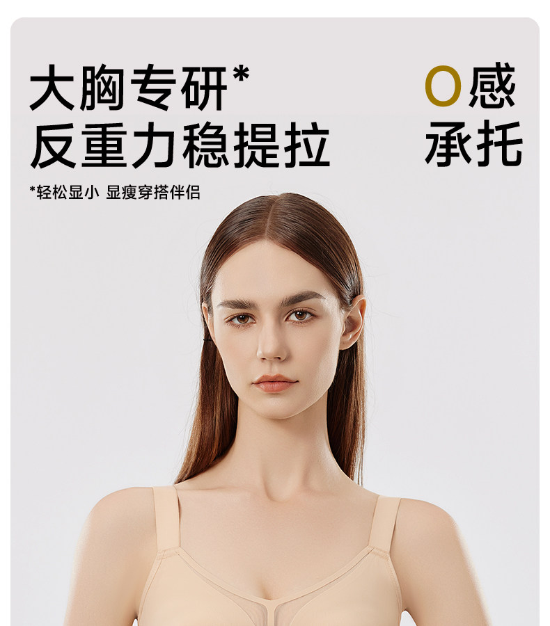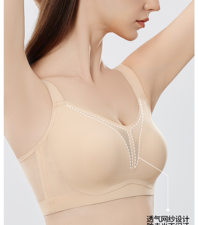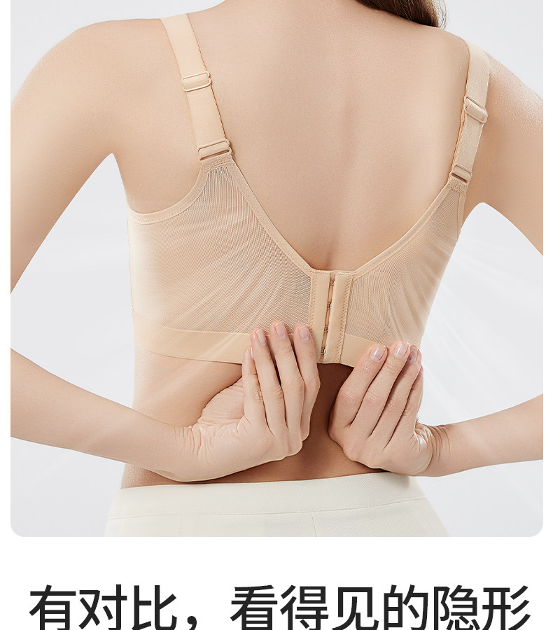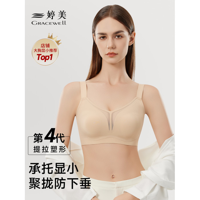婷美無痕內衣女大胸顯小薄款提拉聚攏收副乳防下垂粉底液文胸罩女