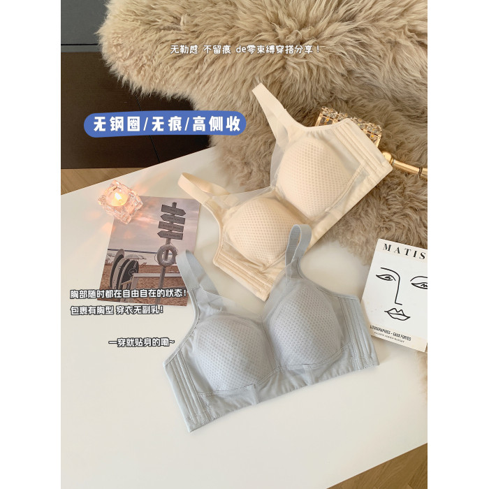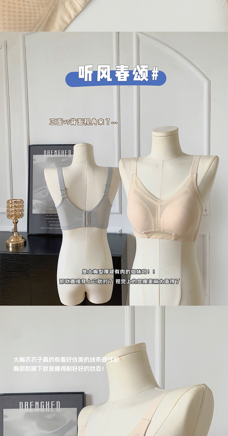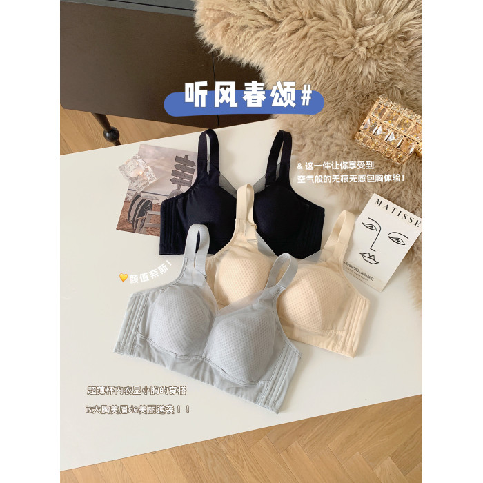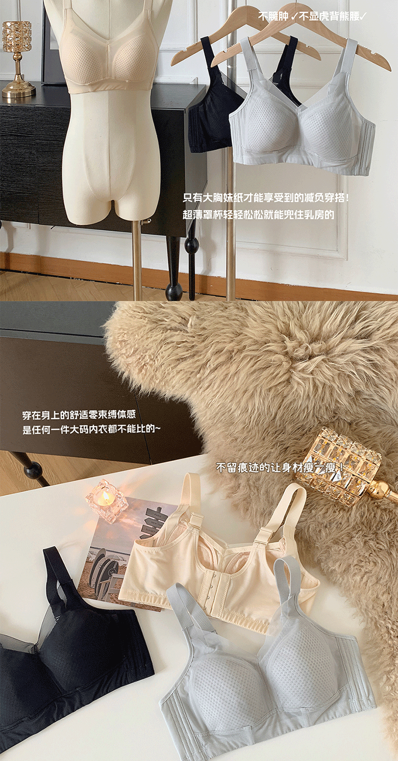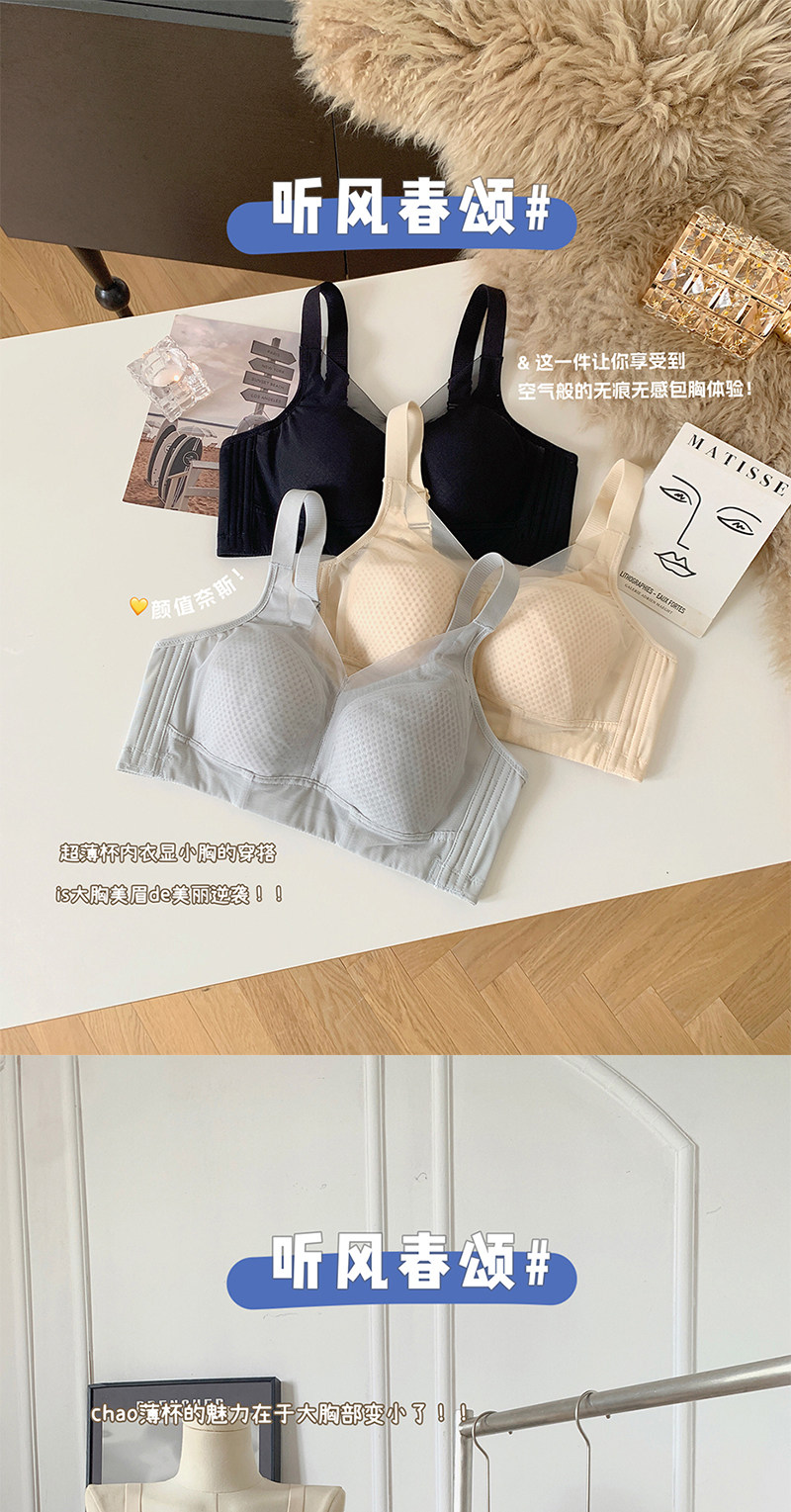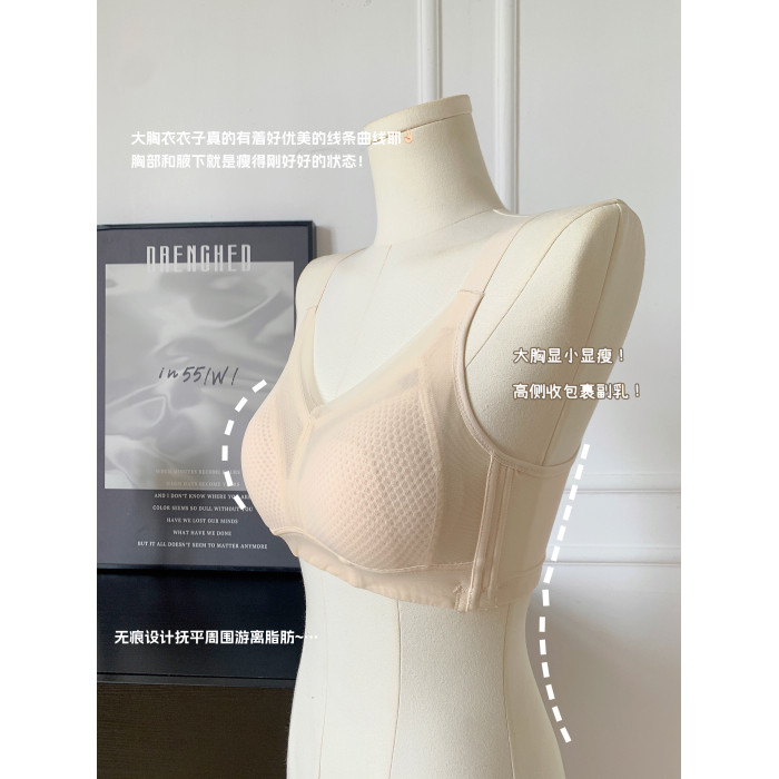 無痕大胸顯小內衣女全罩杯薄款透氣兔耳朵顯瘦縮胸大碼防下垂文胸