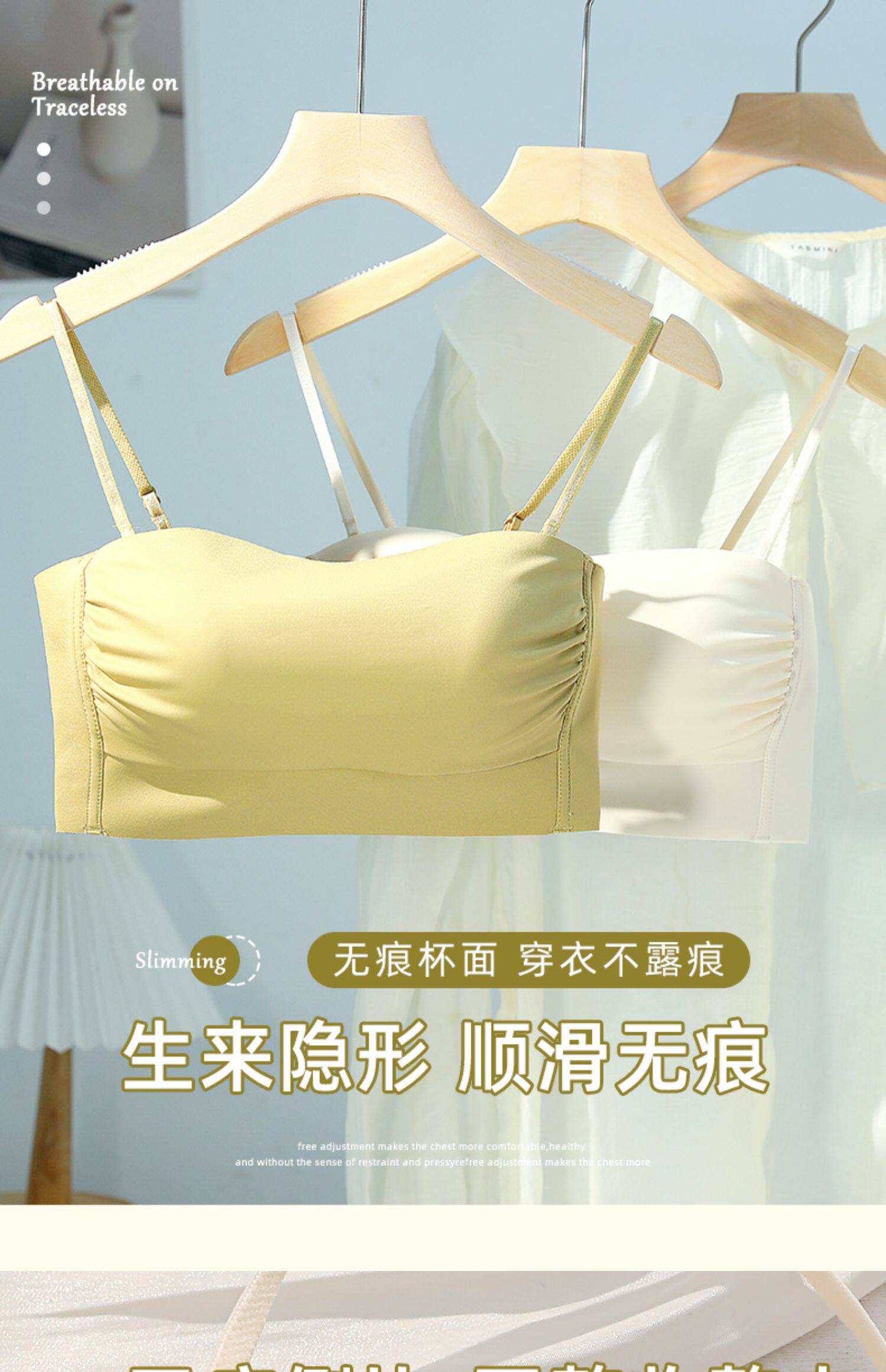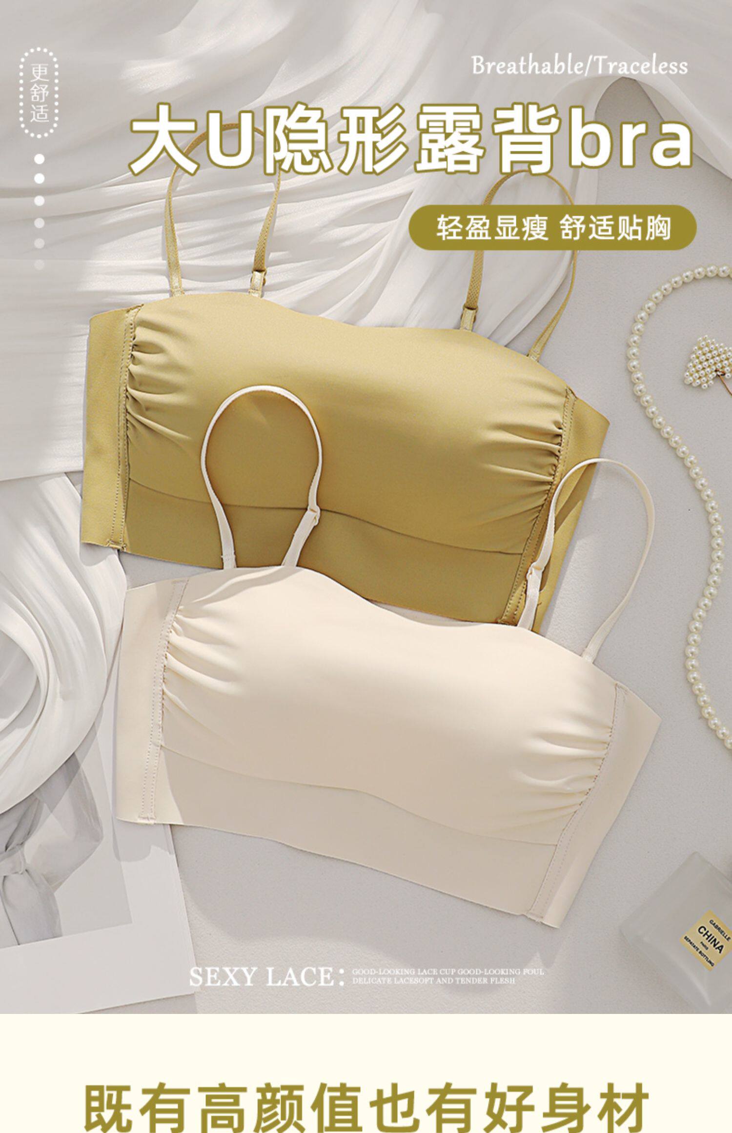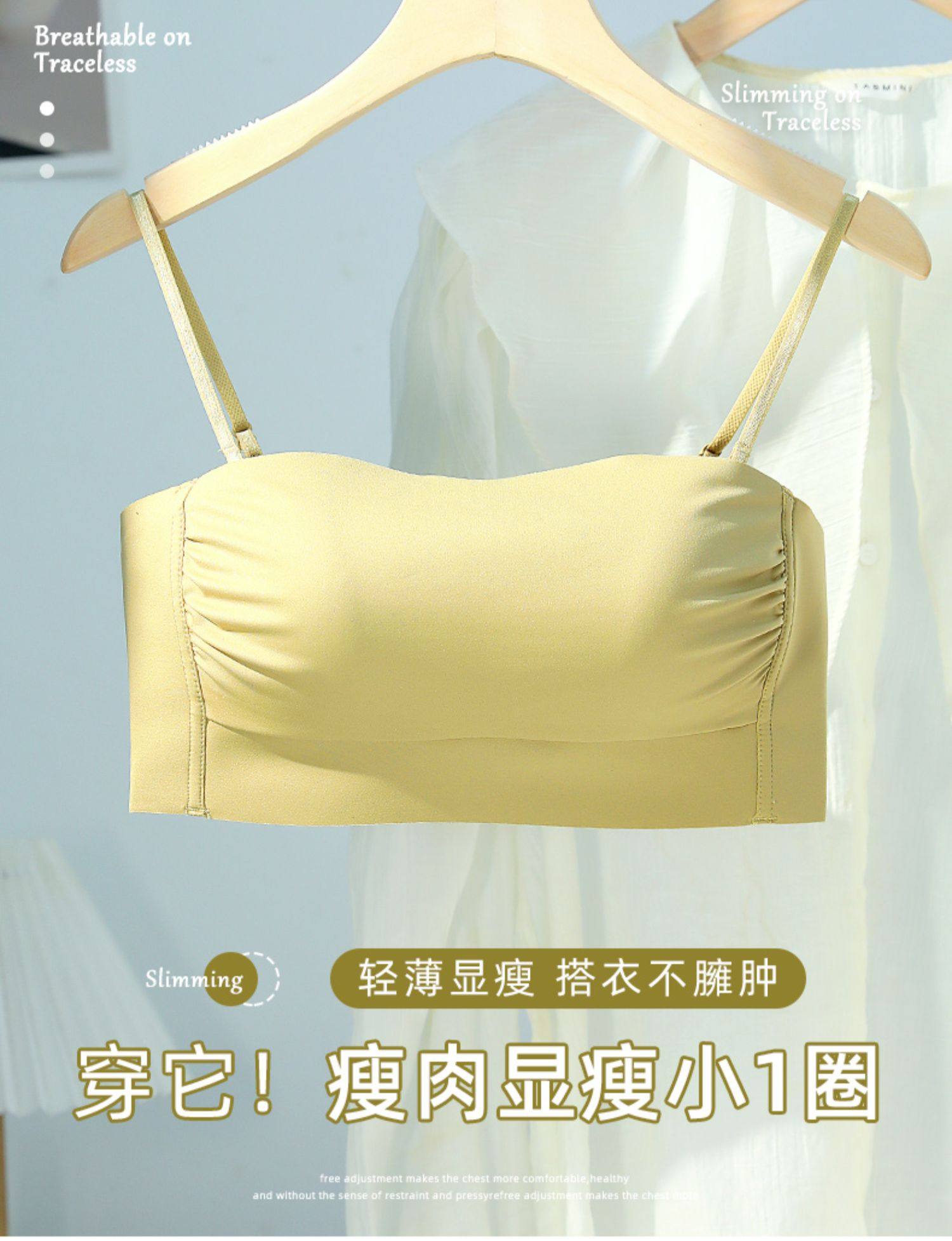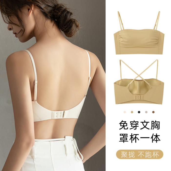 無痕抹胸內衣女大胸顯小胸聚攏防下垂防走光美背吊帶背心一體文胸